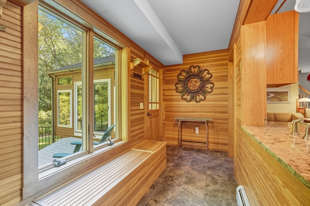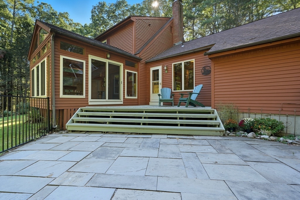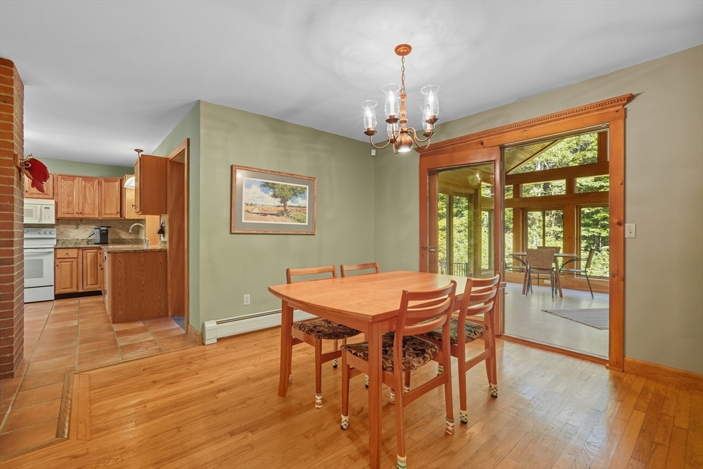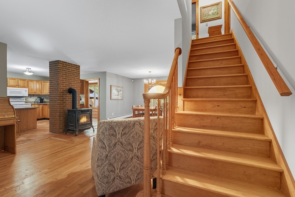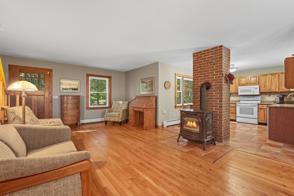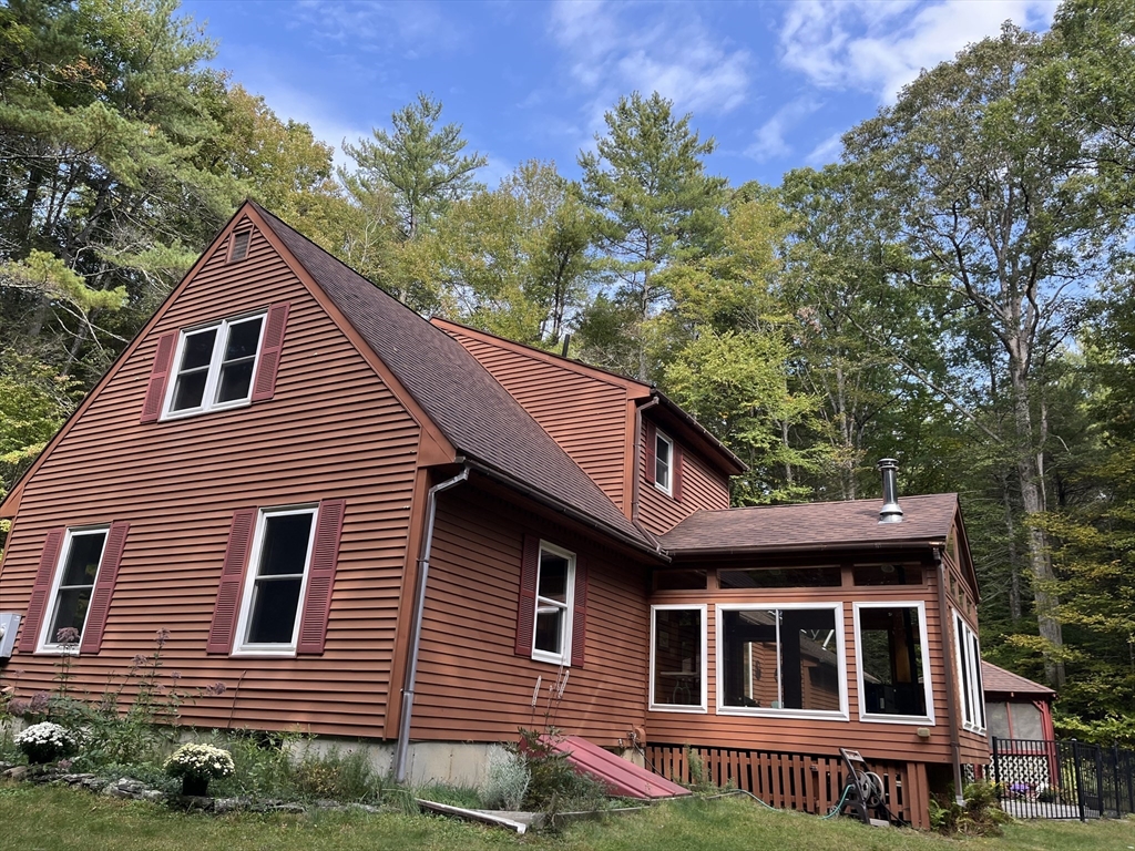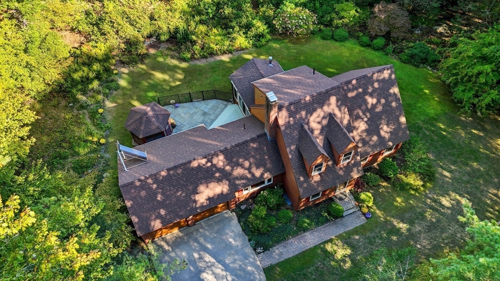 The sights and sounds of nature surround you with this 2.96 acre property which abuts approx. 600 acres of conservation land. You will enjoy the open floor plan and the comfort and warmth of the wood floors and natural woodwork. The kitchen has been upgraded with new appliances, quartz countertops and mudroom access from the oversized two car garage. Off of the living room is a beautiful 3 season sunroom with large windows and a pellet stove where you can relax and enjoy your own nature preserve. The flexible floor plan offers one floor living with two bedrooms (currently being used as an office and a den) and a full bath. The second floor has two bedrooms, full bath and lots of closet storage. The basement, with high ceilings, is partially finished and perfect for a workout room or hobbies. Add'l features include a solar HWH system, new Superstor SSHWH and burried elec. lines. The gazebo, deck & patio add to the enjoyment of nature, Unmatched privacy yet a 5 min. drive to I91