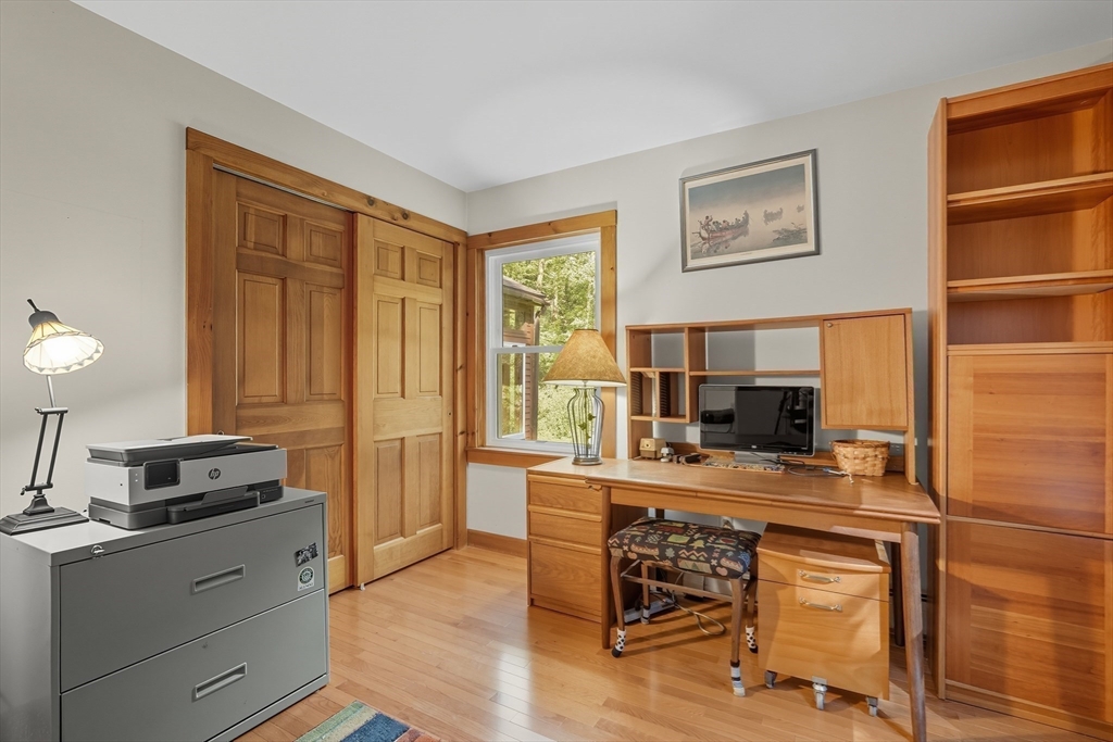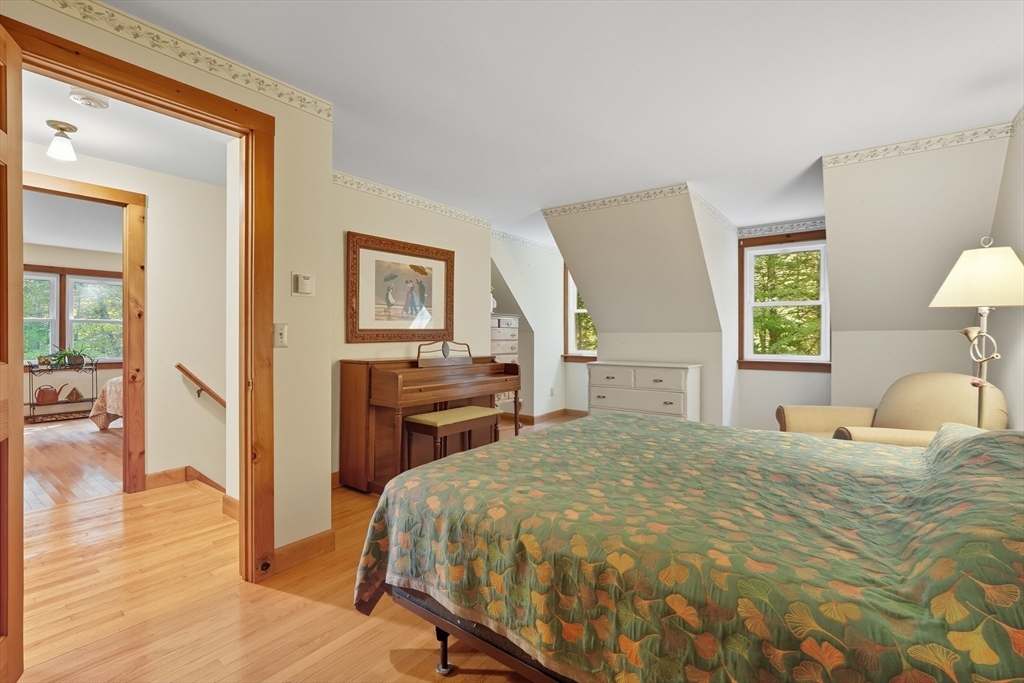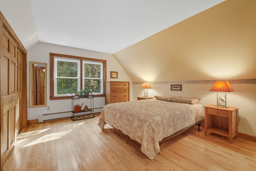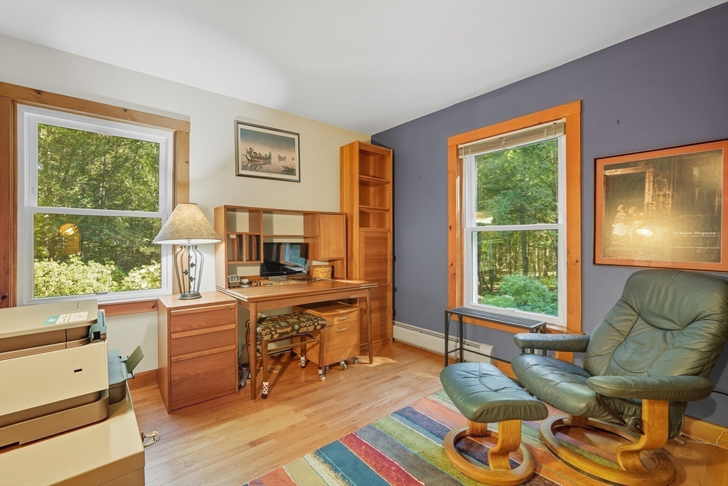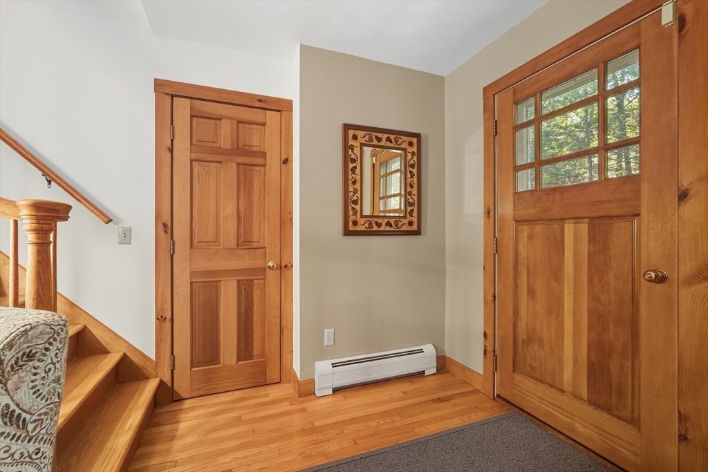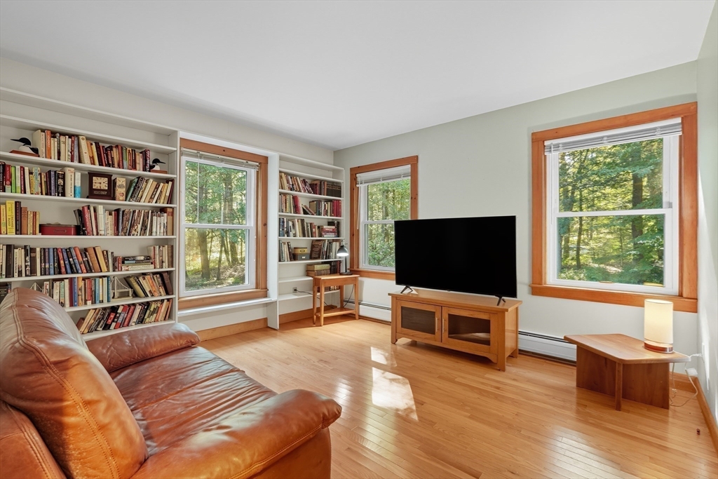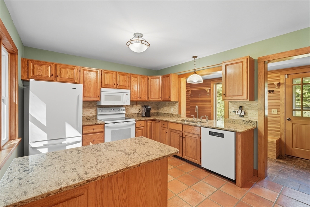 The sights and sounds of nature surround you with this 2.96 acre property which abuts approx. 600 acres of conservation land. You will enjoy the open floor plan and the comfort and warmth of the wood floors and natural woodwork. The kitchen has been upgraded with new appliances, quartz countertops and mudroom access from the oversized two car garage. Off of the living room is a beautiful 3 season sunroom with large windows and a pellet stove where you can relax and enjoy your own nature preserve. The flexible floor plan offers one floor living with two bedrooms (currently being used as an office and a den) and a full bath. The second floor has two bedrooms, full bath and lots of closet storage. The basement, with high ceilings, is partially finished and perfect for a workout room or hobbies. Add'l features include a solar HWH system, new Superstor SSHWH and burried elec. lines. The gazebo, deck & patio add to the enjoyment of nature, Unmatched privacy yet a 5 min. drive to I91