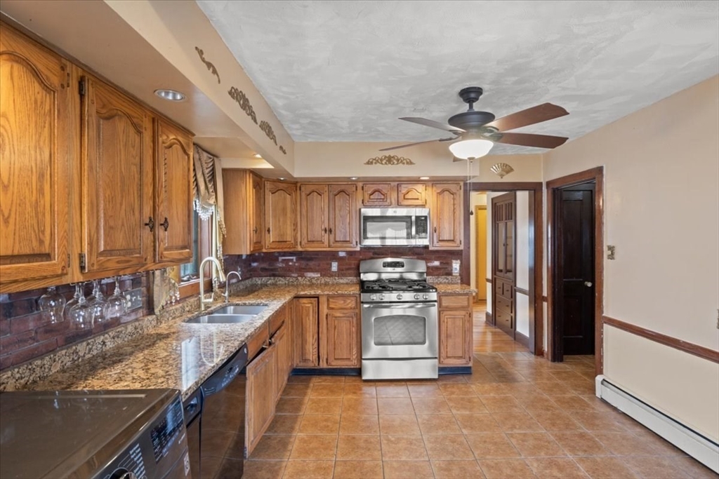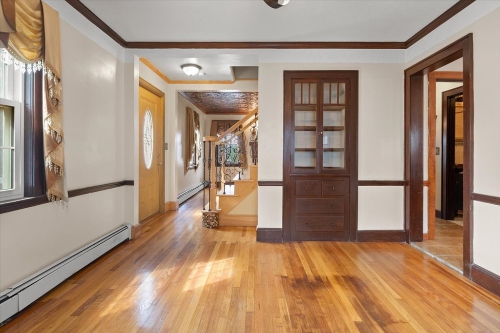 Beautifully maintained brick-front cape cod style home on a corner lot in one of Hyde Park’s most desirable neighborhoods near the Milton line. Spacious 1st floor includes 1 bedroom and 1 full bath. Well-planned kitchen with granite counters, stainless appliances, plenty of cabinet storage, tiled floor, combination washer & dryer and walk out to rear deck. Beautiful hardwood floor throughout this level. The living room is truly elegant with aluminum ceiling tiles and a brick-front fireplace. The ample dining room is perfect for celebrations with family and friends. The 2nd floor features 2 bedrooms with laminate floor and a 2nd full bath. Tiled floor throughout the finished basement, which has a 4th bedroom, a 3rd full bath, another living or family room, a kitchenette, plus a full washer and dryer. Perfect for extended family. 3 heating zones, one for each floor. 1 car garage + 1 off-street parking. Near public transportation and close to route Rt 138, I 93 and I 9