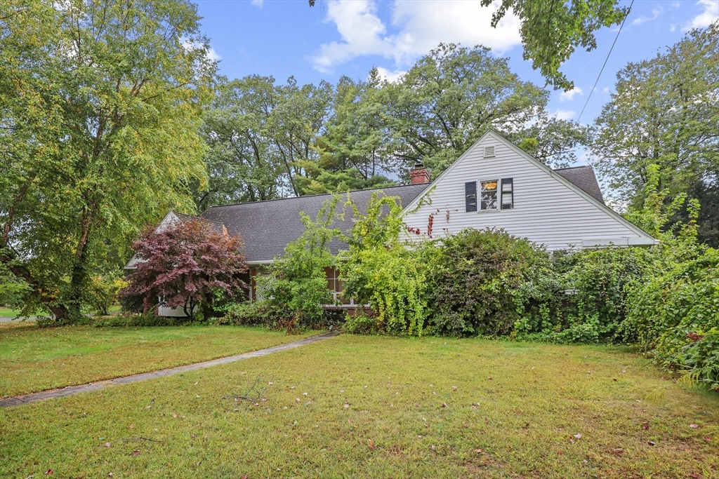 OPPORTUNITY KNOCKS- CUSTOM BUILT cape w/FLOW & FUNCTION in prime central location in the coveted Blueberry Hill district. Home’s footprint is ample, POTENTIAL endless & FIRST TIME being offered to marketplace on a great street with a tremendous range of property values. Fantastic & generous main level showcases hardwoods under most carpeting including the open living/dining room w/stacked stone fireplace opening to four season sunroom beyond w/half-vaulted ceiling, tile floors, skylights & walls of glass. Cozy den features bow window & custom built-in bookcase/dry bar. Kitchen has ample space w/white wood cabinetry, center island & eating area. Mudroom houses laundry & hall closet. Bedroom wing has large primary suite w/wall of closets, 2 more bedrooms w/double closet & tiled full bath. Upper-level features plenty of storage in eaves, 4th bedroom w/hardwood, home office & third full bath. CLASSIC home that will SHINE with your COSMETIC TOUCHES and PRICED WELL.