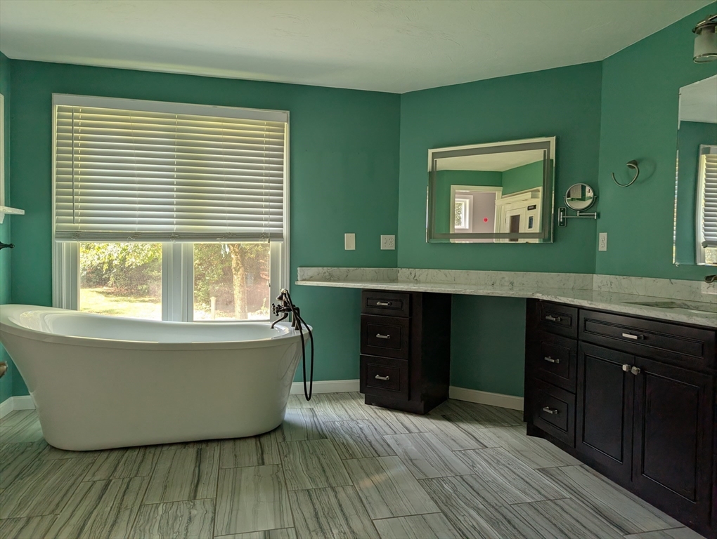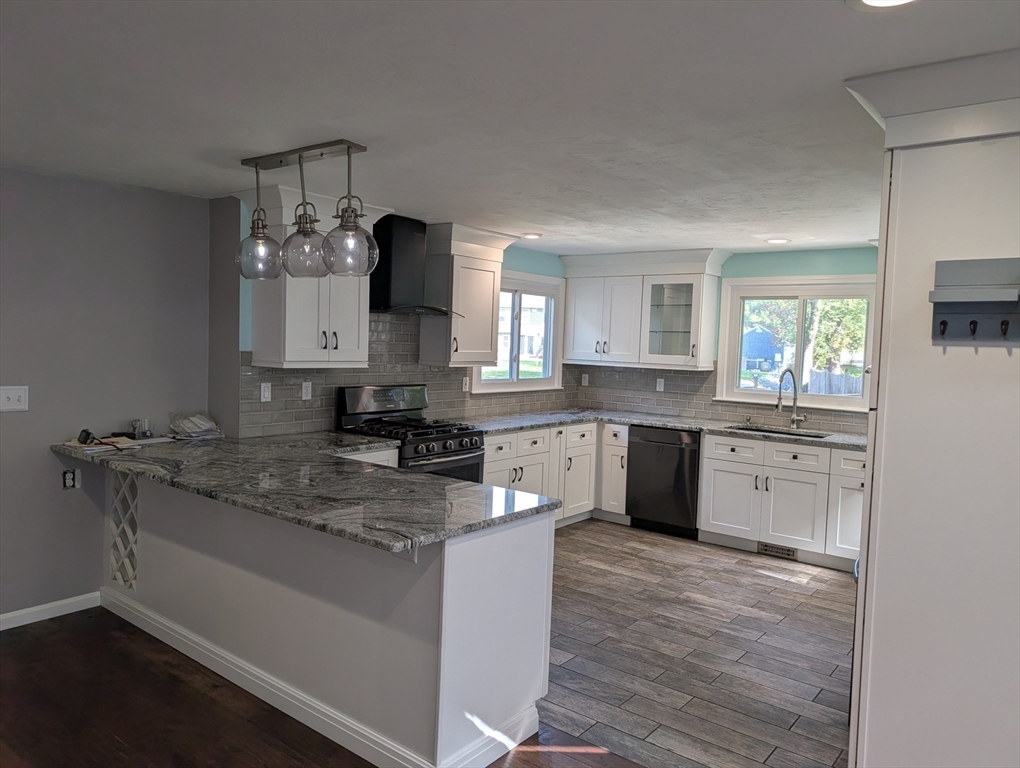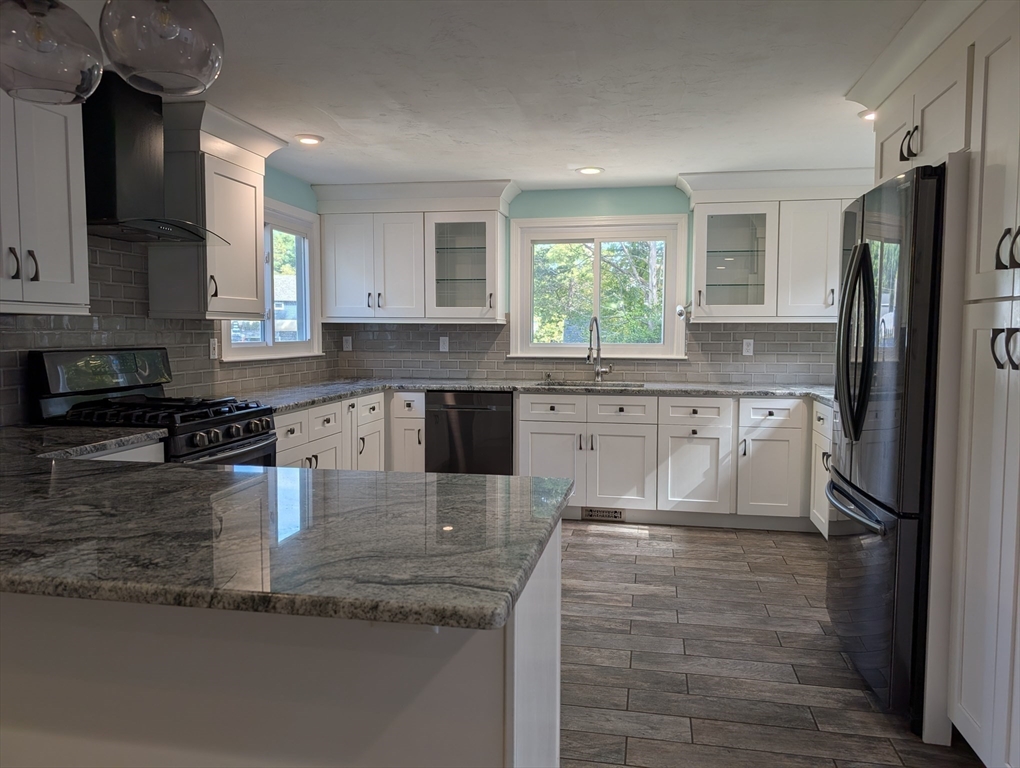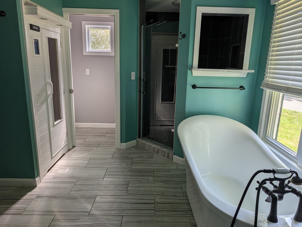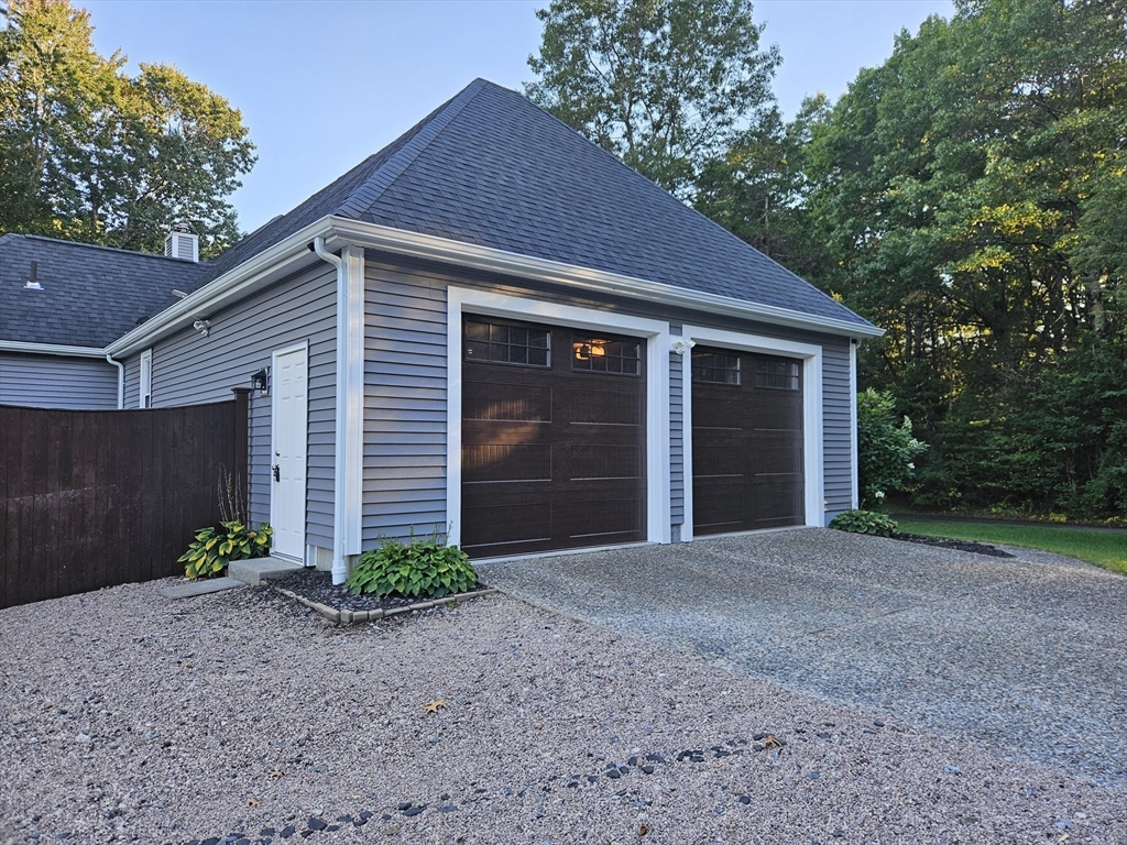 This home will be sure to check off all your boxes! Located in a small subdivision, close to commuter rail and schools with a private fenced in back yard. One floor living, renovated in 2018 with all new flooring, new kitchen, bathrooms, roof, windows, siding, gutters and garage doors. New gas furnace in 2025. The spacious kitchen has granite, tons of cabinets and lots of natural lighting. Open concept living room with vaulted ceiling, gas fireplace, skylights, sliders to 32X16 patio, and a dining area. The private master bedroom has it's own gas fireplace and sliders to the patio along with a walk-in closet. The Ensuite bathroom is more than you could as for. Double sinks with an added make-up area and lots of mirrors. A tiled walk-in shower and a separate soaking tub, Infared sauna and a separate toilet area with pocket door. The driveway, front walkway and patio area are poured aggregate. The basement has a full gym set-up (negotiable). Close to everything but with a country feel.