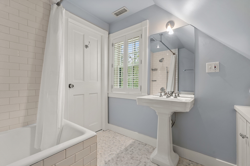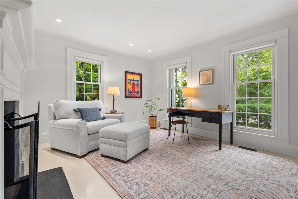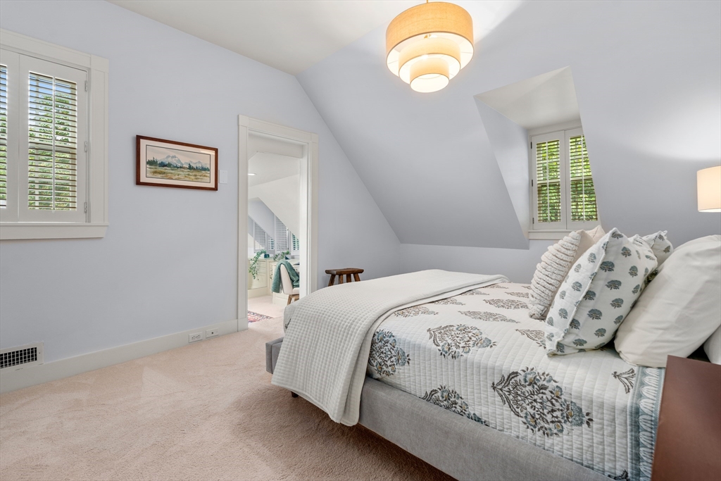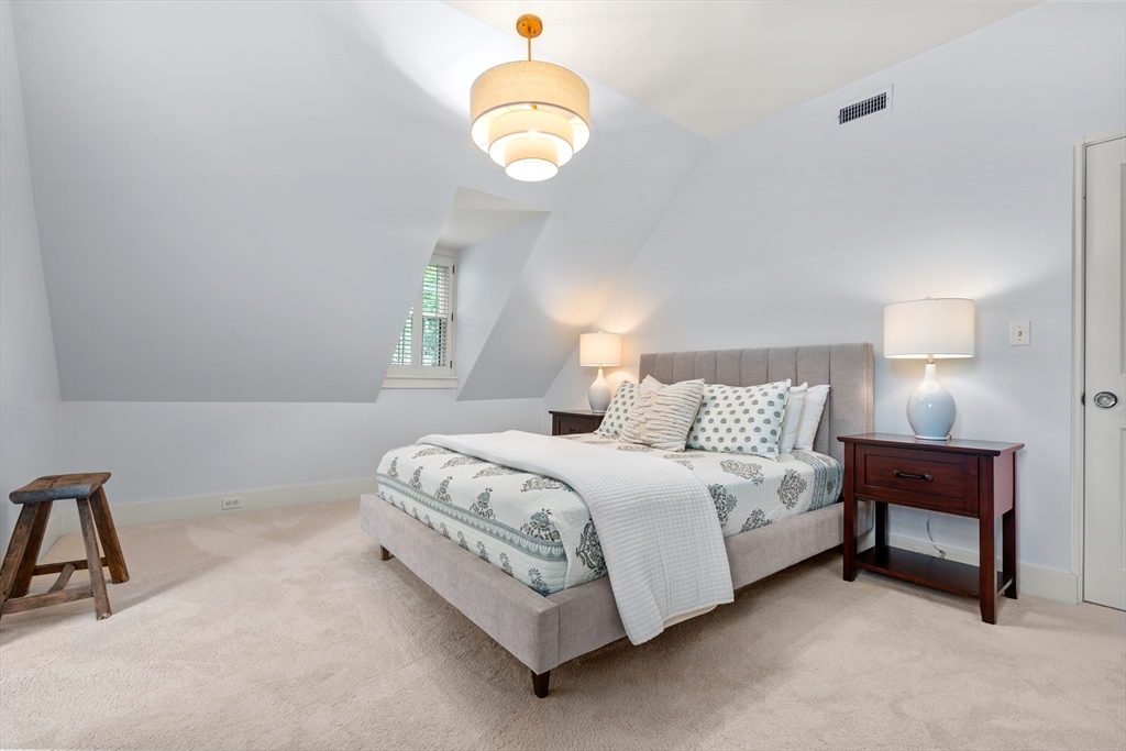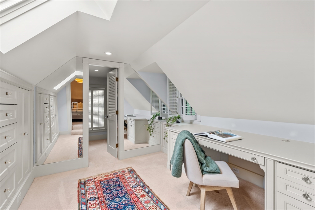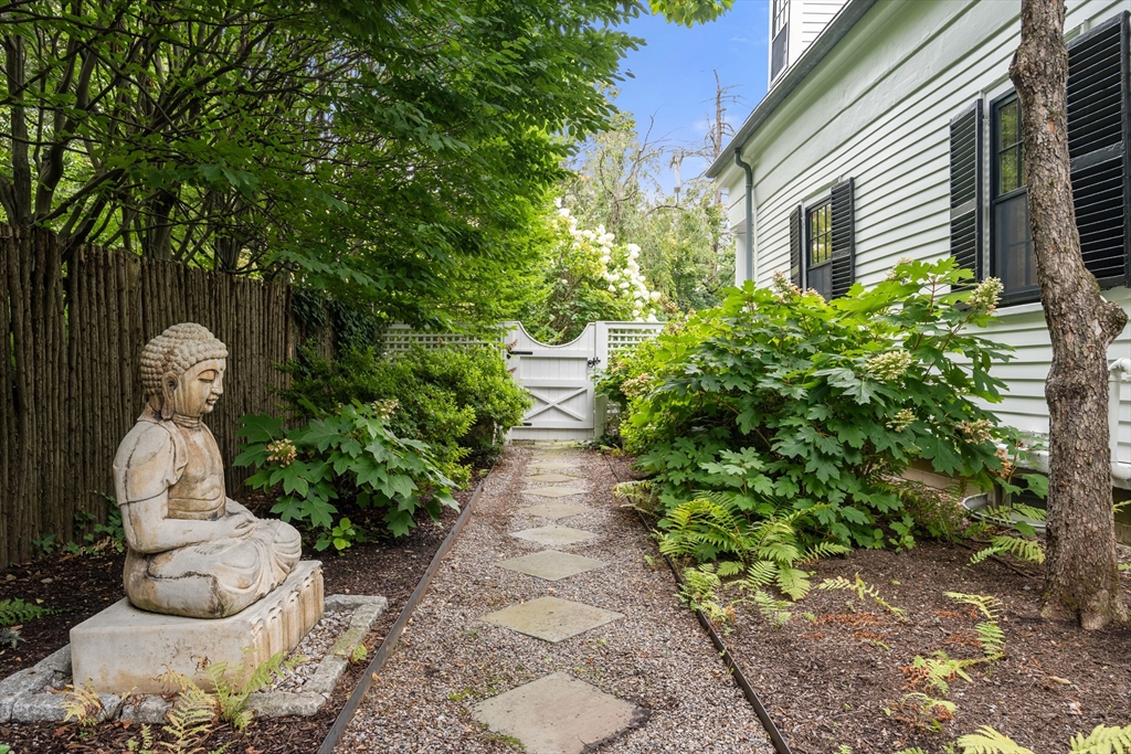 This meticulously renovated home offers fine features like custom millwork and skylights that enhance its period charm while adding contemporary style and comfort. The open-concept first floor showcases well-proportioned rooms laid out for easy indoor-outdoor entertaining. Off the foyer is a formal living room with a decorative fireplace and floor-to-ceiling built-ins. The dining room has two china closets and a striking floor-to-ceiling window. A gourmet kitchen features a beamed cathedral ceiling, tall cabinets, an induction stove, and access to the deck and enclosed stone patio. The 21' family room has a gas fireplace, and there’s an 18' sunken media room with a double-height vaulted ceiling. Upstairs, the serene primary wing offers an outfitted office/dressing room, walk-in closet, and en-suite bath. Another bed/bath suite is also on this floor. Sited between the Radcliffe Quadrangle and Raymond Park, the home is located less than a mile to both Harvard Yard and Fresh Pond.