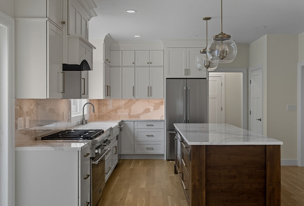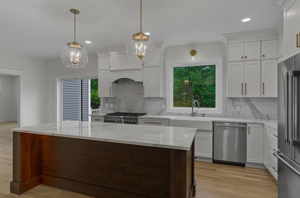 Spectacular new construction home boasting a gorgeous & modern farmhouse style ready for immediate occupancy. 9 NEW exquisite residences on a tranquil cul-de-sac bordered by 100+ acres of conservation land. This exciting new development is built by Kiley Brock Homes with 1 home already SOLD. This home perfectly blends modern living, work, & entertainment spaces w/ a stunning open concept design w/ hardwood floors throughout. Grand chef’s kitchen complete w/ oversized island & Thermador appliances inc. 6-burner range & wooden hood. FR w/ stylish fireplace & coffered ceilings. Private study that could also serve as a bedroom, mudroom w/ built-ins, & FULL bath. Sumptuous primary suite inc. sitting room & spa-like bath w/ tiled shower & soaking tub. 3 add’l bedrooms, laundry rm, & finished third level offering versatile space for 5th bedrm or rec room. Full basement w/ daylight windows for expansion. Large composite deck & oversized patio. Come discover the difference at Hayes Woods today!