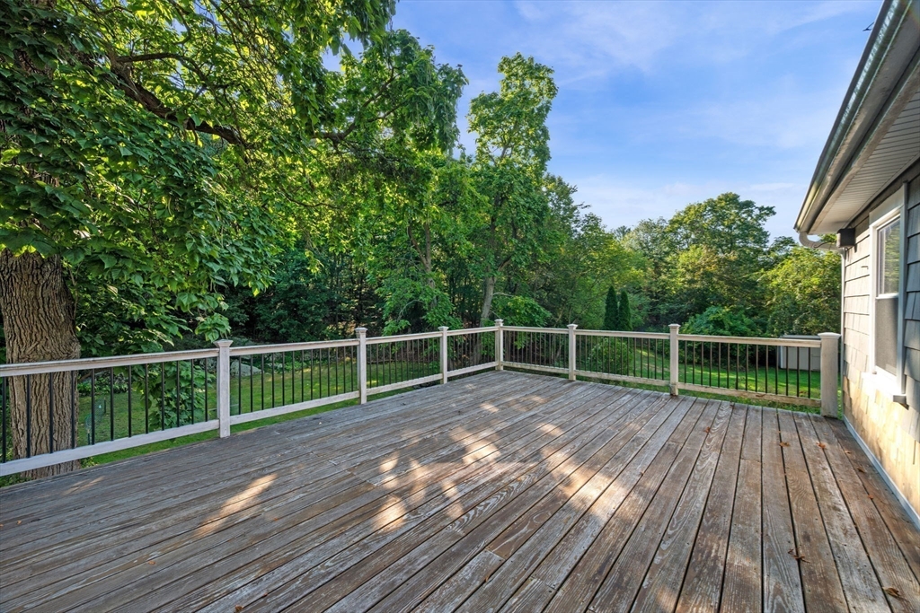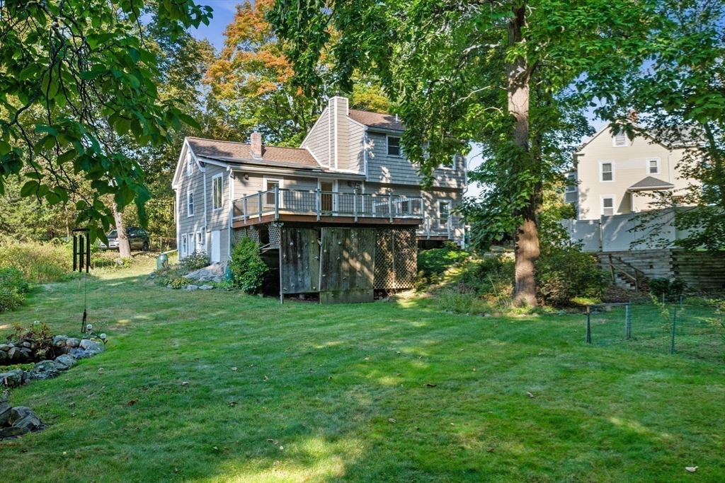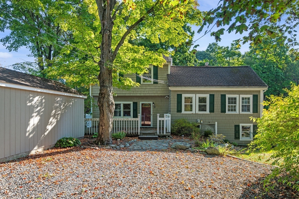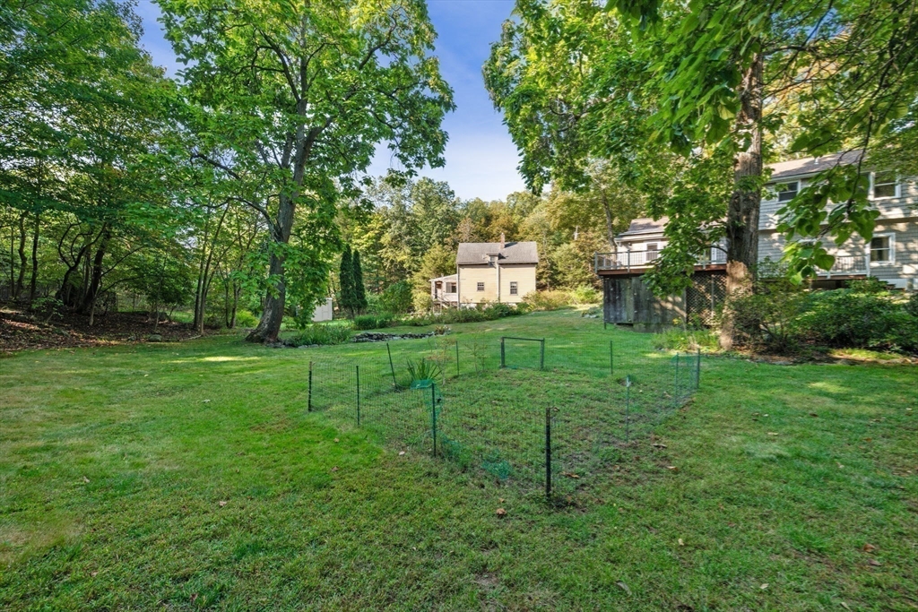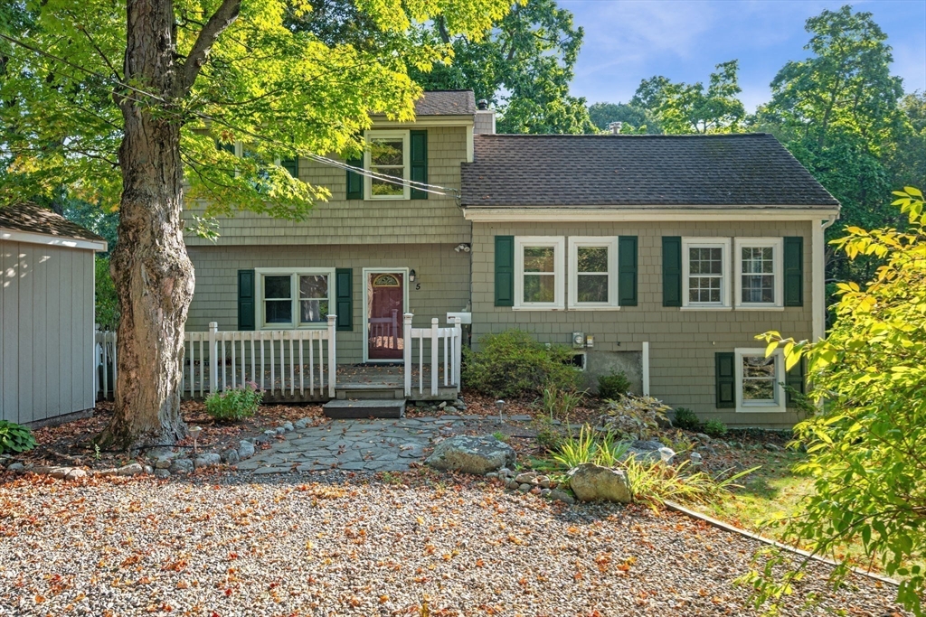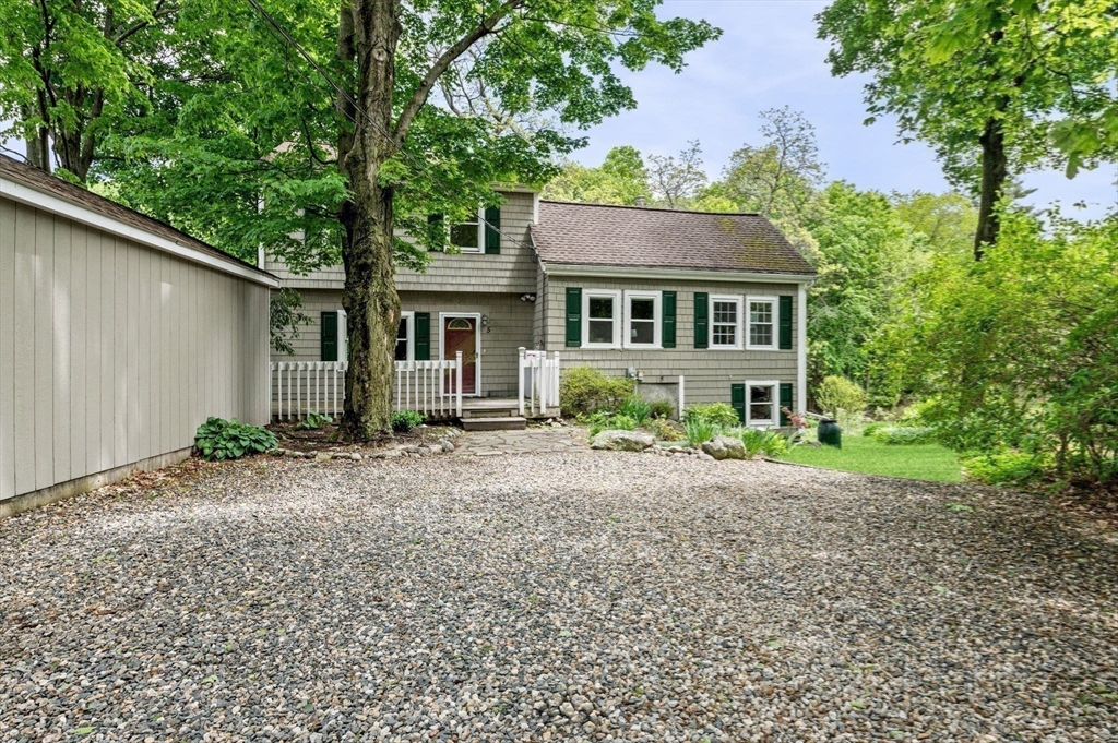 Charming Colonial on a quiet cul-de-sac w/ 3 BR/ 2 full bathrooms & hardwood floors. A bright kitchen w/ wood beams & stainless appliances– Brand new stove & dishwasher– Natural wood cabinetry. There's a formal dining room & a separate laundry room. Spacious & well lit living room with cozy wood stove, expansive deck. First floor bedroom. Upstairs you'll find 2 spacious bedrooms & a full bathroom. Lovingly maintained & offering thoughtful features inside & out—Including a basement workshop & additional storage. The pea stone driveway & perennial landscaping create exceptional curb appeal while the large backyard & deck offer peaceful outdoor living overlooking lush grounds w/ lily pond & mature trees. Perfect blend of privacy, comfort & location. A truly inviting property with timeless charm & tranquil surroundings. A move-in ready Colonial ready for your personal touches. Solar panels owned & substantially offsets electric bill. There is currently a credit (bill available for review)!