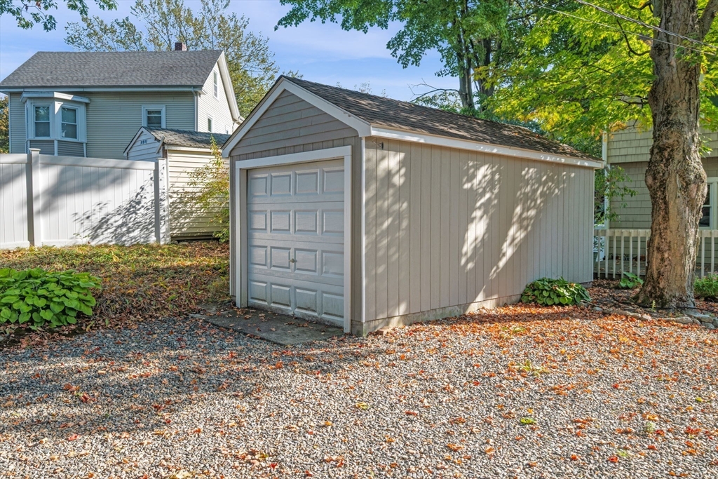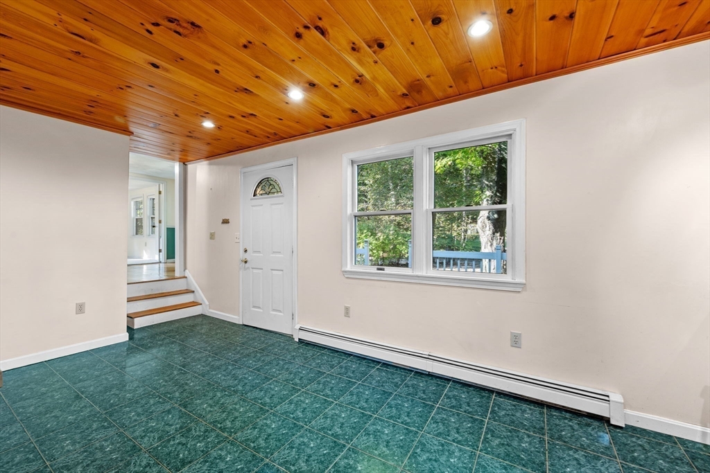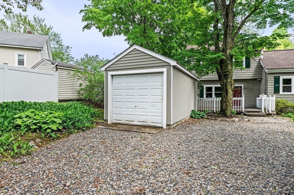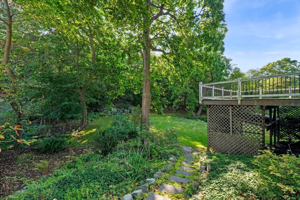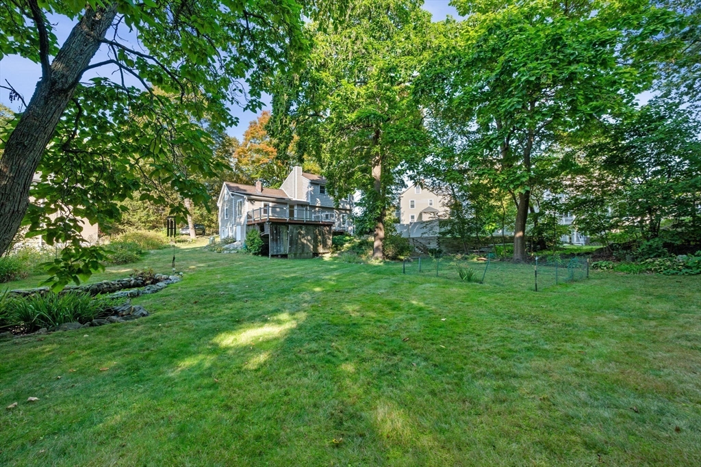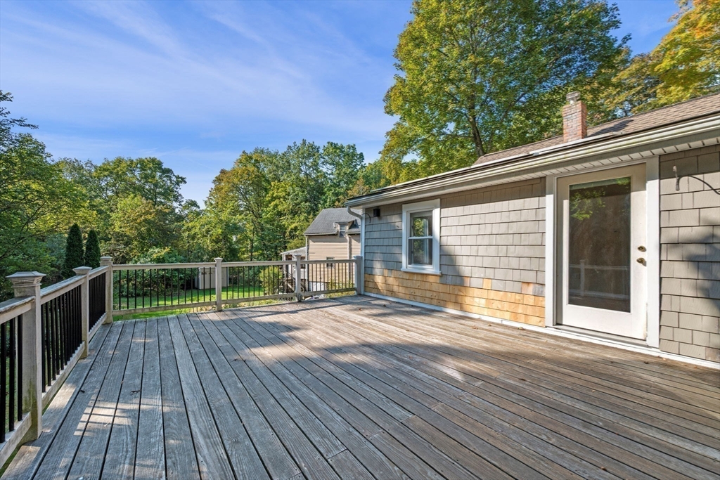 Charming Colonial on a quiet cul-de-sac w/ 3 BR/ 2 full bathrooms & hardwood floors. A bright kitchen w/ wood beams & stainless appliances– Brand new stove & dishwasher– Natural wood cabinetry. There's a formal dining room & a separate laundry room. Spacious & well lit living room with cozy wood stove, expansive deck. First floor bedroom. Upstairs you'll find 2 spacious bedrooms & a full bathroom. Lovingly maintained & offering thoughtful features inside & out—Including a basement workshop & additional storage. The pea stone driveway & perennial landscaping create exceptional curb appeal while the large backyard & deck offer peaceful outdoor living overlooking lush grounds w/ lily pond & mature trees. Perfect blend of privacy, comfort & location. A truly inviting property with timeless charm & tranquil surroundings. A move-in ready Colonial ready for your personal touches. Solar panels owned & substantially offsets electric bill. There is currently a credit (bill available for review)!