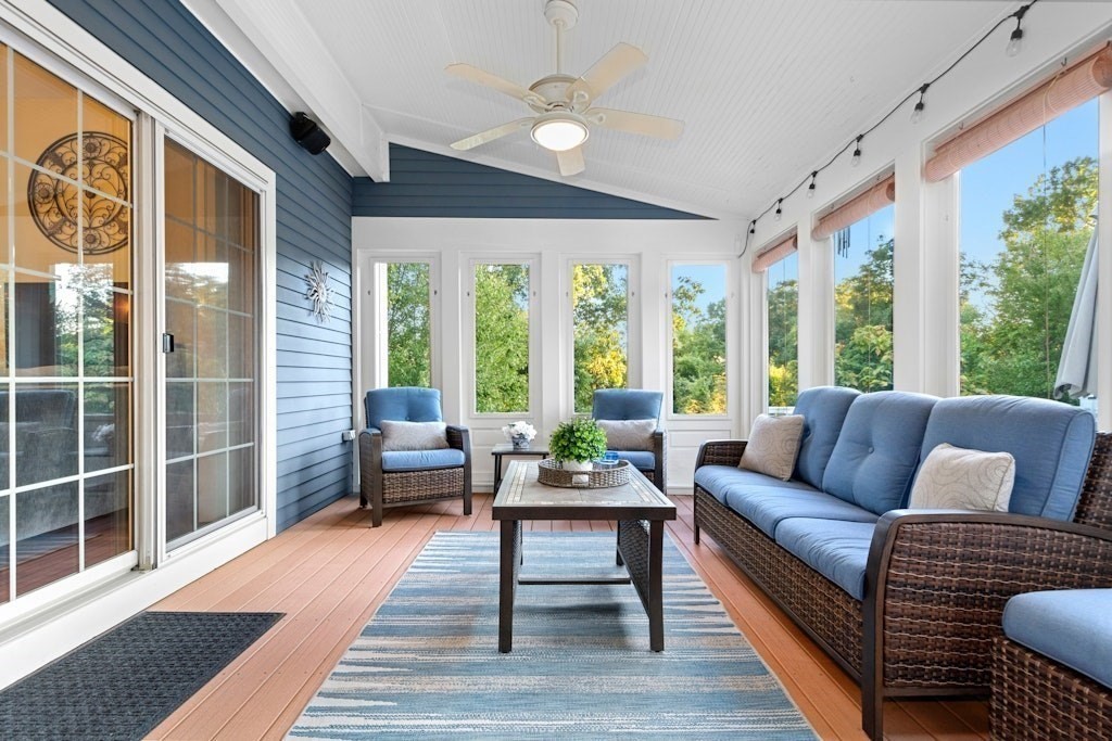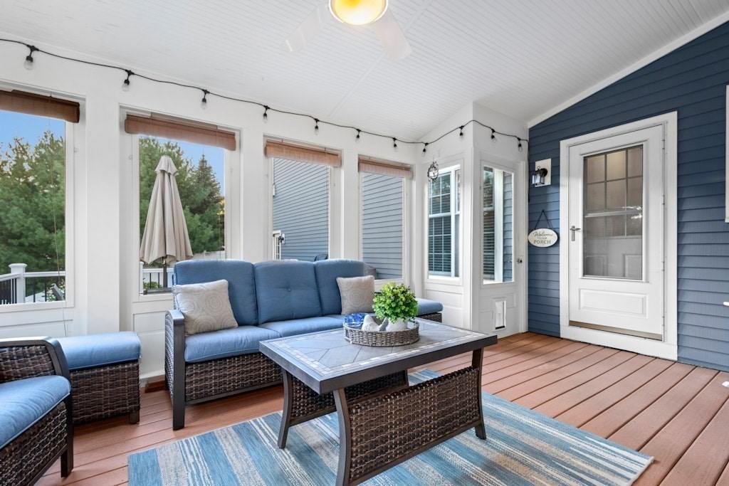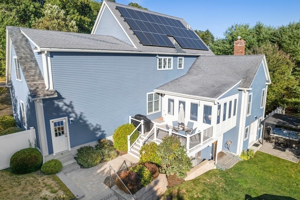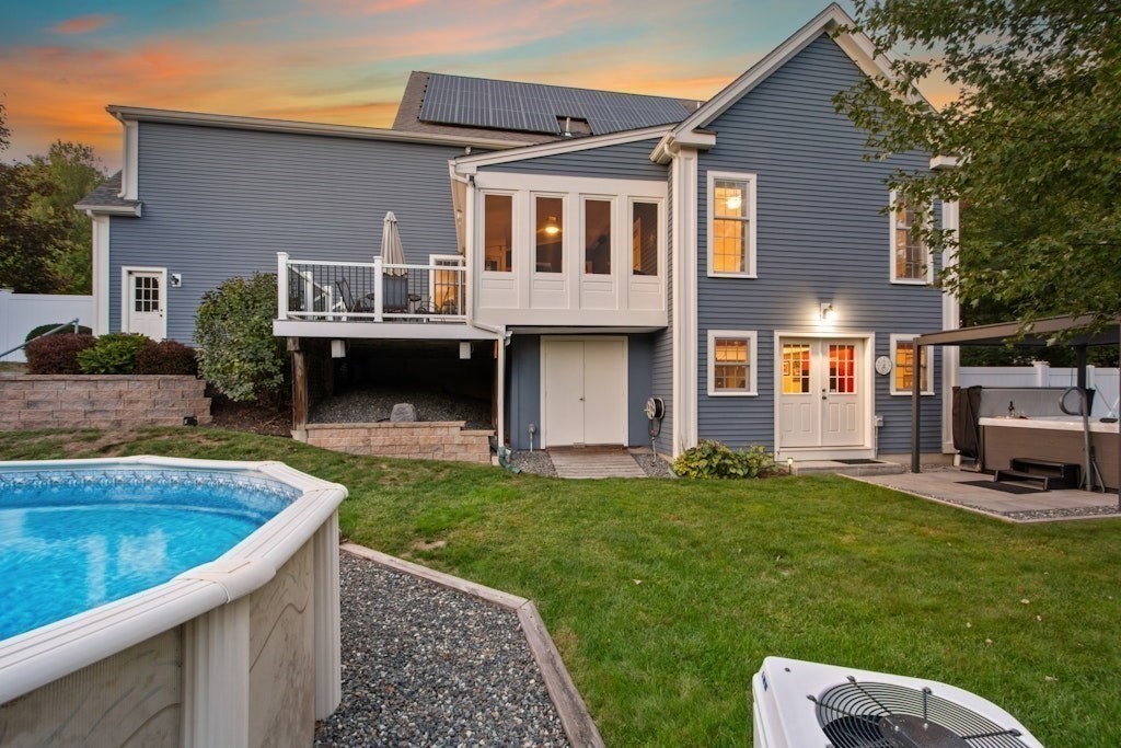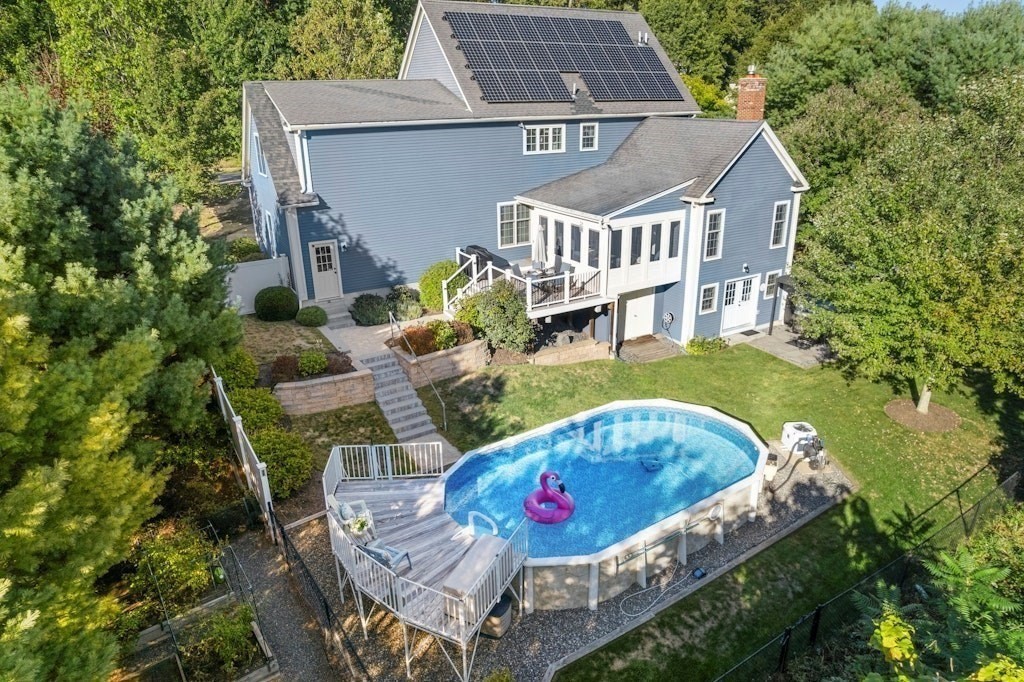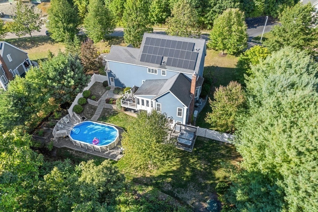 Located in the coveted Cortland Manor neighborhood, this stunning colonial has been meticulously maintained by its original owner. A sweeping staircase and gleaming hardwood floors welcome you inside. The kitchen offers granite counters, tile backsplash, stainless appliances, and a center island, opening to a soaring cathedral great room with a gas fireplace. The elegant dining room features a tray ceiling, crown molding, and wainscoting, while a first-floor office and second-floor laundry add convenience. The expansive primary suite boasts a walk-in closet and vaulted bath with dual sinks, soaking tub, and shower. Three additional bedrooms and a full bath complete the upper level. The finished walk-out lower level leads to a hot tub with covered pergola, pool, and new composite deck overlooking a beautifully landscaped, fenced yard. A screened porch enhances outdoor living. Many updates throughout and fully paid solar provide energy efficiency with minimal electric bills.
