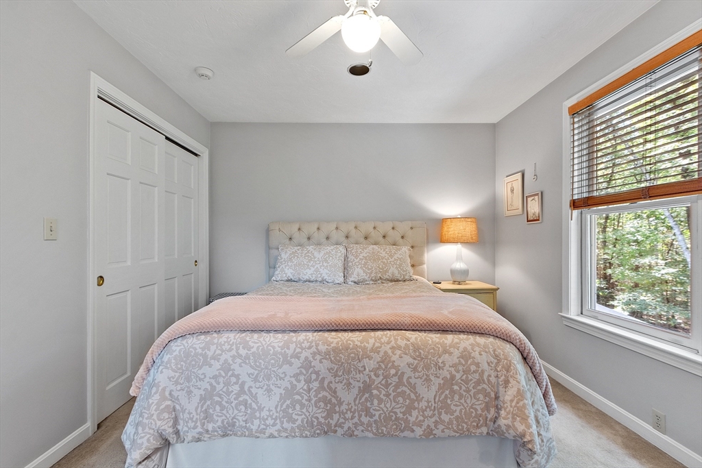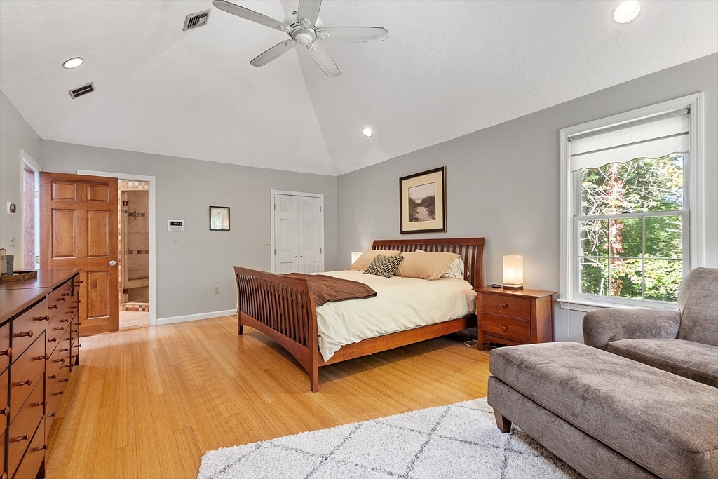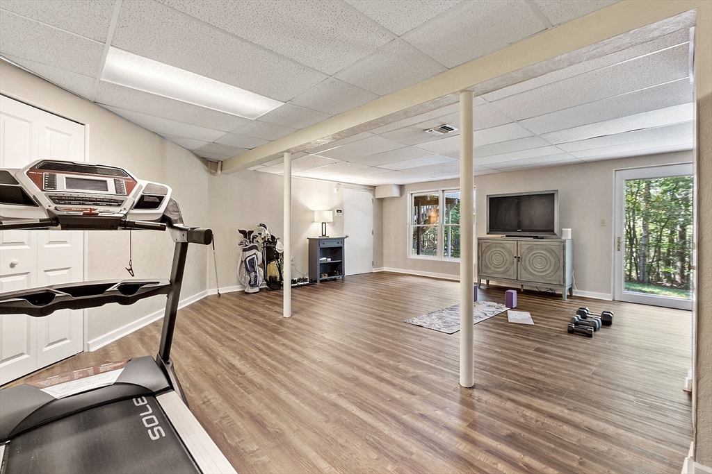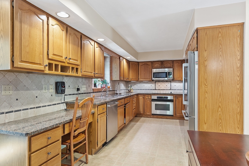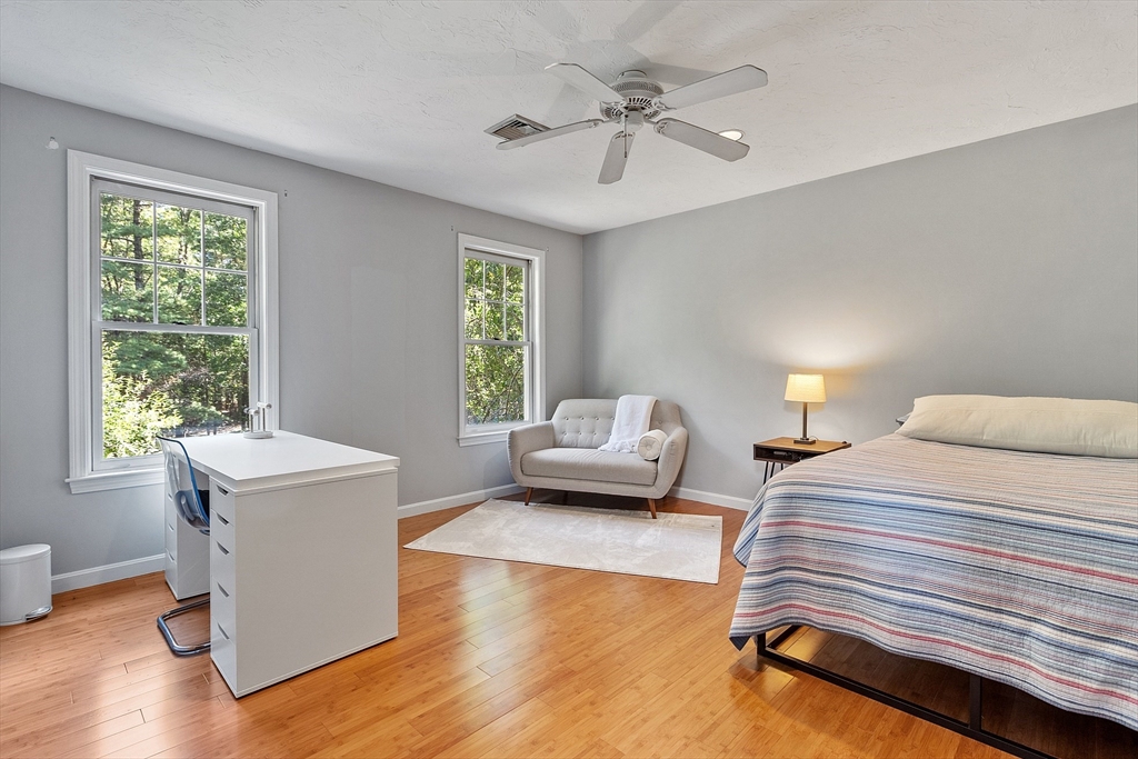 Welcome to this beautifully maintained home where comfort, thoughtful design, and location come together. The expansive family room features hardwood floors, a fieldstone wood-burning fireplace, and two sliders to an oversized deck—perfect for entertaining or quiet mornings. The efficient eat-in kitchen offers charm and convenience. The formal dining room with hardwood floors suits both casual meals and special occasions. A front-to-back living room includes French doors and a gas fireplace for added warmth. Upstairs, the cathedral-ceiling primary suite offers an updated ensuite bath and walk-in closet, plus three additional spacious bedrooms and a full bath. The partially finished walk-out lower level to a patio provides flexible space for an office, gym, or playroom. With proximity to the Harvard track and playground, this inviting home is ready to support your lifestyle inside and out.