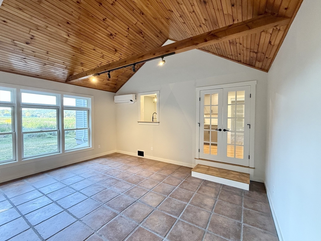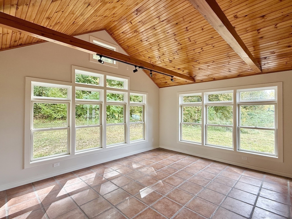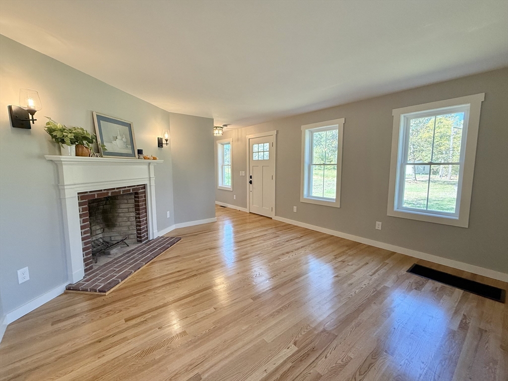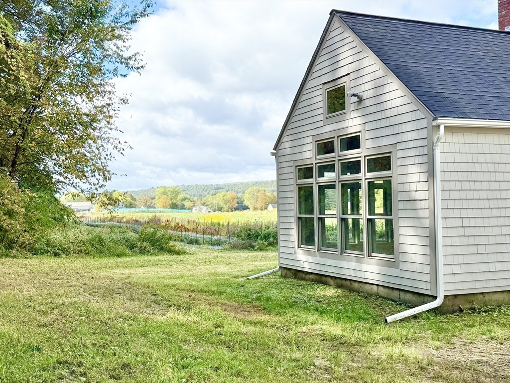 This stunning 3-bedroom, 2-bath home sits set back from the road in a beautiful country location. Step inside to find gleaming hardwood floors, abundant natural light and thoughtful details. The first floor features a cozy den with fireplace, a beautifully remodeled kitchen with quartz countertops and stainless-steel appliances. Off the back of the house is a spacious open concept living room and dining room, separated by a double-sided fireplace, beneath cathedral ceilings--making for a great entertainment space. Rounding out the main floor is a full bath along with a bedroom, offering convenience and flexibility and the option for aging in place. Upstairs are two more bedrooms and a full bath. There is a two-car garage and a nice size yard. Easy access to major routes and just 10-15 minutes from the Amherst area colleges. The Montague Bookmill is just down the street. Surrounded by recreational opportunities with the Ct. River close by. Open House on Thurs, Oct 2, from 4-6 pm.