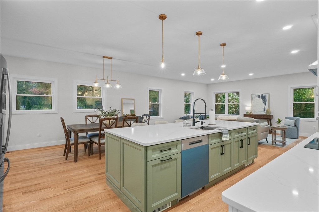 This brand-new custom-built home in Middleton showcases contemporary design and quality craftsmanship. This energy-efficient home features wide open 9-foot ceilings on every level, hardwood floors throughout, and a thoughtfully designed floor plan that flows perfectly from one space to the next. The open-concept main level offers a chef's kitchen, complete with a 10-foot sage island and quartz countertops, bar seating, stainless steel appliances, custom cabinetry, and an oversized pantry. A mud area with built-ins, a wash sink, and a back slider adds everyday convenience. Also on the main level are a private office and a half bath. Upstairs, a chandelier highlights the stairway to two bedrooms, a full bath, a laundry room, and a luxurious primary suite with its own heating/cooling zone, spa-style bath with oversized shower, and a huge walk-in closet. Add'l features incl. a 400-amp electric service, detached garage, new septic, and 4-zone climate control with 2 furnaces & 2 condensers.