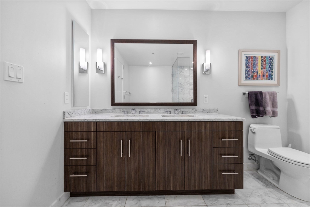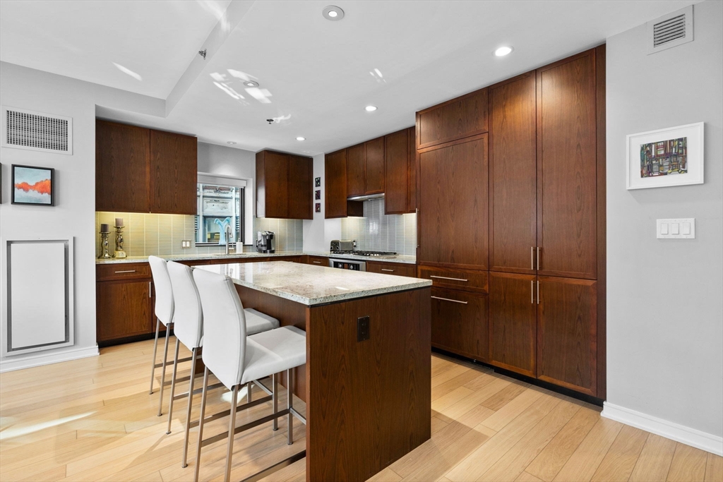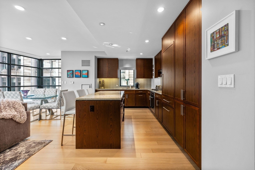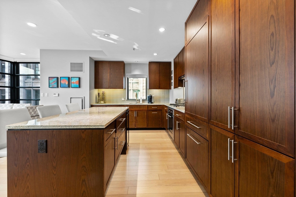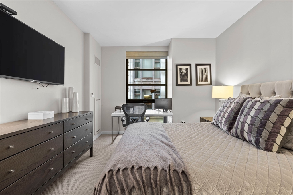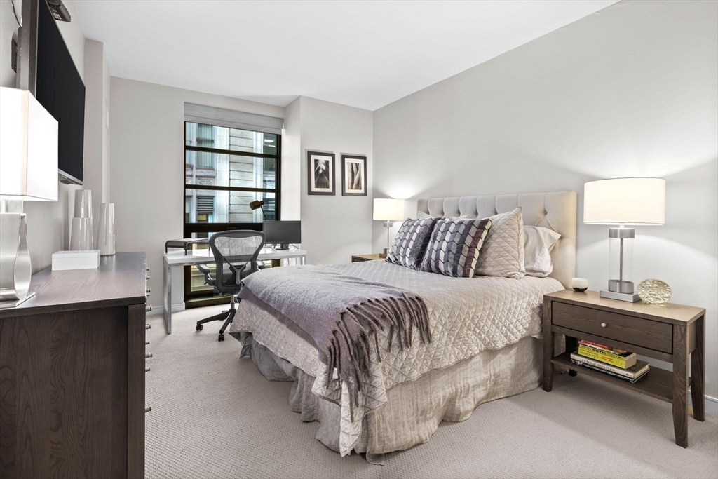 The most popular two-bedroom layout at Millennium Place! Located just one block from the Boston Common and Public Garden, across the street from The Ritz-Carlton, steps to fantastic dining and grocery, and a short walk to Beacon Hill, Back Bay, South End, and Seaport! This “C” style unit boasts 1,420 square feet of living space with an oversized living room filled with floor-to-ceiling windows, a gas fireplace, upgraded lighting, custom window treatments, and a built-in dry bar. The open-concept kitchen features a window and is appointed with dark-stained cabinetry, granite countertops, high-end appliances, and a full-size pantry. The primary bedroom includes an en-suite marble bath with double vanity, shower, plus soaking tub, a custom walk-in closet, and ample space for a king bed. The guest bedroom is ideal as a secondary bedroom, office, or flex space. Millennium Place includes 24-hour concierge service and 24-hour valet service plus top-notch amenities spaces. One valet parking.