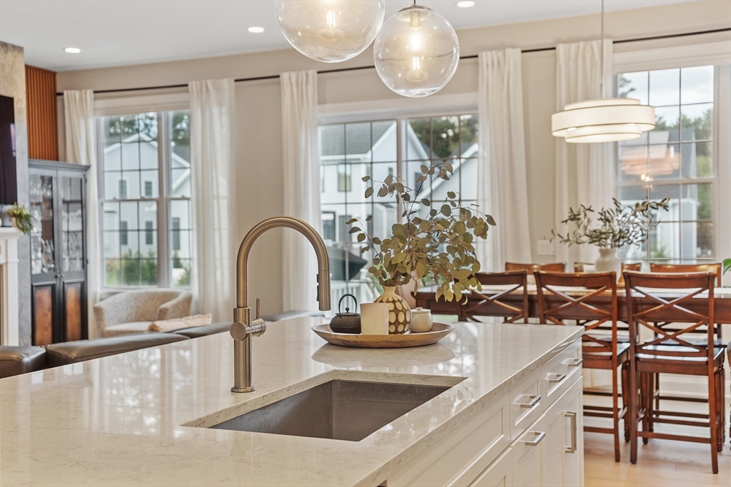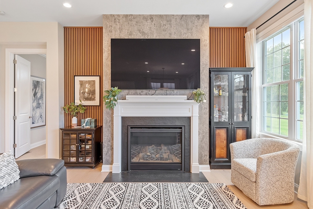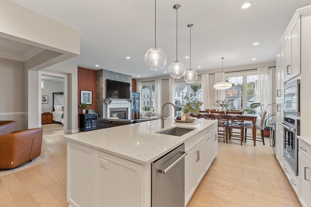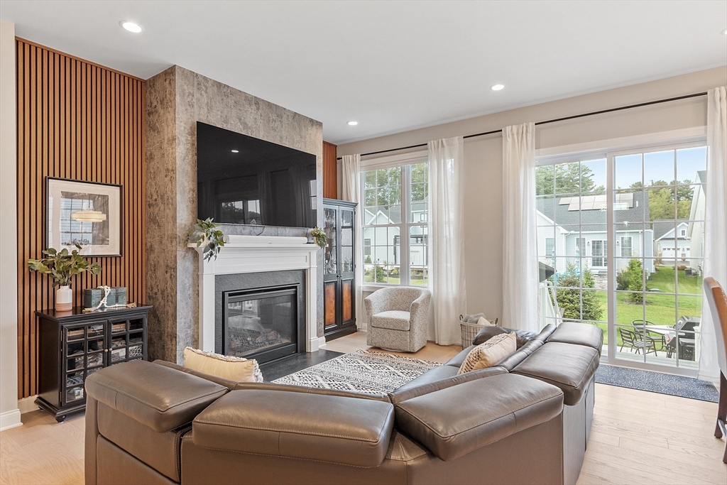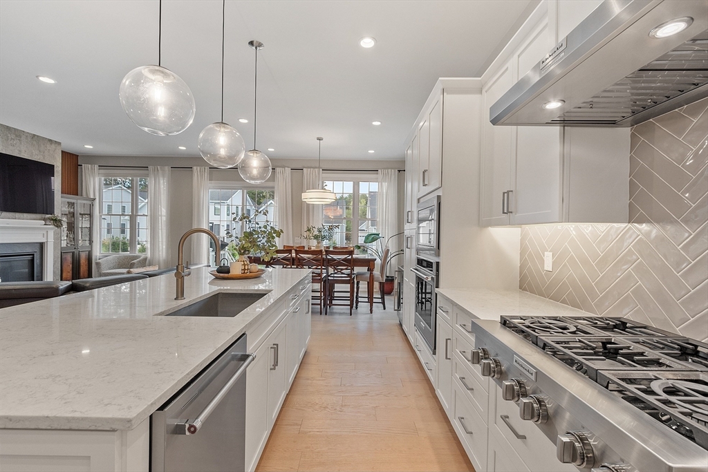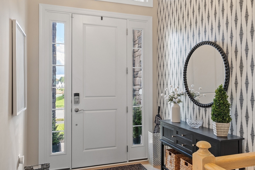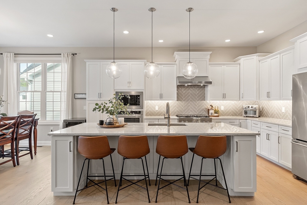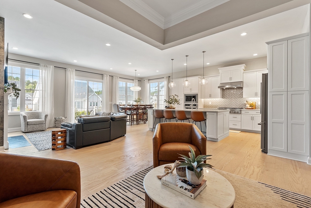 Welcome to Tyngsborough’s coveted Enclave community, where resort-style amenities include a heated pool, an impressive clubhouse with gathering spaces & a gym + pickleball, bocce & a community garden! An open floor plan connects an expanded chef’s kitchen, family room & dining area. The kitchen showcases premium KitchenAid appliances, 6-burner gas cooktop with externally vented hood, 2 wall ovens & beverage fridge, plus rich cabinetry with underlighting, herringbone backsplash & crown moulding. Dine at the quartz-topped island or in the bayed eating area overlooking the backyard. The inviting family room with a gas fireplace & a faux-stone surround is centered on a wood accent wall & enhanced by a 10-ft ceiling & custom curtains. An adjacent flex space for dining or sitting. The main suite offers 2 custom closets & a spa-like bath with quartz double vanity & tile/glass shower with bench. Outdoor living shines on the expanded patio with with added landscaping. OFFERS DUE 10/7 AT NOON.