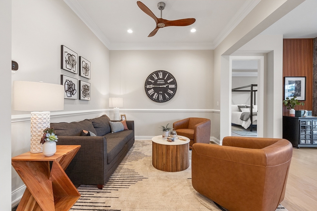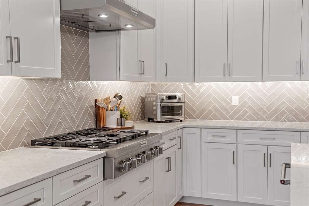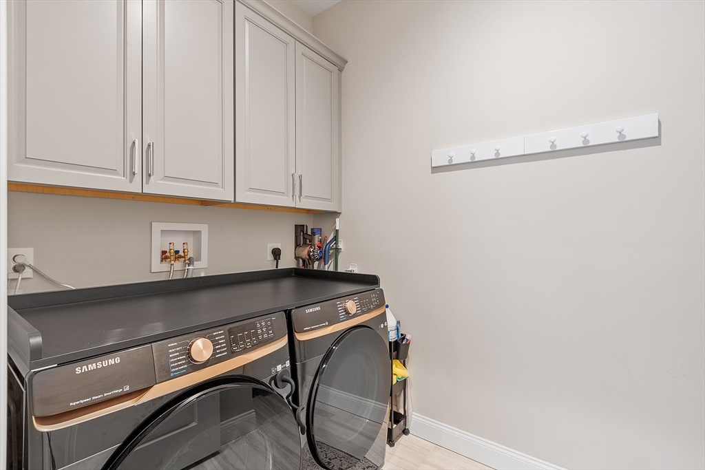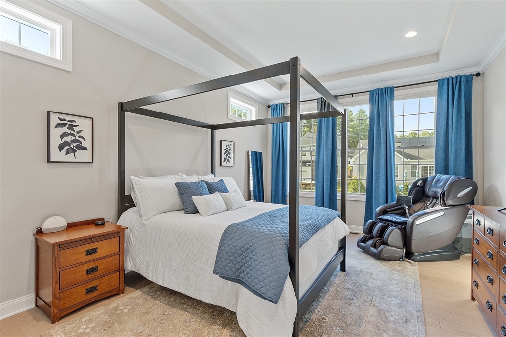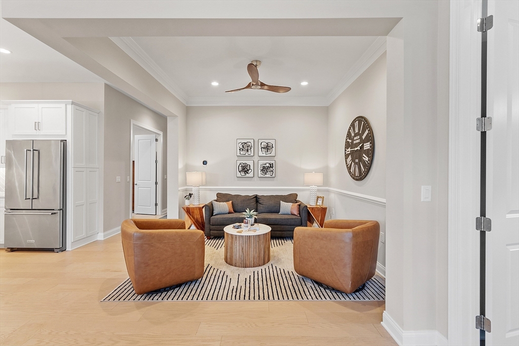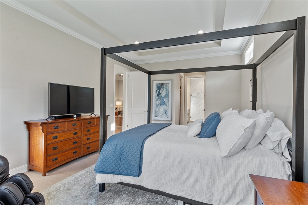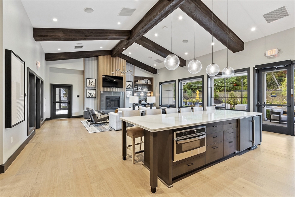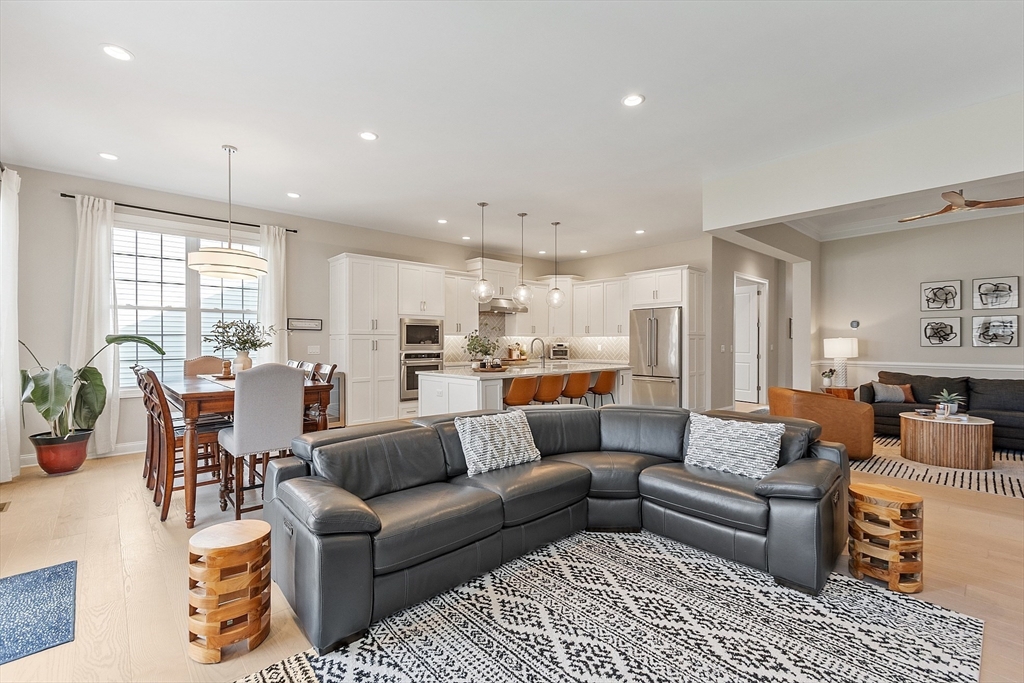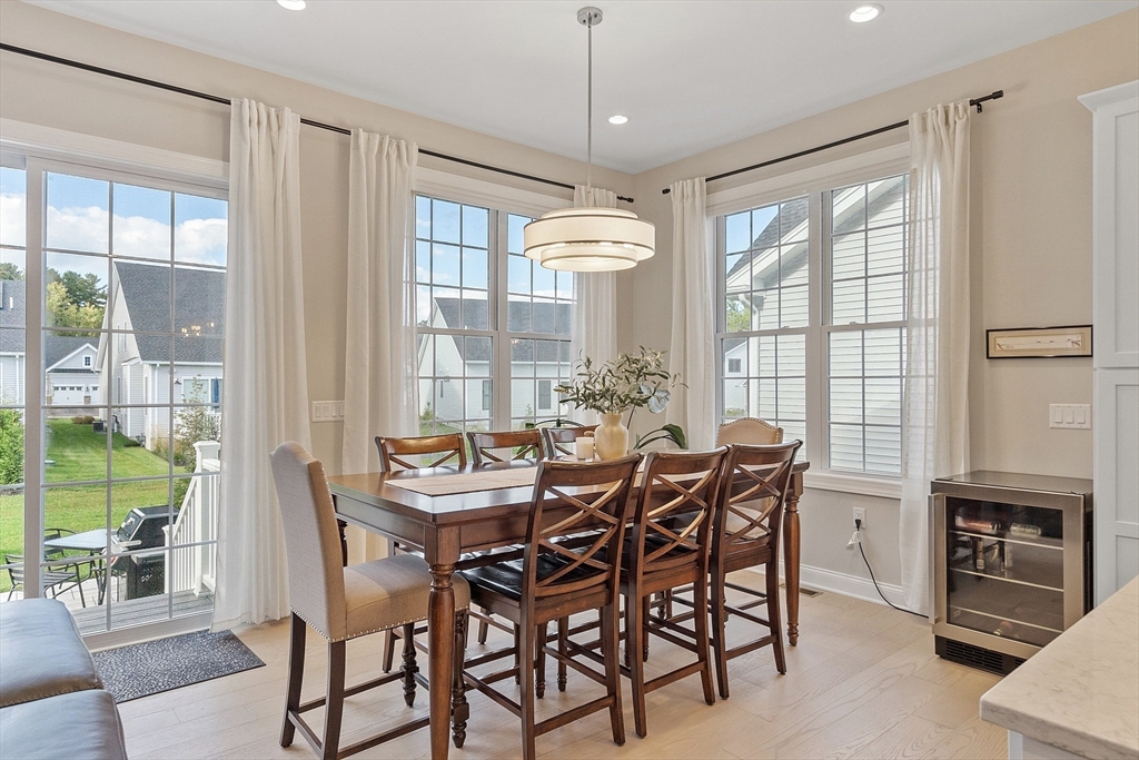 Welcome to Tyngsborough’s coveted Enclave community, where resort-style amenities include a heated pool, an impressive clubhouse with gathering spaces & a gym + pickleball, bocce & a community garden! An open floor plan connects an expanded chef’s kitchen, family room & dining area. The kitchen showcases premium KitchenAid appliances, 6-burner gas cooktop with externally vented hood, 2 wall ovens & beverage fridge, plus rich cabinetry with underlighting, herringbone backsplash & crown moulding. Dine at the quartz-topped island or in the bayed eating area overlooking the backyard. The inviting family room with a gas fireplace & a faux-stone surround is centered on a wood accent wall & enhanced by a 10-ft ceiling & custom curtains. An adjacent flex space for dining or sitting. The main suite offers 2 custom closets & a spa-like bath with quartz double vanity & tile/glass shower with bench. Outdoor living shines on the expanded patio with with added landscaping. OFFERS DUE 10/7 AT NOON.