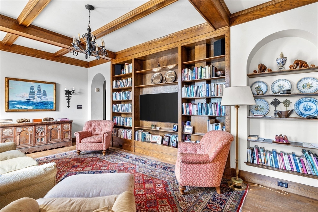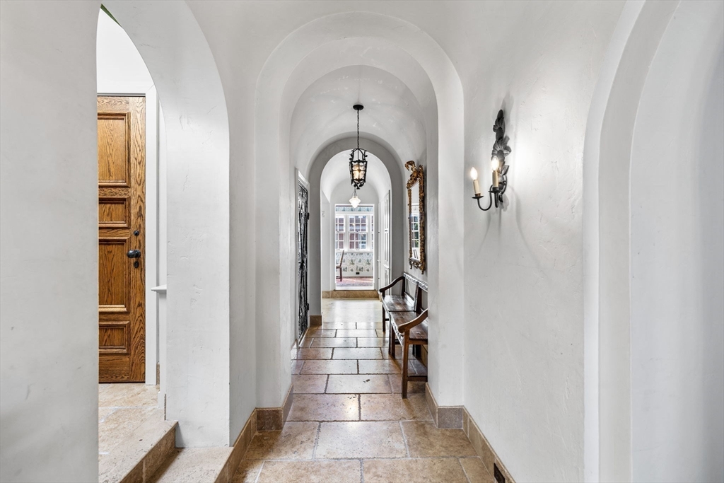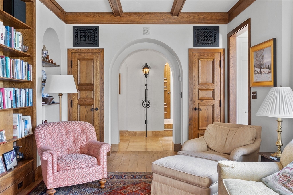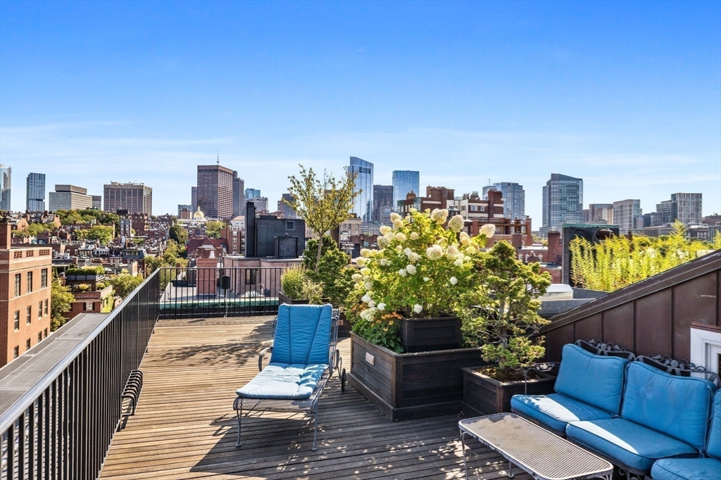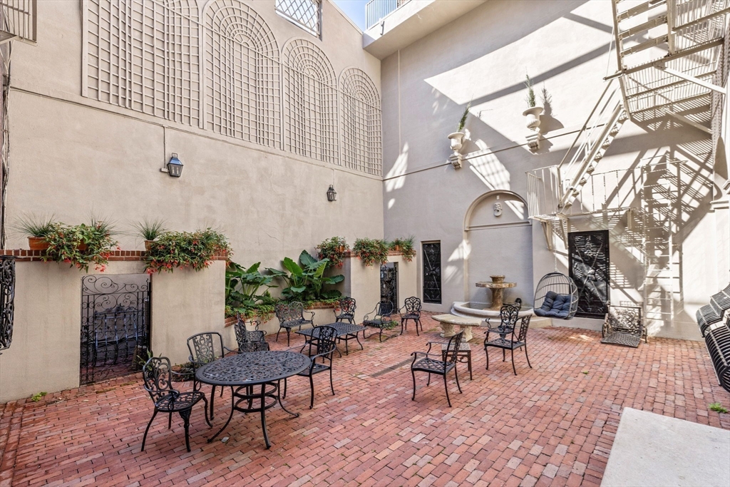 Reminiscent of a classic Venetian palazzo, 142 Chestnut is the former Mansion of famed Boston architect Henry Forbes Bigelow and is located on one of the most desirable streets on the Flat of Beacon Hill. A stunning, Italian-Renaissance inspired brick courtyard graces the center of the building and is complete with a water fountain and lush, green plantings. The Penthouse Residence is a magnificent 4-bed, 3.5-bath home offering just under 3,000 square feet of living space all on one level with direct elevator access. Refined architectural design throughout the home reflects timeless European elegance with custom features such as coffered wood beam ceilings, oversized windows, expertly crafted oak built-ins, handsome hardwood flooring and ornate wrought-iron light fixtures. A spectacular roof deck offers panoramic views of the Charles River, Beacon Hill and Back Bay skyline. Steps from all Beacon Hill has to offer, this magnificent property includes 1 garage parking space.