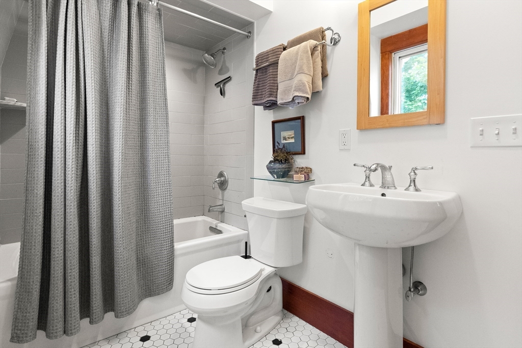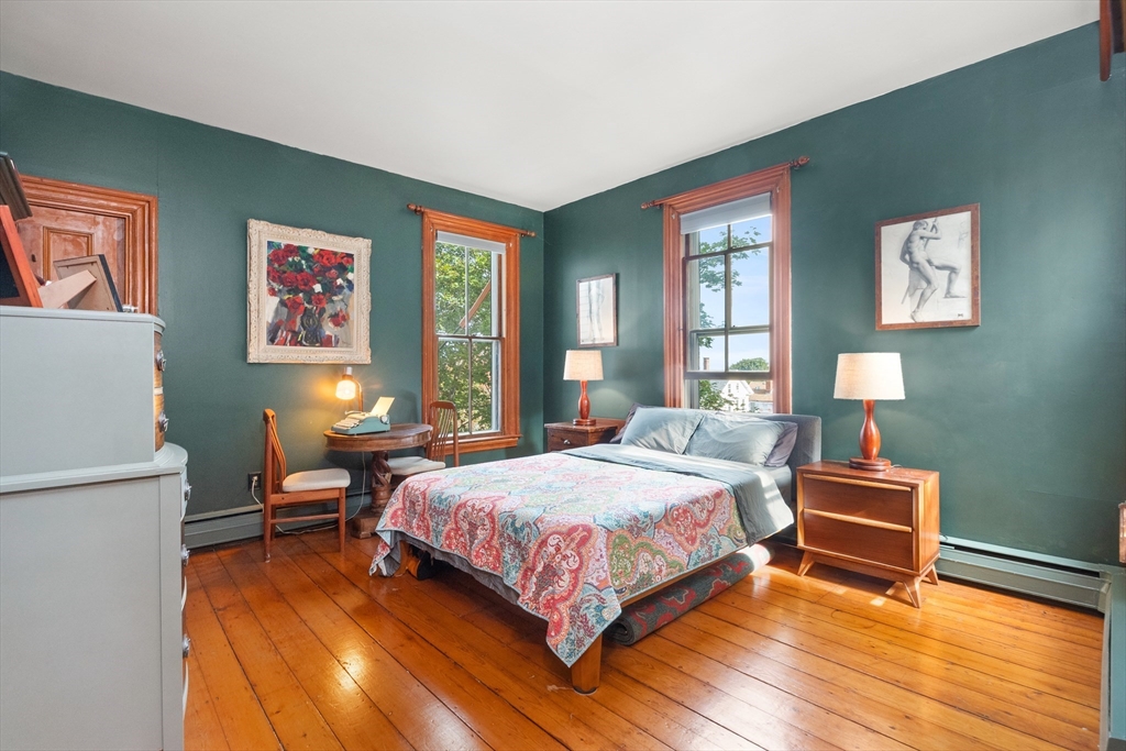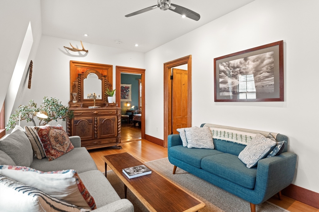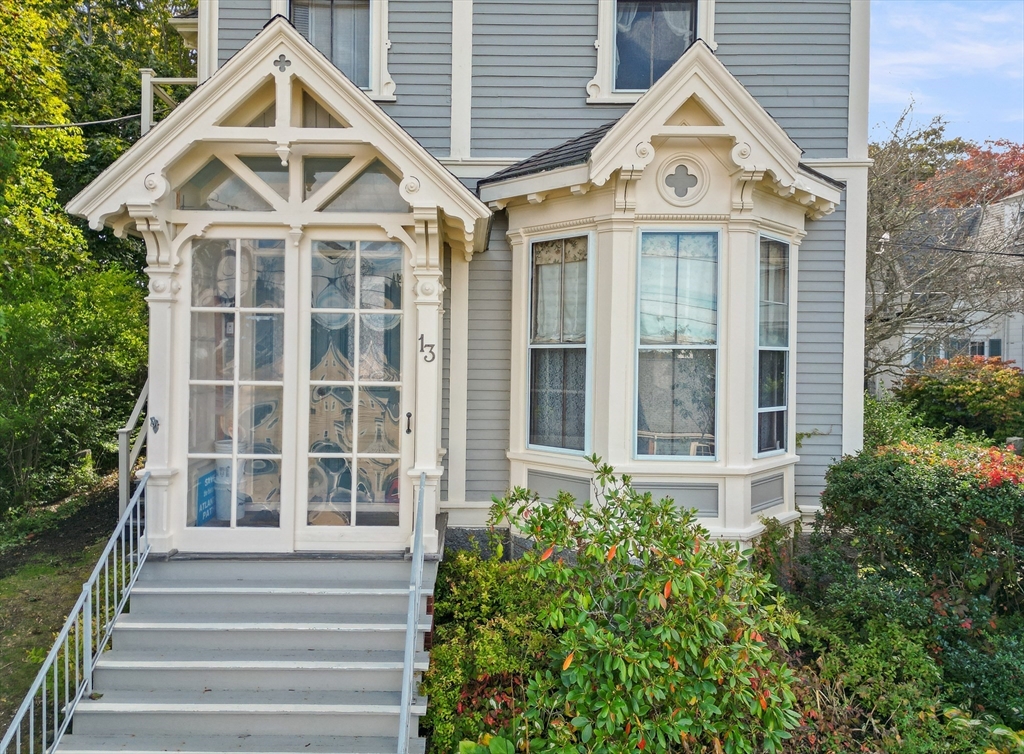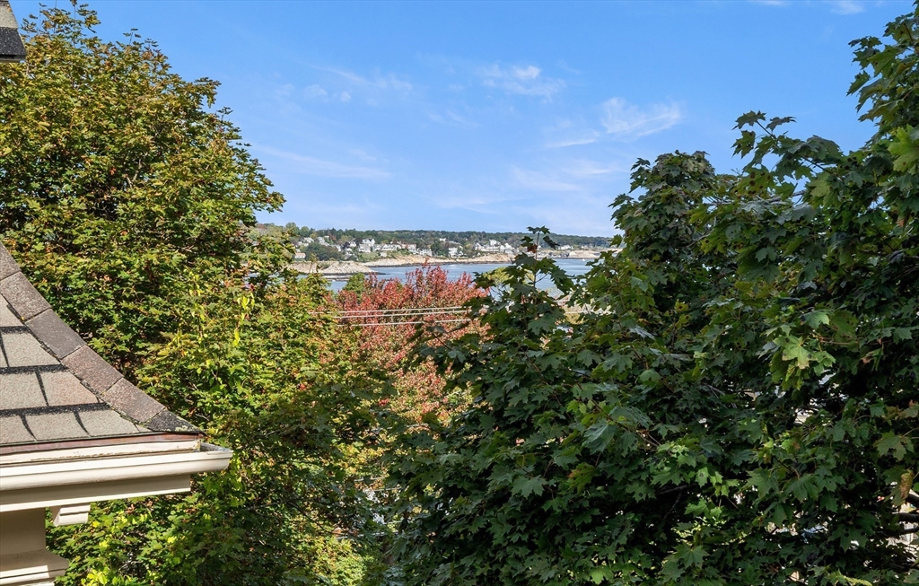 Iconic Queen Ann Victorian, converted into condos in 1995, has commanding views of Rockport Village and Sandy Bay. This second level unit features large oversized windows offering tons of natural light, beautiful wood flooring, original period details and soaring ceilings. The kitchen has been recently renovated with wood countertops and new stainless steel appliances and has a room for a breakfast bar or small table. The living room has wonderful natural lighting and beautiful hardwood floors. The bedroom is very spacious with a sizable closet. The full bath has been updated with a tiled bath and floor. This unit has its own private deck and access to a common third floor roof top deck with seasonal distant water views. The property is on a sizable lot with lots of yard space for relaxing or gardens. The exterior garden shed is shared by the association.Parking for 1 cars. You cannot beat the location! Only 1/2 mile to Rockport Village shops, restaurants & beaches. Don't miss out!