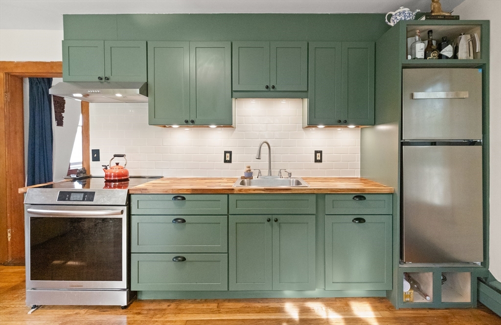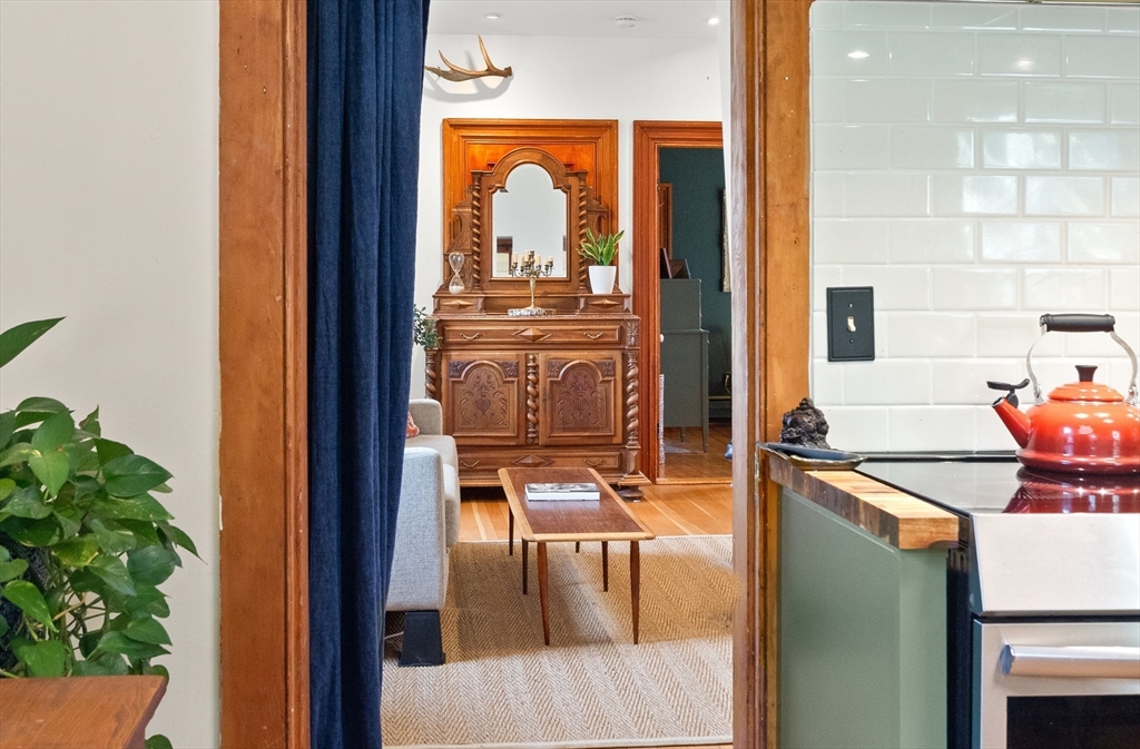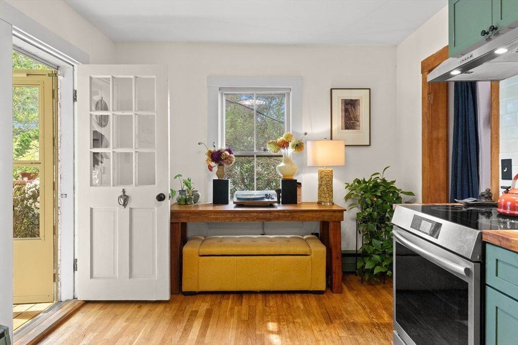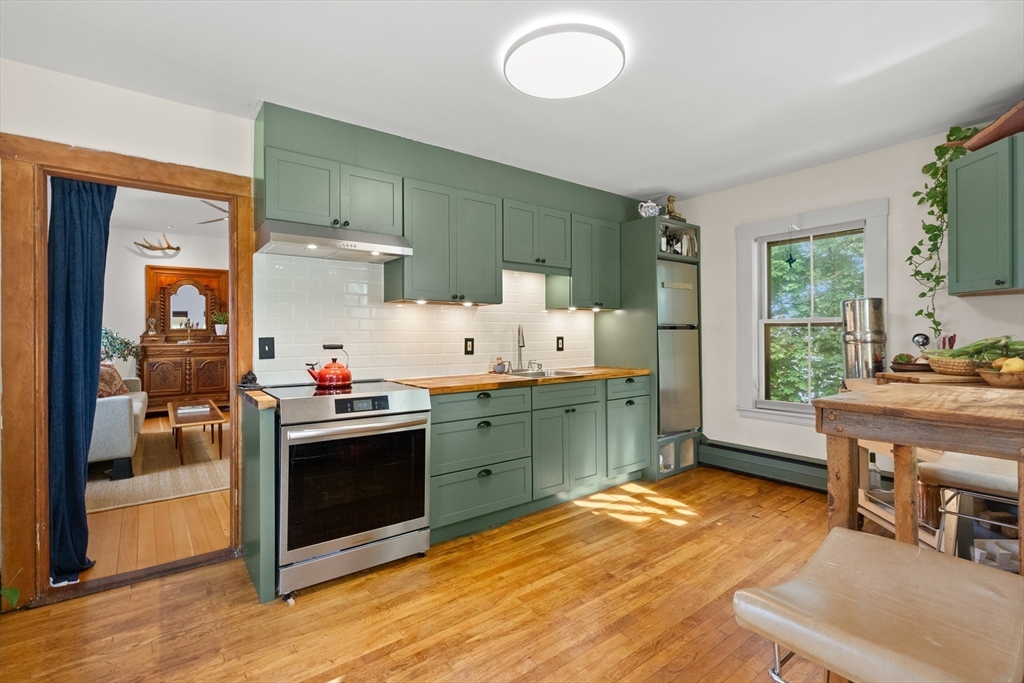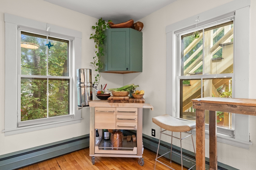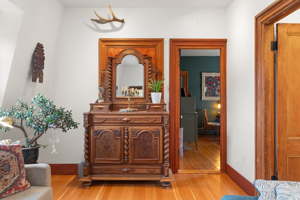 Iconic Queen Ann Victorian, converted into condos in 1995, has commanding views of Rockport Village and Sandy Bay. This second level unit features large oversized windows offering tons of natural light, beautiful wood flooring, original period details and soaring ceilings. The kitchen has been recently renovated with wood countertops and new stainless steel appliances and has a room for a breakfast bar or small table. The living room has wonderful natural lighting and beautiful hardwood floors. The bedroom is very spacious with a sizable closet. The full bath has been updated with a tiled bath and floor. This unit has its own private deck and access to a common third floor roof top deck with seasonal distant water views. The property is on a sizable lot with lots of yard space for relaxing or gardens. The exterior garden shed is shared by the association.Parking for 1 cars. You cannot beat the location! Only 1/2 mile to Rockport Village shops, restaurants & beaches. Don't miss out!