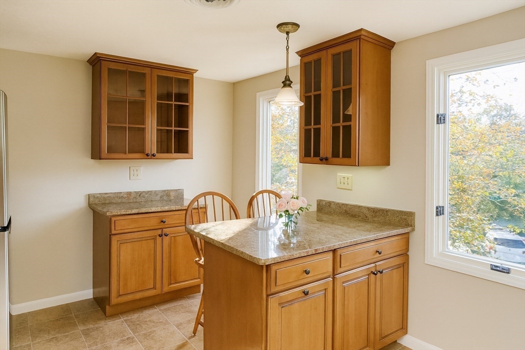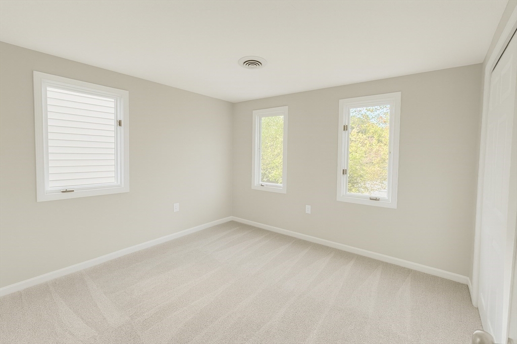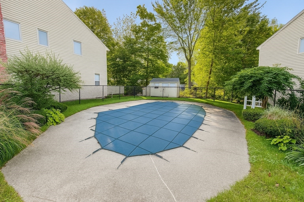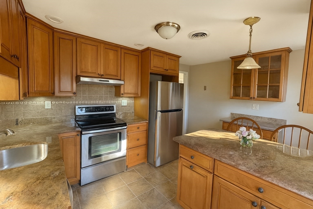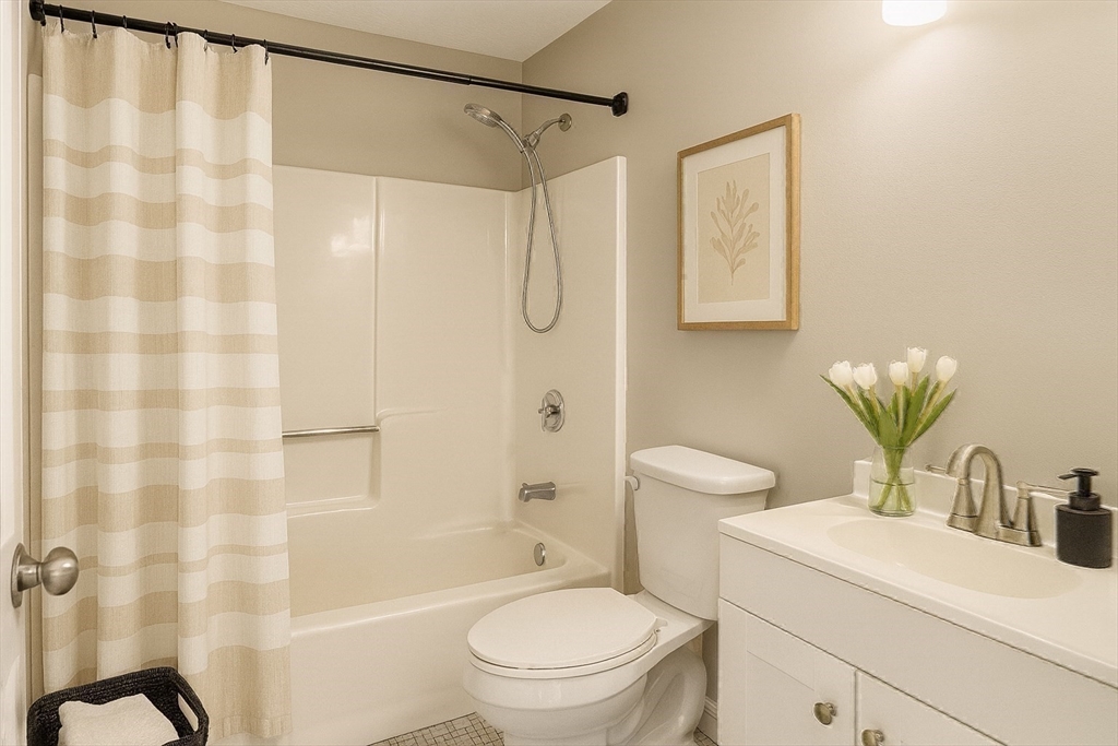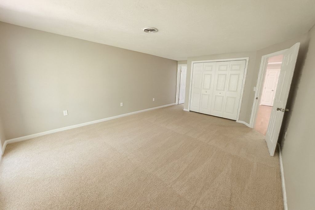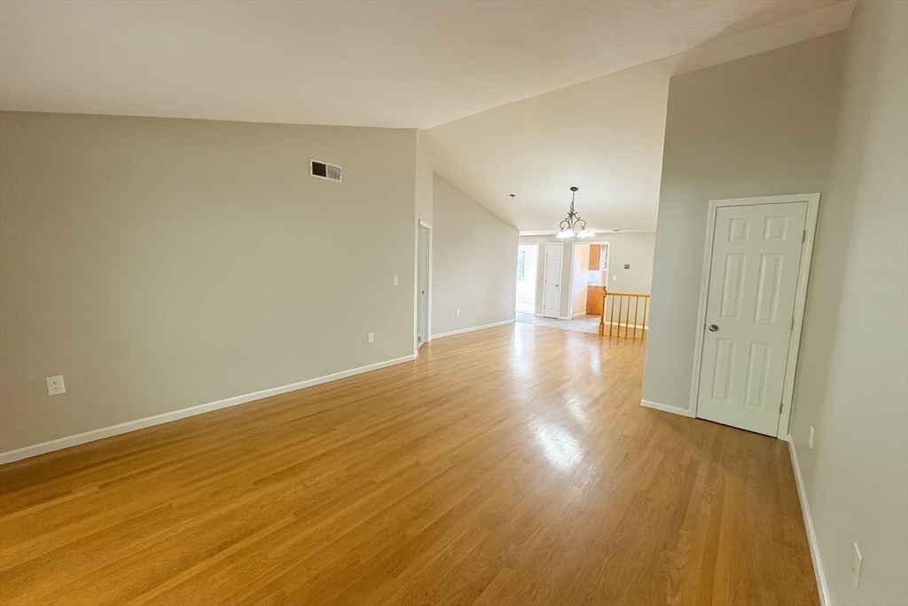 Welcome to 46 Union Square! This freshly painted 2-bedroom, 2-bath condo offers 1,056 sq. ft. of comfortable, move-in ready living. The open concept living and dining room features vaulted ceilings, hardwood floors, and sliders to a spacious 10x23 porch perfect for entertaining or relaxing. The updated kitchen is appointed with stainless steel appliances, granite countertops, recess lighting, bar-style under-cabinet lighting and a peninsula that serves as both a convenient eating area and added workspace. Brand-new carpet adds comfort to the bedrooms, including a generous primary suite with en-suite bath, ample closet space, and its own sliders opening to the porch. The second bedroom offers two closets, providing plenty of storage. Added conveniences include in-unit laundry, central A/C, extra basement storage 20x15 and assigned parking. Residents can also enjoy a community swimming pool. Ideally located just minutes from shopping, restaurants, commuter rail, and major highways.