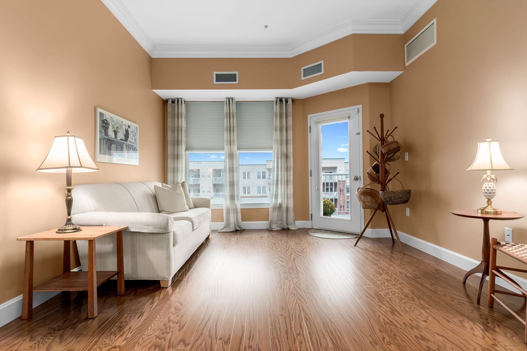 Welcome to your PENTHOUSE RETREAT, where soaring 10’ ceilings and deep crown molding create a sense of space and sophistication. Sunlight pours across HARDWOOD floors, softened by Hunter Douglas blinds, while a NEW storm door opens to your private balcony—perfect for morning coffee or evening unwinding. Primary suite is a true sanctuary with a SPA-INSPIRED BATH, generous WALK-IN CLOSET, and its own BALCONY access. A handsome cherry & GRANITE KITCHEN with STAINLESS appliances invites gatherings around good food and conversation. Life here extends far beyond your door. Take a dip in the POOL, relax in the HOT TUB, or stay active in the FITNESS CENTER. Meet neighbors in the function room or library, or enjoy evenings around the PATIO GRILLS. With UNDERGROUND PARKING and a PET-FRIENDLY community, convenience is built into every detail. Recent updates include a NEW GAS WATER HEATER (2023) and a GAS HVAC system (2020) This is more than a condo—IT'S A LIFESTYLE.