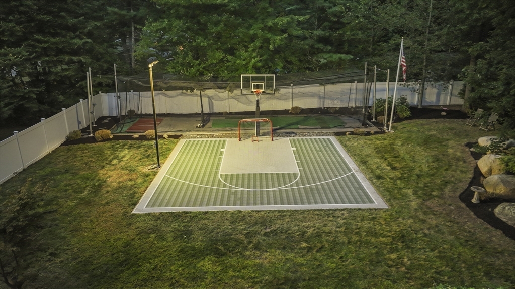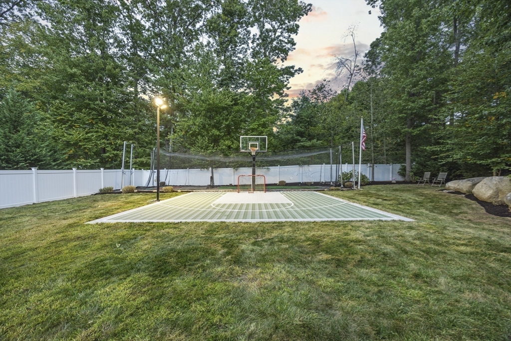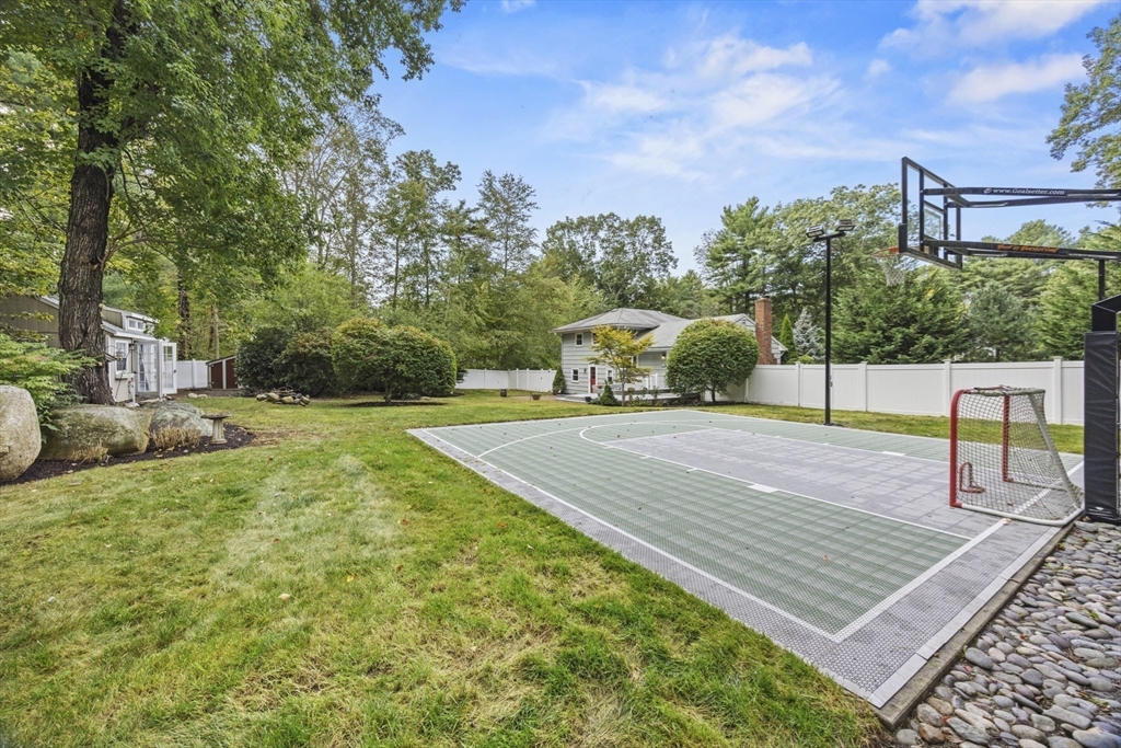 On a quiet cul-de-sac in North Hanover, 61 Deborah Road offers incredible amenities. The living room features a gas fireplace with herringbone marble, and a custom kitchen boasts high-end appliances, inset cabinetry, granite counters, built-in pet bowls, and ample storage. Upstairs are three bedrooms and a full bath. The finished lower levels include a media area, laundry, a Kaks basement system (mold-resistant flooring and walls), and a whole-house Humidex air circulation system. The backyard is built for entertaining with a sports court featuring custom sport court tiles for basketball, hockey & more, a full-size retractable hurricane-resistant batting cage, stadium lighting, a heated and insulated she shed/man cave, an additional storage shed, and a fenced yard. In the heated 2-car garage there is a generator hookup with Generac generator.