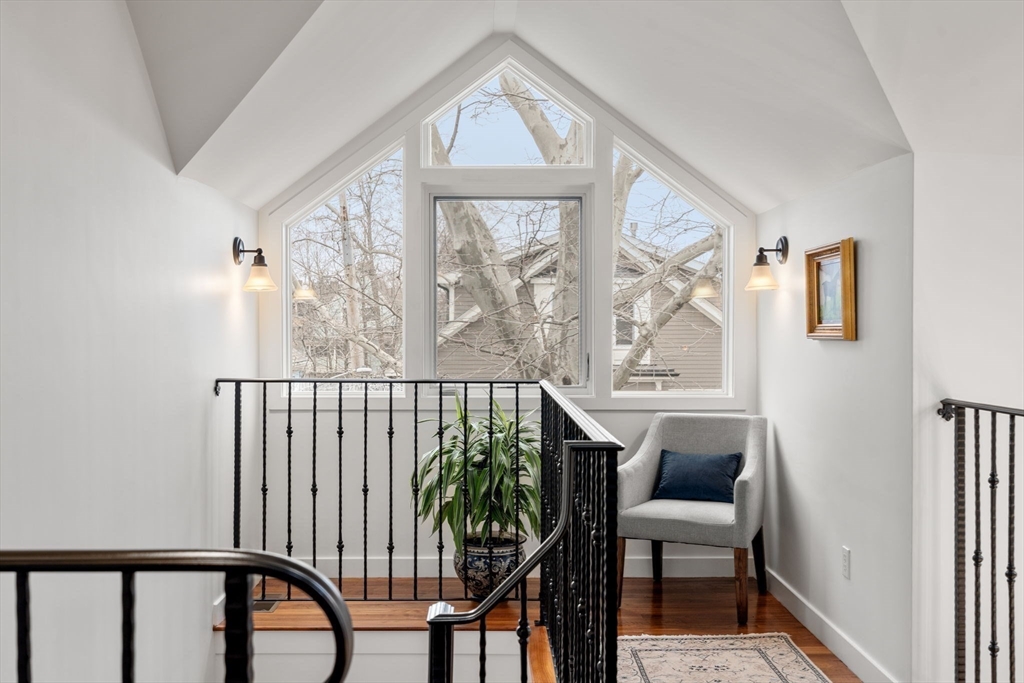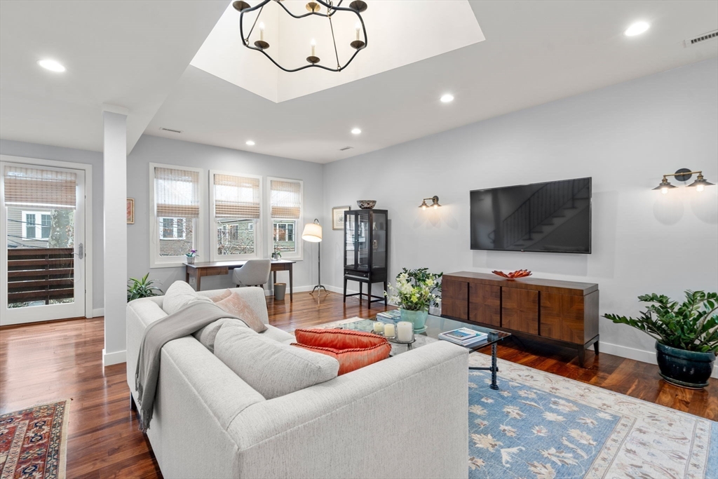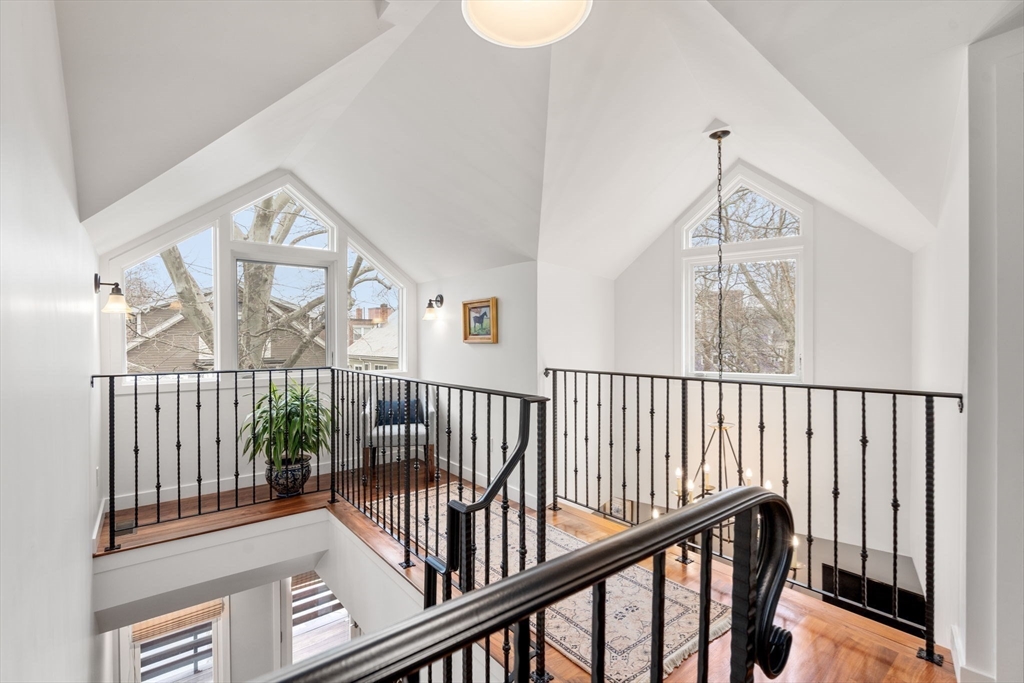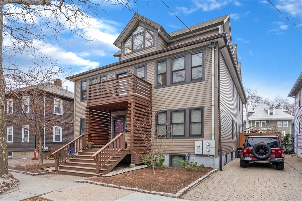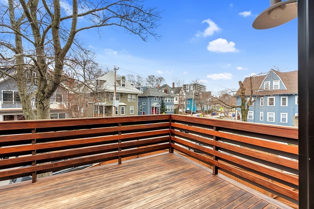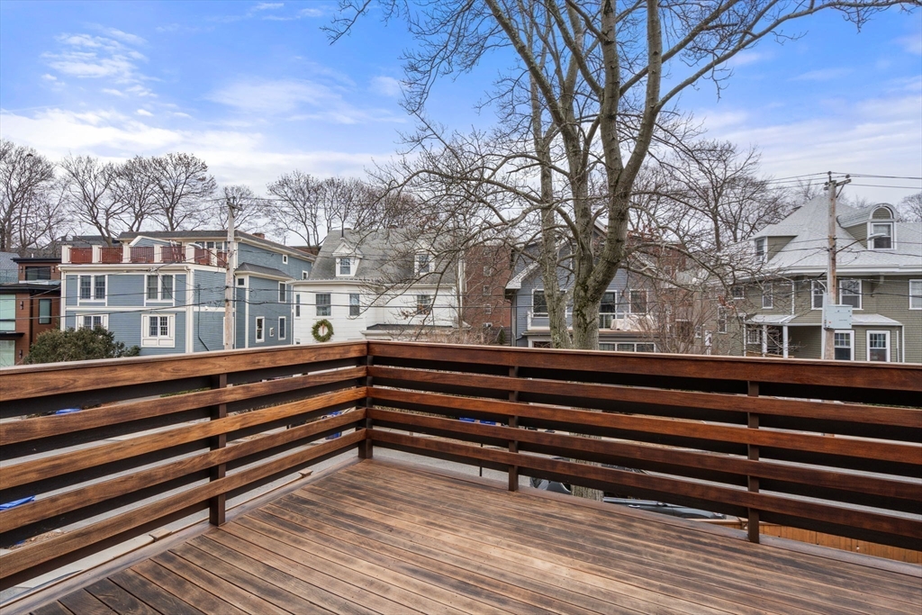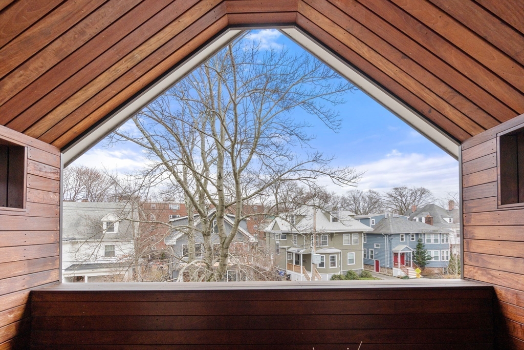 This beautiful top level condominium on historic Beals Street in Coolidge Corner is located in one of Brookline’s most coveted and convenient locations. The home is moments to shops, restaurants, the MFA, Fenway Park, Cambridge, Back Bay and the Charles River. This exquisitely renovated 5 bed/3 bath condo is drenched in natural light with soaring cathedral ceilings and fine craftsmanship throughout. The chef’s kitchen boasts Viking and LG appliances, an Italian granite island, and wine fridge, flowing seamlessly into expansive living and dining areas perfect for entertaining or relaxing with family and friends. The top-floor primary suite offers treetop views, spa bath with soaking tub, marble shower, heated floors, and custom walk-in closet. Three mahogany decks, 2 parking spaces, 2-zone central A/C, mudroom, and a finished lower level bonus room complete this rare offering with the space, style, comfort, convenience, and location buyers dream of.