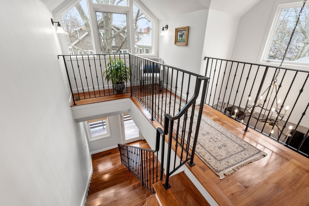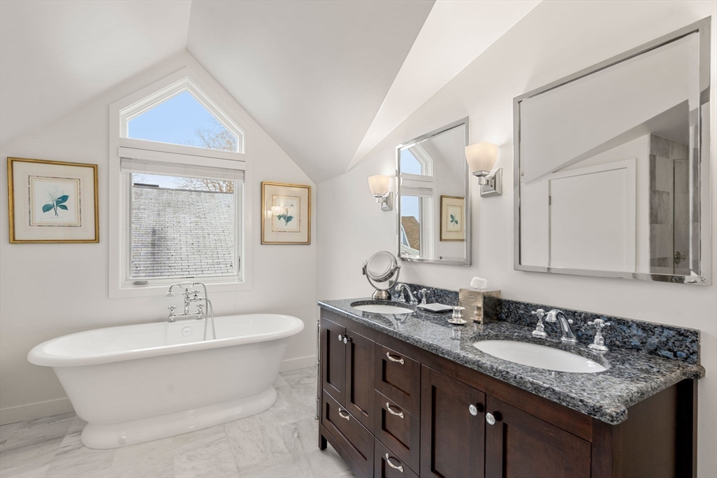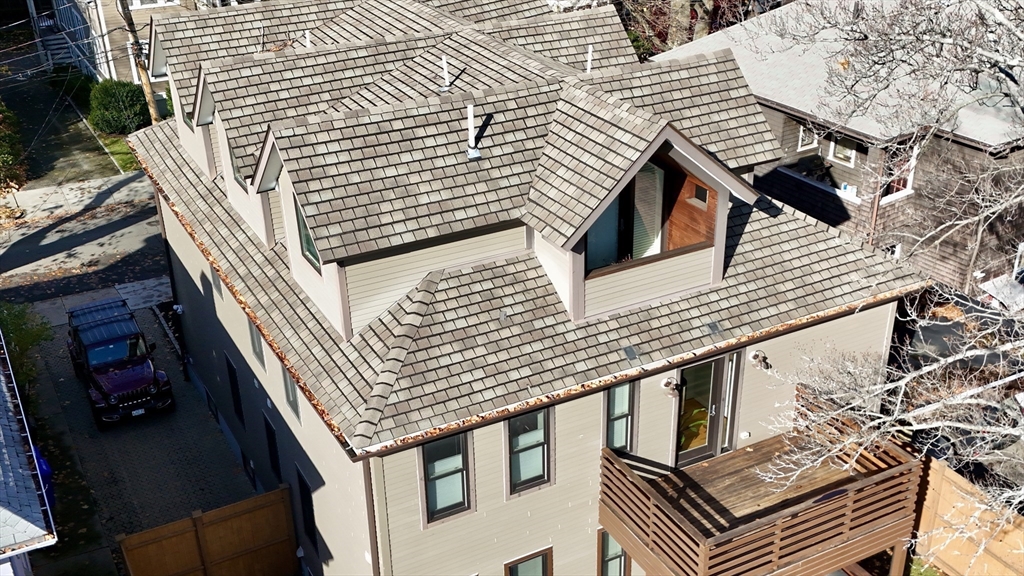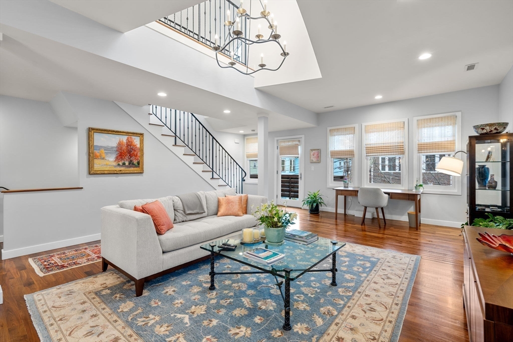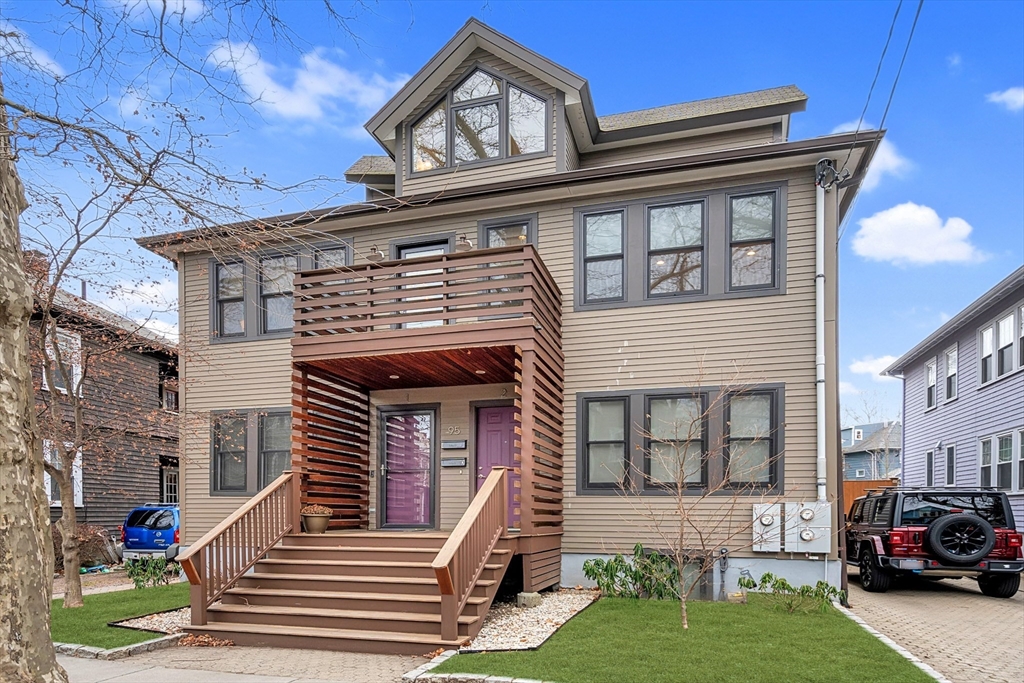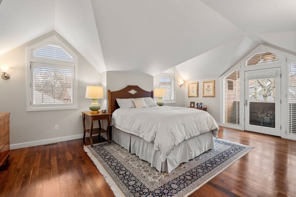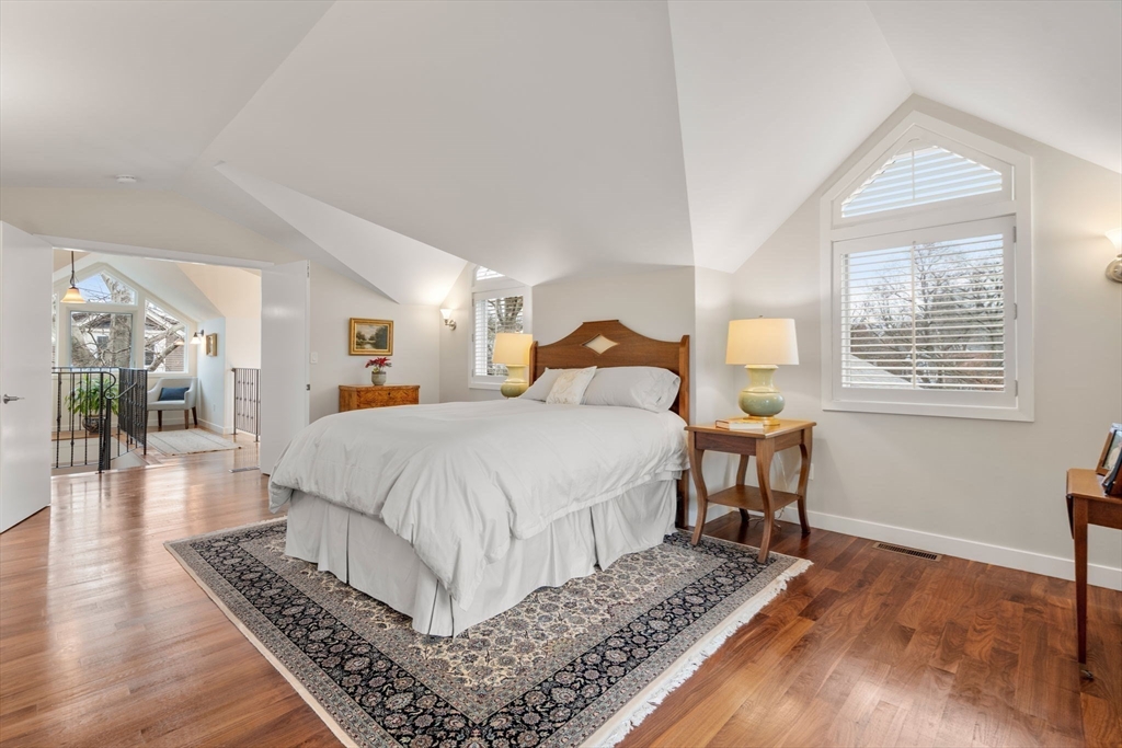 This beautiful top level condominium on historic Beals Street in Coolidge Corner is located in one of Brookline’s most coveted and convenient locations. The home is moments to shops, restaurants, the MFA, Fenway Park, Cambridge, Back Bay and the Charles River. This exquisitely renovated 5 bed/3 bath condo is drenched in natural light with soaring cathedral ceilings and fine craftsmanship throughout. The chef’s kitchen boasts Viking and LG appliances, an Italian granite island, and wine fridge, flowing seamlessly into expansive living and dining areas perfect for entertaining or relaxing with family and friends. The top-floor primary suite offers treetop views, spa bath with soaking tub, marble shower, heated floors, and custom walk-in closet. Three mahogany decks, 2 parking spaces, 2-zone central A/C, mudroom, and a finished lower level bonus room complete this rare offering with the space, style, comfort, convenience, and location buyers dream of.