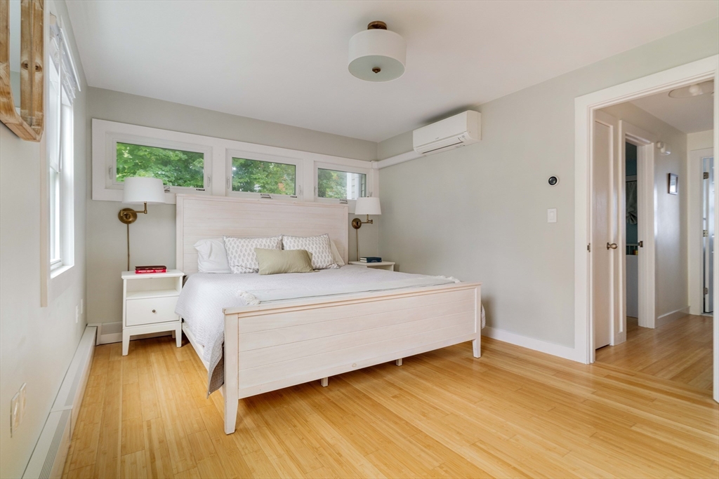Experience modern elegance in this beautifully renovated 3-level Cambridge condo that lives like a single-family home! Thoughtfully updated in 2022, this 1,371 sq ft residence features a sleek kitchen, chic half bath, new hardwood floors, a wood-burning fireplace, oversized windows with tranquil tree views, and direct access to a private fenced-in backyard. Upstairs offers 2 bedrooms and a full bath with in-unit laundry. The top level adds a versatile 3rd bedroom or office/studio with cathedral ceilings, skylights, a brand new full bath, and a coveted private roof deck. Additional perks include mini-splits for central cooling and supplemental heating, garage parking, and extra storage. Ideally located near Kendall, Central, Inman, and Union Squares, this home blends modern comfort with the vibrant charm of Cambridge living.