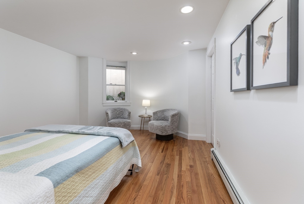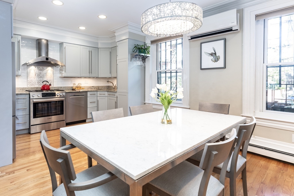 Welcome to Historic Concord Square, a jewel of the South End framed by lush gardens and two grand cast-iron fountains. From the front door of Number 33, beauty and charm greet you at every turn. Inside, elegance unfolds across two levels: a sun-splashed living/dining area with original marble mantle, a cozy library perfect as a home office, a chic powder room for guests, and a chef’s kitchen with new, premium appliances provide for effortless entertaining. The garden level offers a serene primary bedroom, large bath, guest bedroom with walk-in closet, in-unit laundry, and a bonus room used as a bedroom but which could easily serve as a nursery, or home office. Outdoors, a large, landscaped private patio is your retreat for morning coffee or evening cocktails, with convenient direct access to one parking space. Blending historic character with modern luxury, this rare offering delivers the ultimate South End lifestyle delivered with a low condo fee in a perfect location.