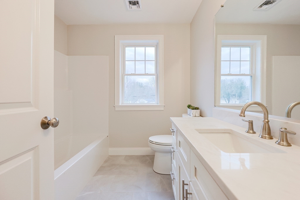 Stunning new construction colonial complete with 6 ft arborvitaes, a new lawn & plantings in the highly sought-after Old Post Road School District. Nestled at the end of a tree-lined side street, this magnificent 4 bedroom, 2.5 bath Colonial offers a flexible, open layout perfect for modern living. The airy front foyer with deep coat closet makes way to a cozy living room with gas fireplace and home office with privacy french doors. The heart of the home is the spectacular eat-in kitchen, featuring beautiful quartz countertops, white cabinetry, stainless steel appliances, and a breakfast bar. Second level has three generous bedrooms, a family bath and an oversized primary suite with gorgeous bath, large picture window and two walk-in closets. Additional highlights include a two-car garage, second-floor laundry, central vac & dual zones of heating and air conditioning. The spacious, unfinished basement provides ample storage as well as future expansion possibilities.