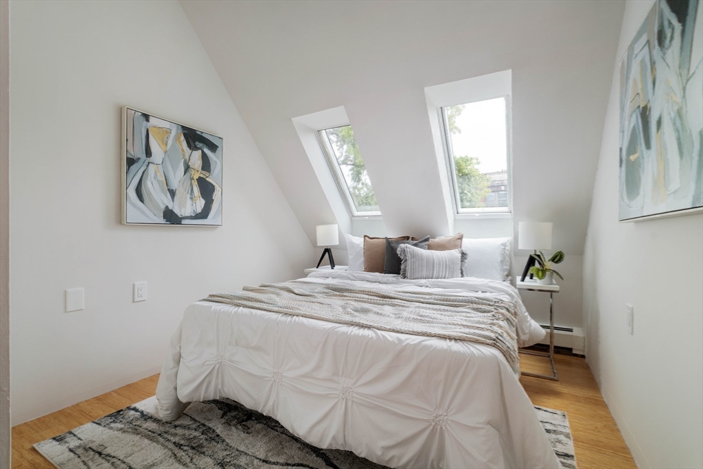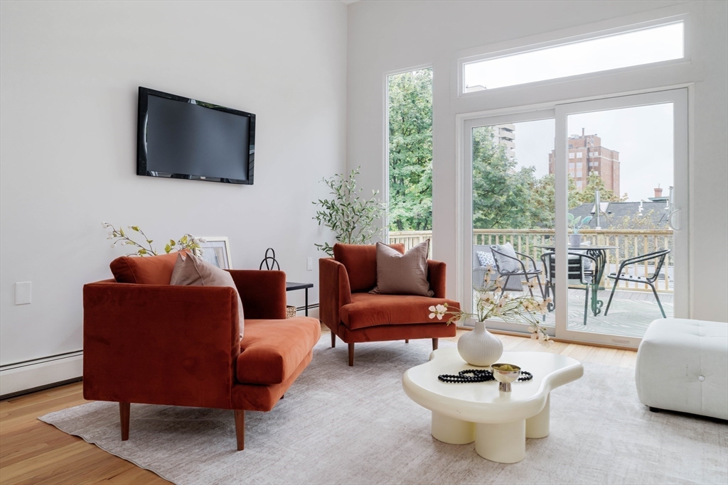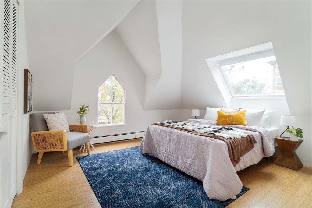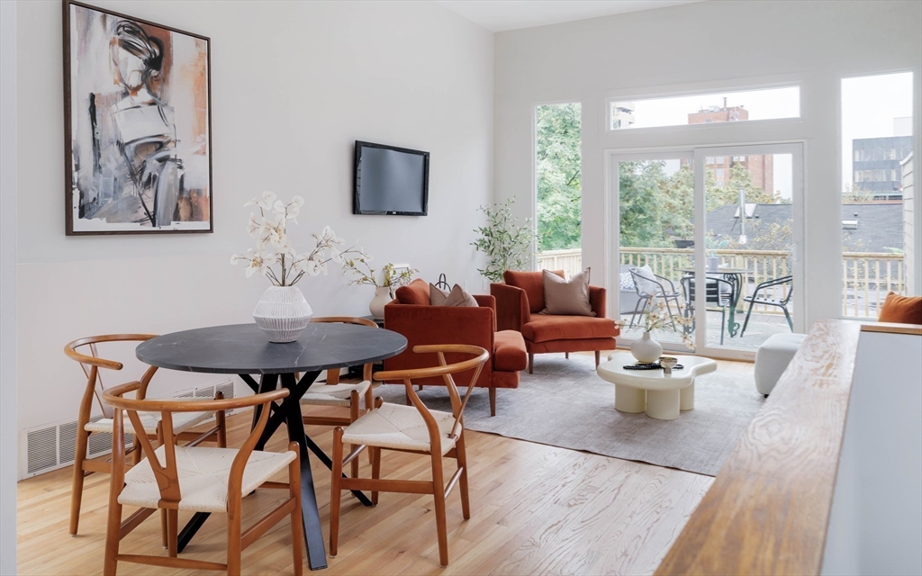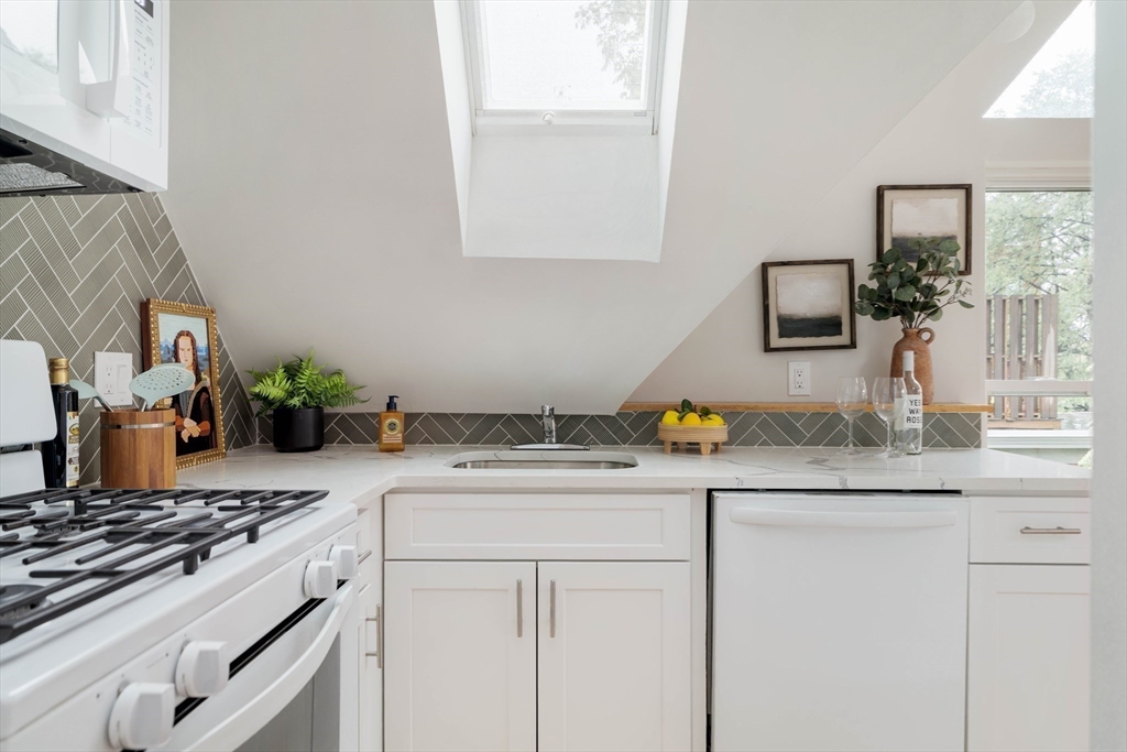 Welcome to 338 Harvard St, Unit 10! A unique and charming top-floor condo that captures the best of Cambridge living. This 2 bed, 1 bath home features hardwood floors, abundant natural light, and soaring cathedral ceilings. The open-concept layout includes a newly updated kitchen, perfect for effortless entertaining, while the refreshed bathroom, in-unit laundry closet, and two comfortable bedrooms complete the interior offering. Step through glass sliding doors to your private roof deck, where sweeping Cambridge skyline views set the stage for relaxation. Additional perks include a garage parking space, a common storage room, a community patio and yard, and a sophisticated common living room with shared kitchen, and 2 shared guest rooms. Ideally located near Harvard Square and Central Square MBTA stops, you’ll enjoy easy access to renowned shops, museums, cafés, and restaurants.