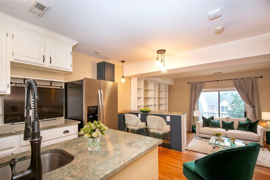 This remarkable condo is located in the desirable Arbor Hill Condominium Community. This condo has many desirable features, such as white painted kitchen cabinets, subway tile backsplash, granite counters, additional custom built in cabinets in the dining room area, an open floor plan, hardwood floors throughout, balcony off the sunken living room and multiple closet spaces throughout the unit. The living room is a generous size and has removable bookshelves as well. The master bedroom has two closets both with custom closet systems, and a newer washer / dryer unit. There is also an outdoor storage closet conveniently located on the private balcony. The complex offers many amenities, such as an inground pool and clubhouse. The refrigerator and newer washer/dryer are included in the sale. The hot water tank is one year old. This property is easy to show. The photos are virtually staged.