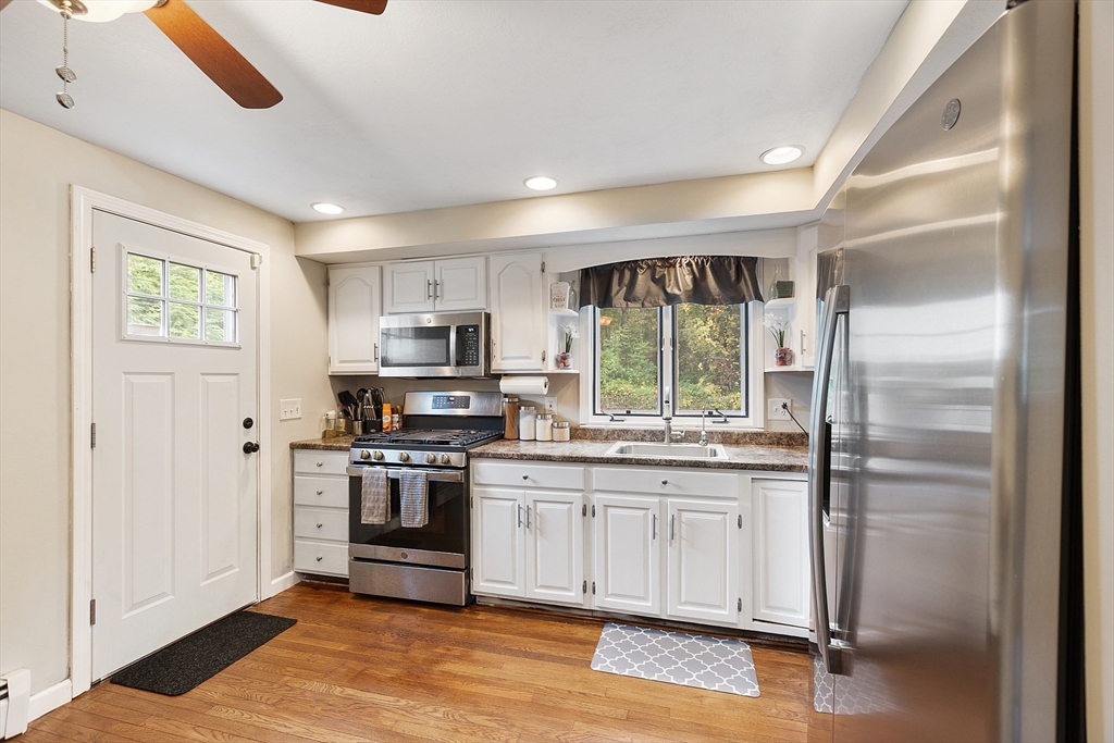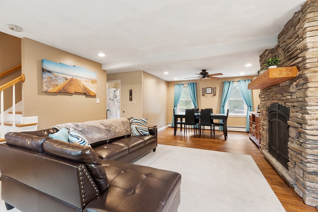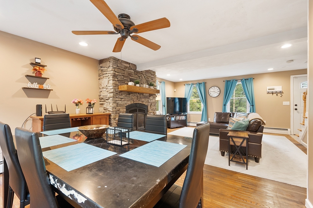 Welcome home to this charming Cape set back from the road yet close to local amenities. The first floor features an open dining and living room with an impressive stone gas fireplace, a bonus room/office off the kitchen, and a full bath with a new vanity and flooring(2022).Upstairs offers two generous bedrooms, one with new carpeting (2023), and another full bath. The lower level includes a partially finished basement for additional living space. Outside, enjoy a large fenced yard and a 15x25 deck (2017) recently sealed. Updates include refinished first-floor hardwoods (2022), new first-floor bath vanity and flooring, Navien furnace with tankless hot water heater (2019), radon pump (2021), well pump and water softener (2020). This well-maintained home offers modern updates, flexible spaces, and a wonderful yard ready for you to move right in! Don't miss out on this property. Open house, Saturday October 4th, 1pm-3pm.