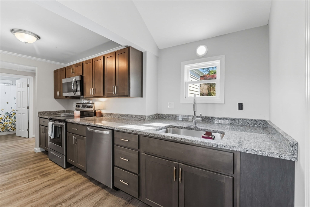 This move-in ready 2–3 bedroom, 1.5 bath home offers the ease of one-level living with a thoughtful layout and stylish finishes throughout. Hardwood and luxury vinyl tile floors create a warm, durable foundation, while the modern kitchen boasts soft-close cabinets and drawers, granite countertops, and stainless steel appliances. The room that is currently used as the primary suite features a cozy fireplace, half bath, and stackable washer/dryer. The two other bedrooms have hardwood floors and full size closets. The full bath features a full size tub providing additional functionality. There is a semi finished attic for ample storage and possible expansion. Recent updates include a roof and septic system just 3 years old, giving peace of mind for years to come. Enjoy neighborhood public water access within walking distance, perfect for outdoor enjoyment, and take advantage of the home’s convenient location near shopping, highways, and local recreation.