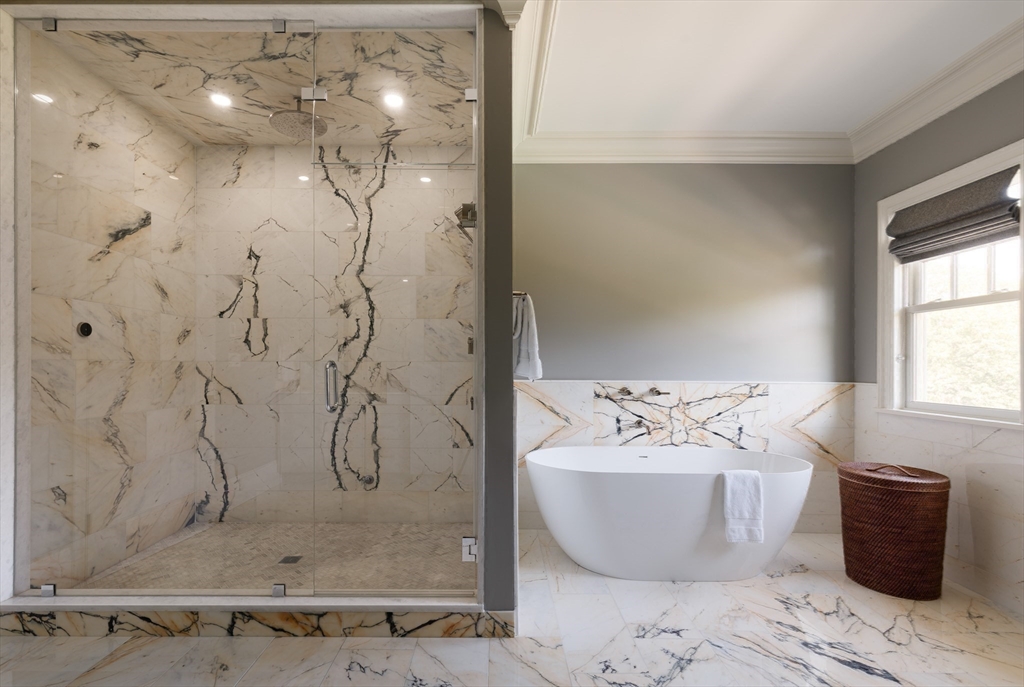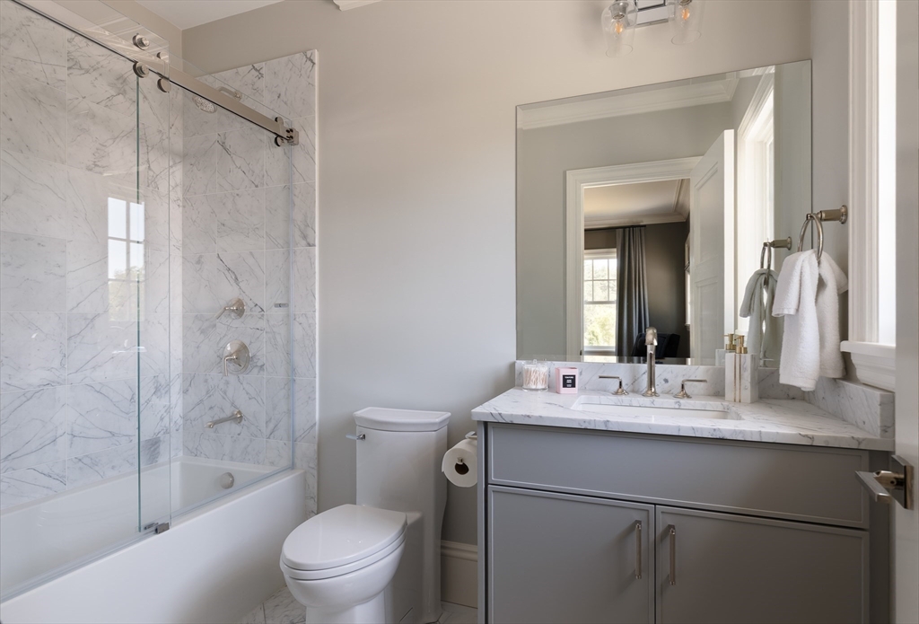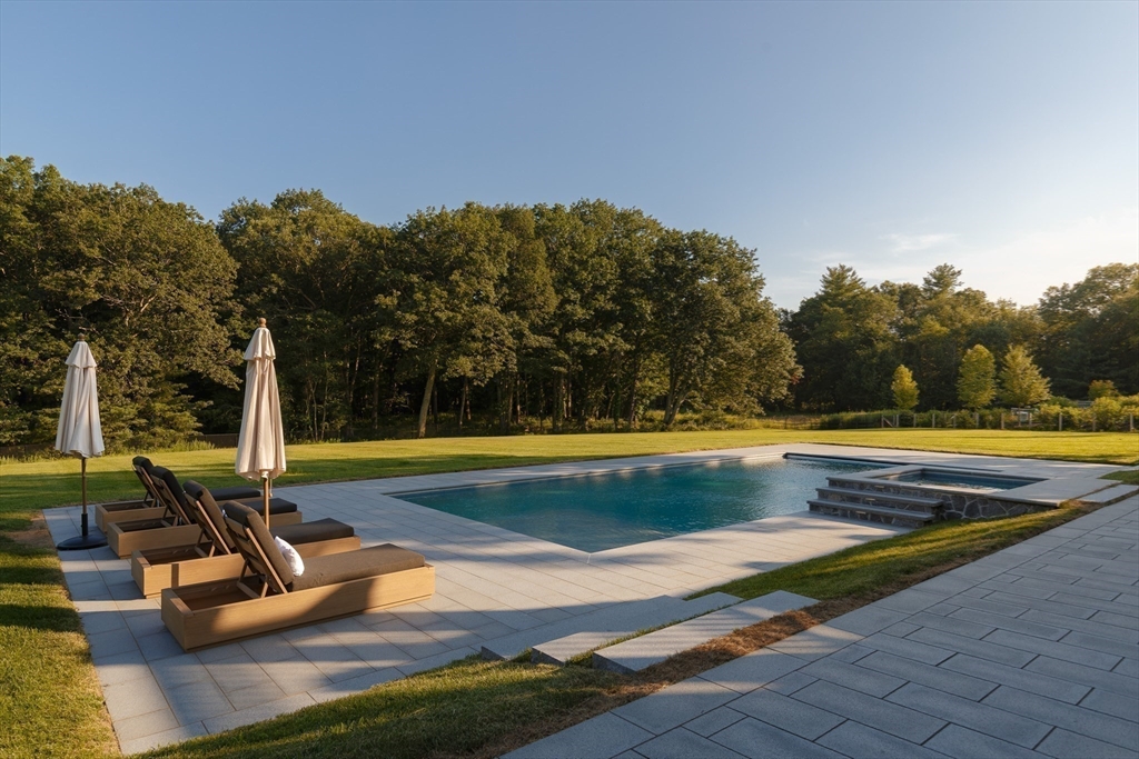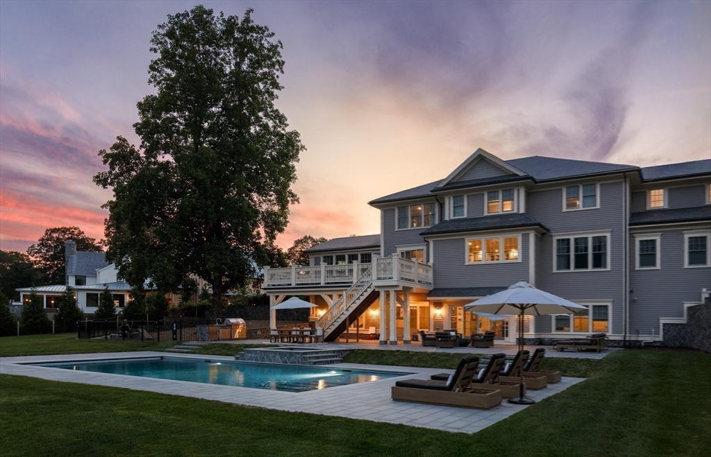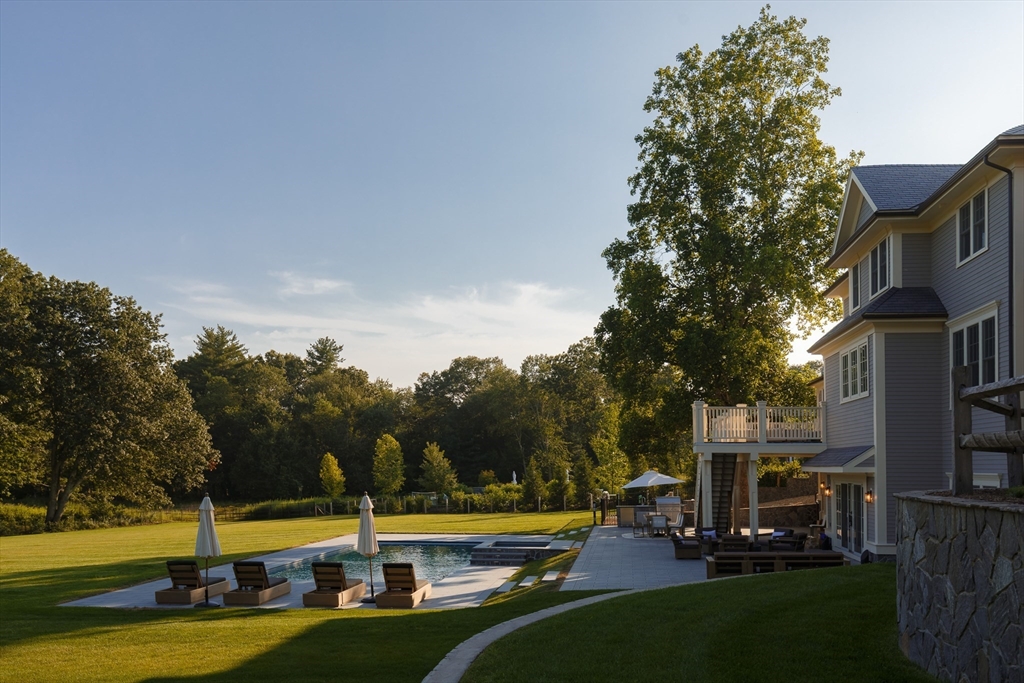 The Crown Jewel of Needham. Stunning custom home on 7 acres abutting the Charles River with natural light, designer finishes, and picturesque views across 3 levels. Ground-up construction in 2023, this home offers a gourmet kitchen that boasts an oversized imported marble island, dual pantries, and a separate breakfast room opening to a deck overlooking the expansive backyard. Features include 6 en-suite bedrooms with radiant heat floors, a luxurious primary suite with a fireplace, spa bath & walk-in closet, plus a sunroom, 3 fireplaces, a wet bar, and a first-floor bedroom. The above-grade walkout lower level (9ft+ ceilings) offers a golf simulator, wine cellar/tasting room, bar, home theater, and guest suite. Outdoor amenities include a custom pool, hot tub, outfitted patio, and direct river access for kayaking or fishing. Heated 3-car garage with EV charger. Convenient to town, train, airport & highways. This rare property blends luxury, lifestyle, and location in a premier Needham