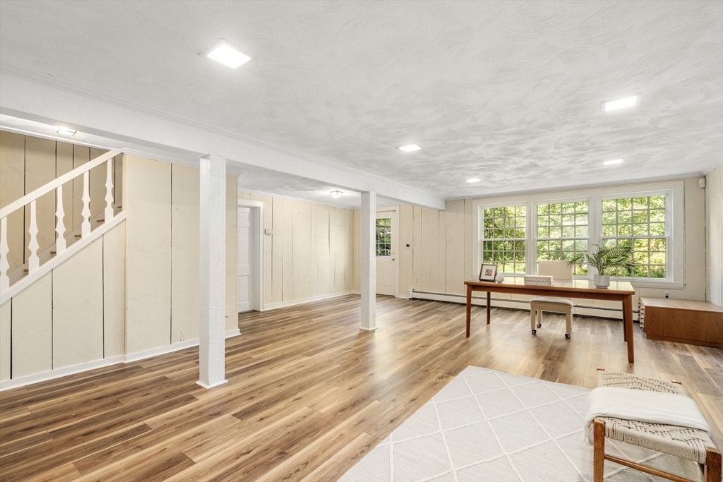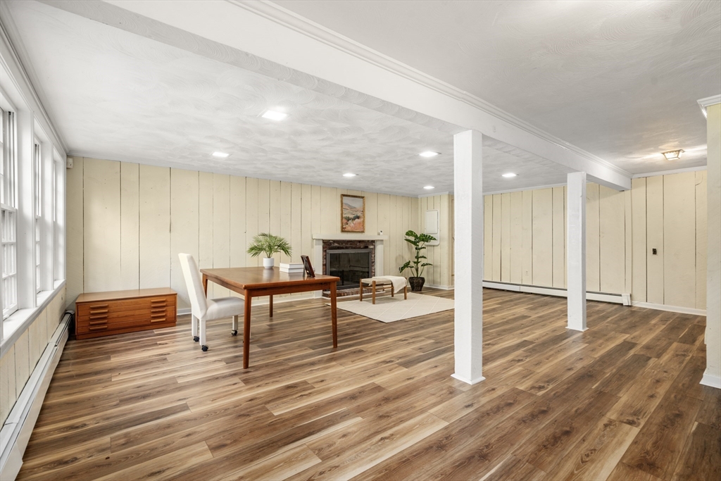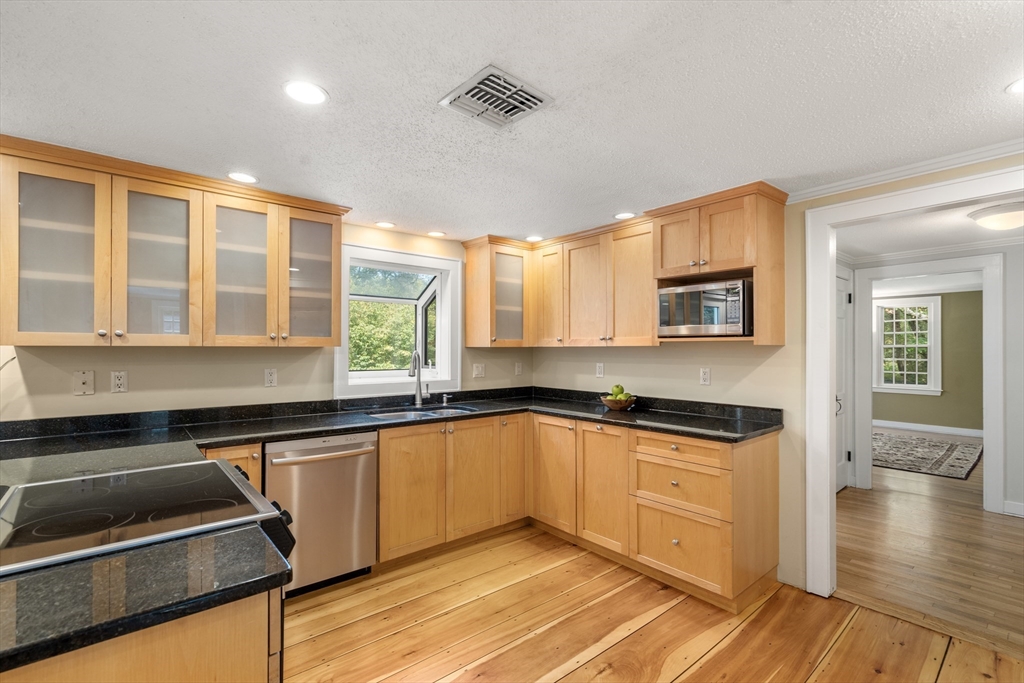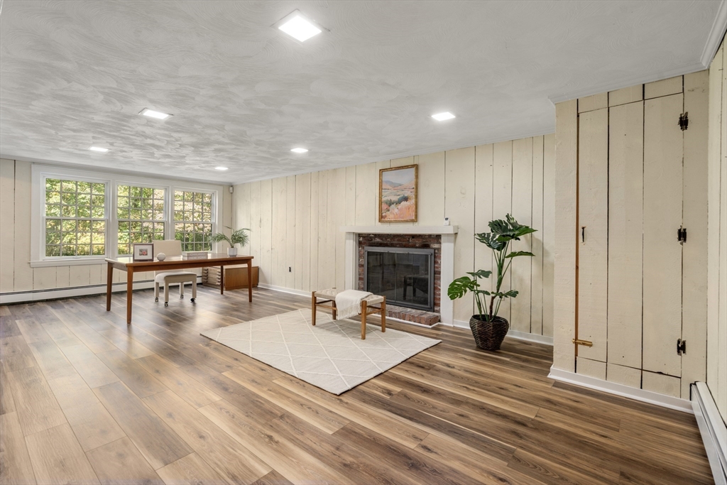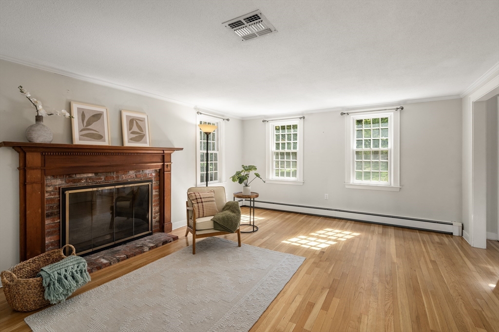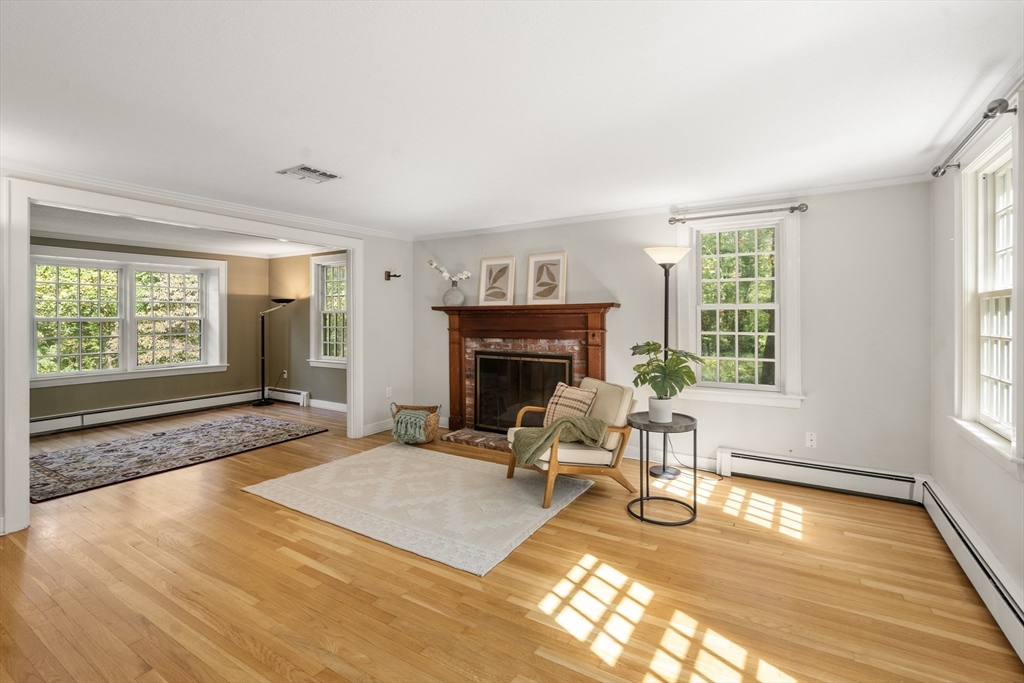 Set back on scenic Willis Road in North Sudbury, this Creighton Hamill-built home offers space, charm, and privacy—perfect for family living. The first floor features a renovated kitchen with wide pine floors, granite counters, an island and s/s appliances—open to a warm family room with fireplace and French doors to the backyard. A formal dining room, living room, and office complete the main level. Upstairs has hardwood floors throughout, four bedrooms including a spacious primary suite with fireplace and private bath, plus a hall bath. Walk-up attic offers future expansion. The sun-filled walk-out basement includes a playroom, and second office. The backyard is ideal for families—flat and grassy with a stone patio, room for a swing set, sports, outdoor dining, and fire pit gatherings. Updates: exterior paint (2024), oil tank (2023), hot water tank (2023), roof (2009), central AC, 200-amp electrical. Minutes to commuter rail, Rt. 2, shopping and award winning Haynes Elementary School