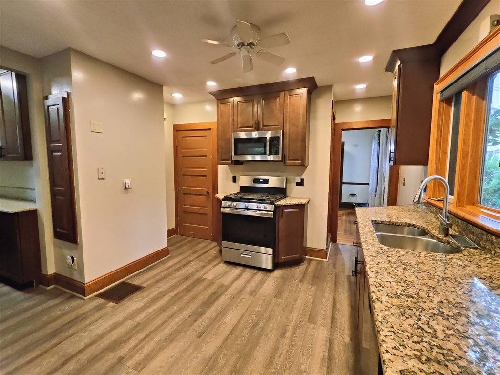 A spacious 5-bedroom Colonial tucked away on a quiet street in Norwood. This beautifully updated home features high ceilings, oversized windows, and freshly refinished hardwood floors. Over the past two years, major upgrades have been completed, including new siding, a new roof, two new HVAC systems, and fully renovated kitchen and bathrooms, along with the addition of a new pantry. The large primary bedroom offers two custom walk-in closets, while the updated kitchen showcases granite countertops and two pantries. Additional highlights include two modern full baths, central A/C, a washer and dryer, and a generous driveway that accommodates up to 6 cars. Enjoy outdoor living on the private back deck and patio area, perfect for relaxing or entertaining. Ideally located just minutes from Norwood Center’s shops, dining, and theatre, with nearby access to the Commuter Rail and MBTA bus, this home combines comfort, convenience, and style - all ready for you to move right in.