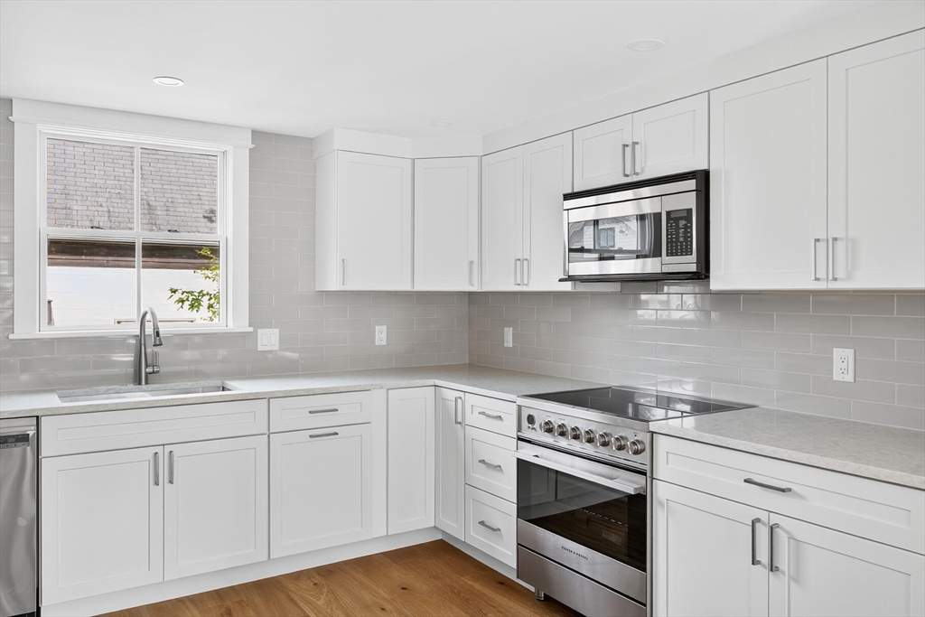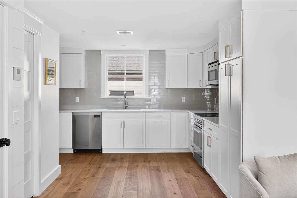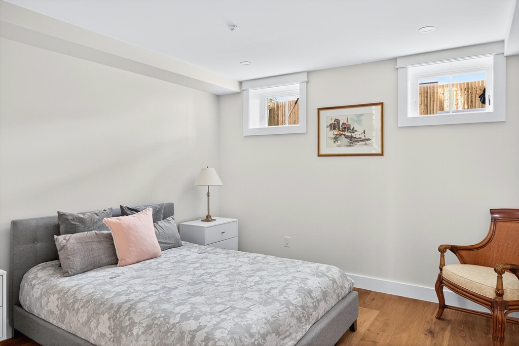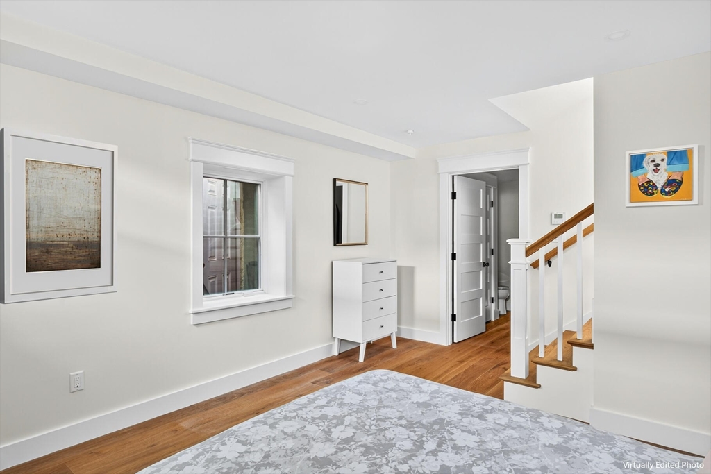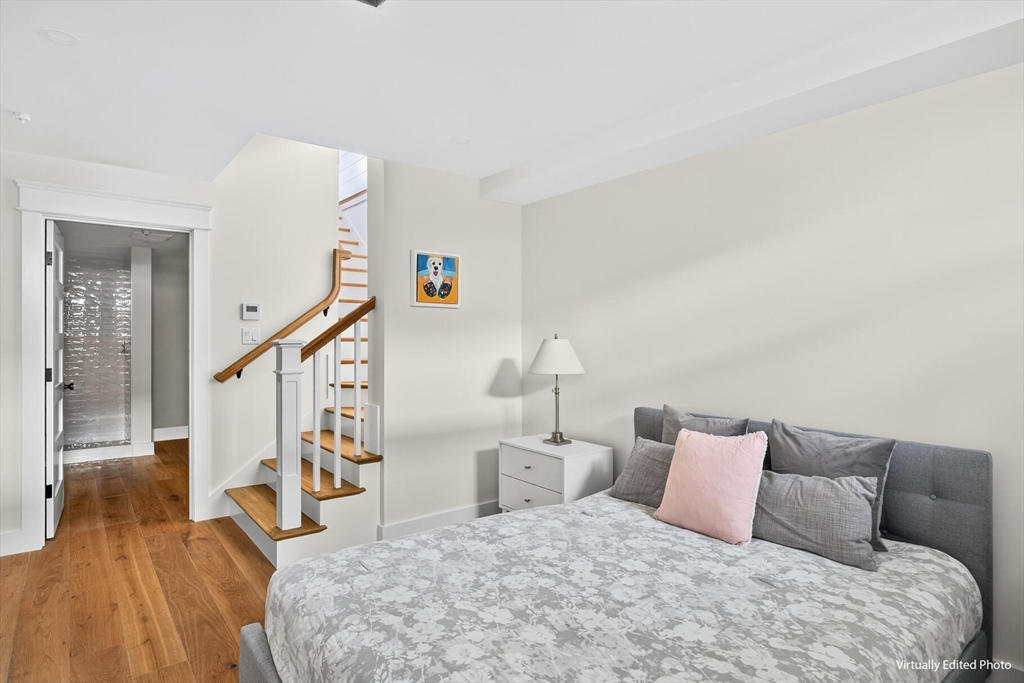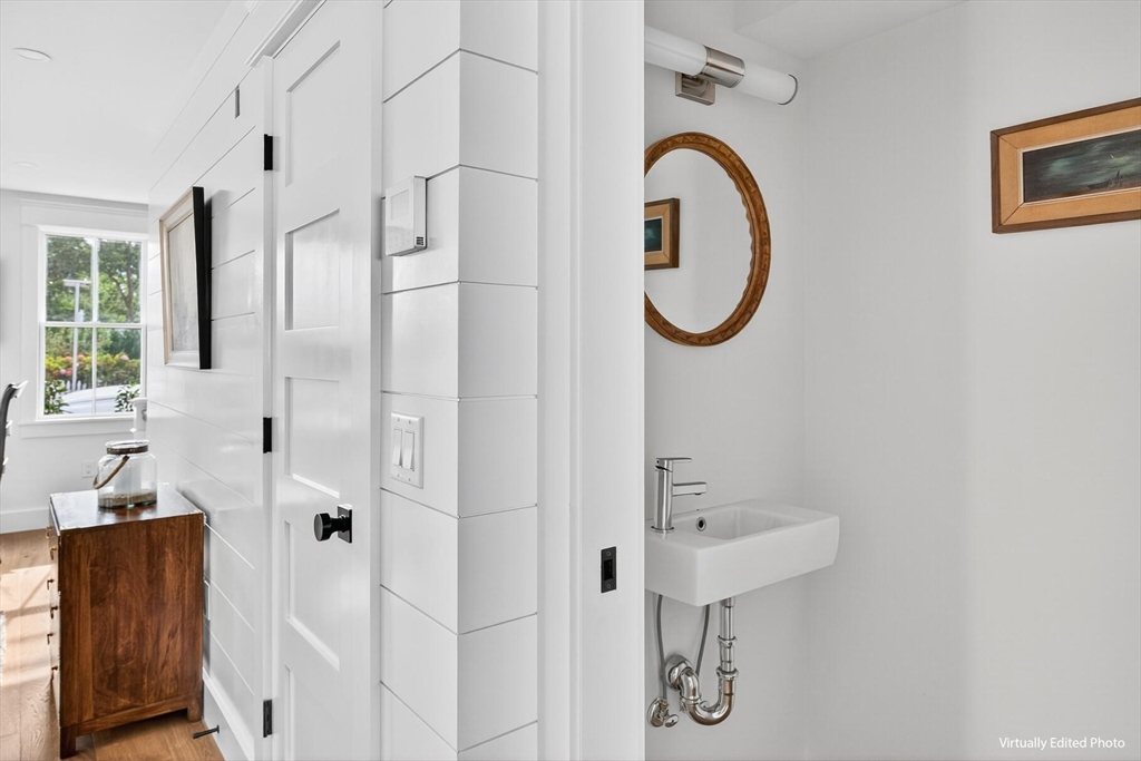 Rooted in Provincetown's history yet newly reimagined, this townhouse residence is part of a new four-unit association created from a late 19th-century Bradford Street landmark. Unit 2 offers 772± sq. ft. across two thoughtfully designed levels, blending period charm with modern convenience. The main floor is anchored by a light-filled alcove wrapped in windows, an inviting spot that flows into the living area and kitchen. Here, quartz counters, custom cabinetry, Fisher & Paykel appliances, and a subway tile backsplash create a polished setting, complemented by a half bath. Sawyer Mason wide-plank floors extend throughout, adding warmth and continuity. The sleeping level features high ceilings, a bedroom suite with a custom tiled walk-in shower, double vanity, and arched mirrors, along with full-size LG laundry. Exclusive outdoor space, one-car parking, weekly rentals, and pets for owners permitted. Buyer to assume annual betterment.