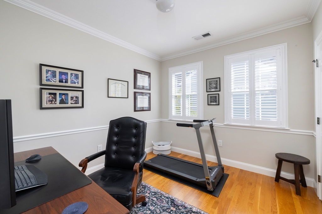 Exquisite, Chapman's Reach, three bedroom condominium at Marina Bay. Flawless condition, professional interior design with traditional coastal, theme throughout! Impeccable renovation with custom millwork and lighting package, satin, finish hardwood flooring and plantation shutters! Expansive 2314 square foot, single floor, layout affords magnificent, entertaining space. Gourmet, eat in kitchen with large island and walk out deck. Large corner living/ dining room overlooks Center Park! Added features; large, fireplaced family room. Elegant primary suite with Center Park views, custom walkin closets and exquisite primary bath with double vanity. Second, large bedroom, adjacent bath and third bedroom accomodate extended family and guests! laundry room, large, finished, walkup attic and Double Attached Garage. Fully updated heating, A/C & hot water systems, as well! Do Not Miss This Compelling, single family alternative!!! Accompanied showings begin 10.02.25, 24 hour notice required.