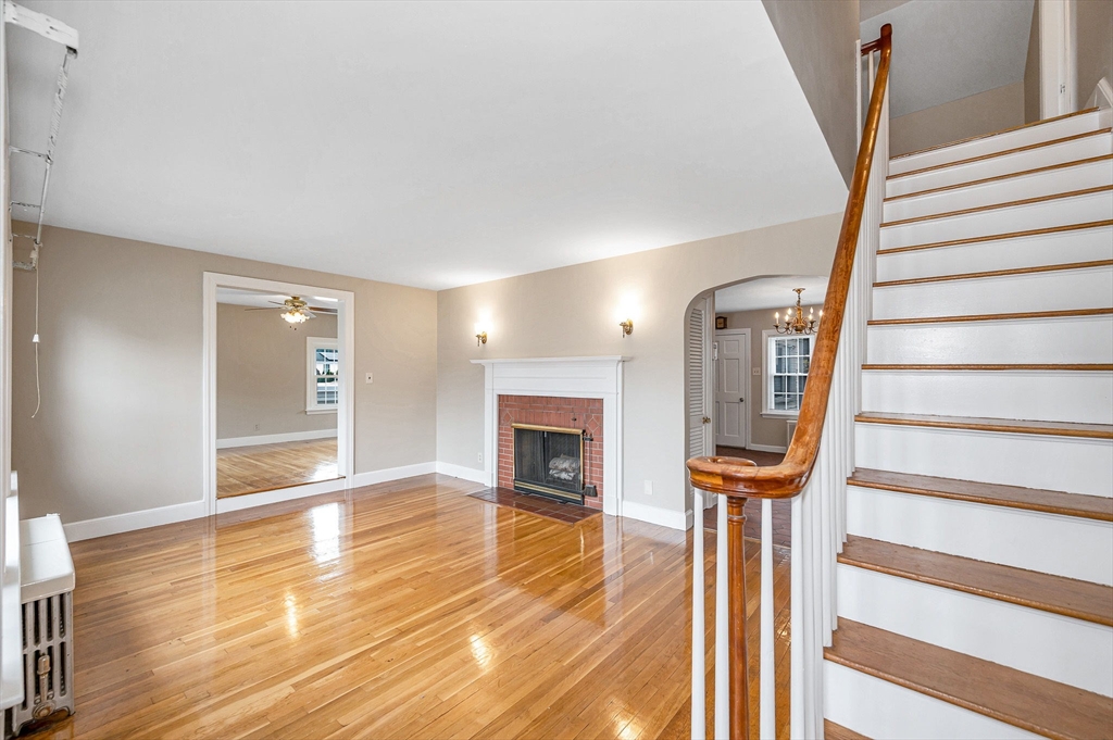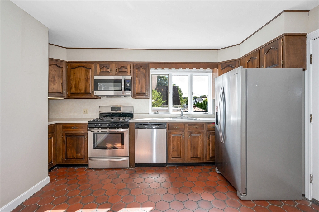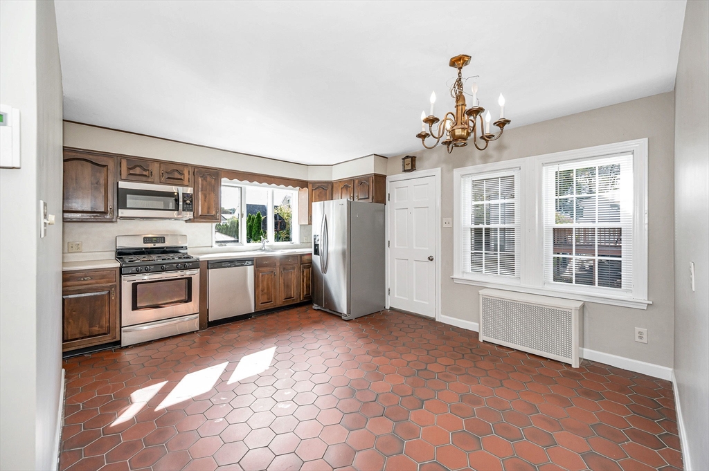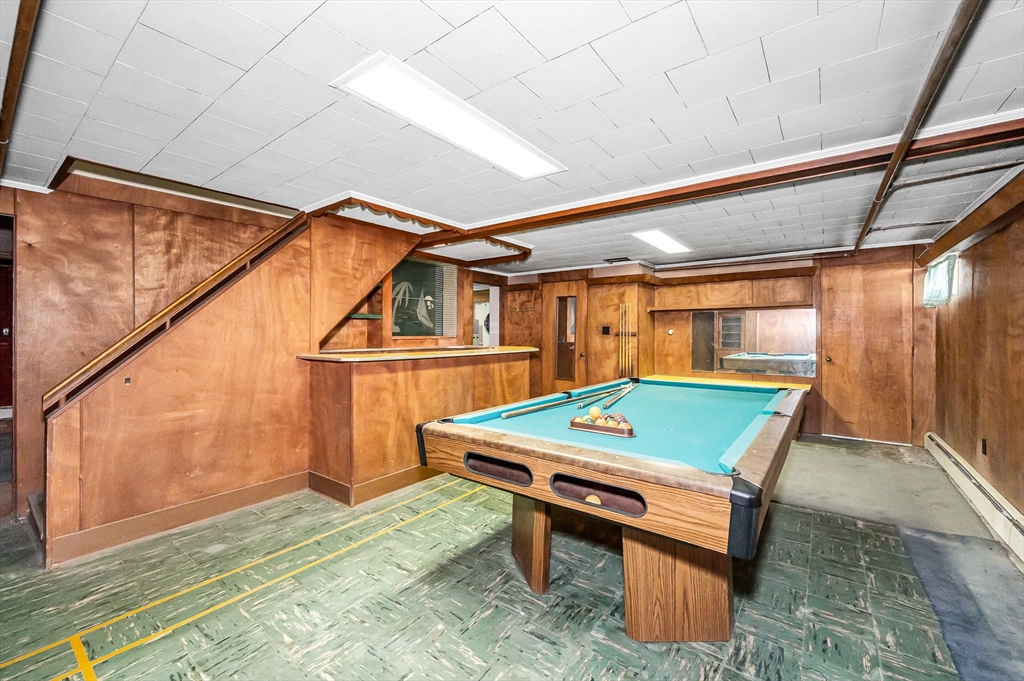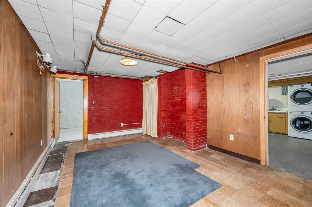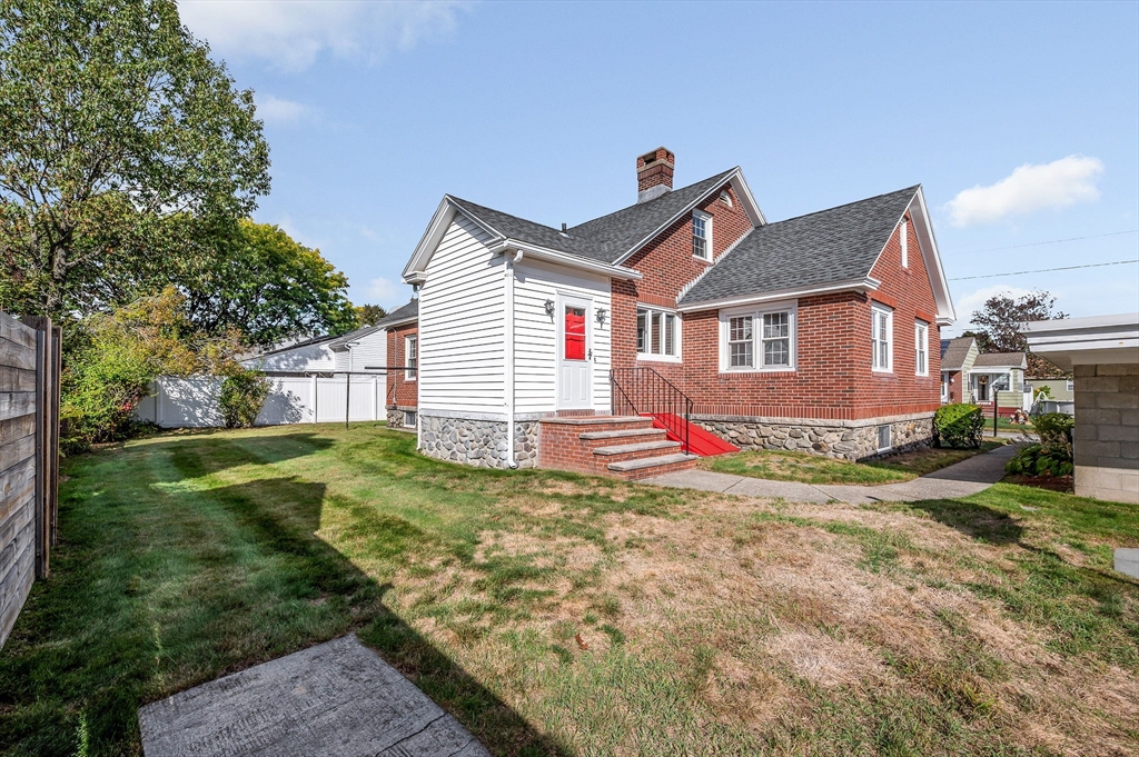 Classic and stately, maintenance free brick and vinyl Cape in convenient East Methuen location to shopping, highways and schools on a dead end. Large 4 bedroom cape with versatile layout and a heated finished lower level. First floor has a large and bright family room and living room with fireplace open to kitchen that offers a tiled floor, good cabinet space, large dining area and stainless steel cabinets. The first floor also includes mud rooms from the back and front entrances with closets, a full bath with separate tub and shower and two bedrooms. The second floor offers two large bedrooms both with good closet space and hardwood floors. The basement offers great additional space with a gameroom with a dry bar, a bonus room that would be a great office a 3/4 tiled bath and a utility room cabinets, a sink and laundry. Other features are newer roof, windows and boiler, freshly painted throughout, loads of storage, detached two car garage, a flagstone patio and private yard.