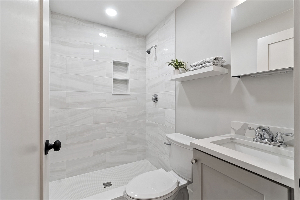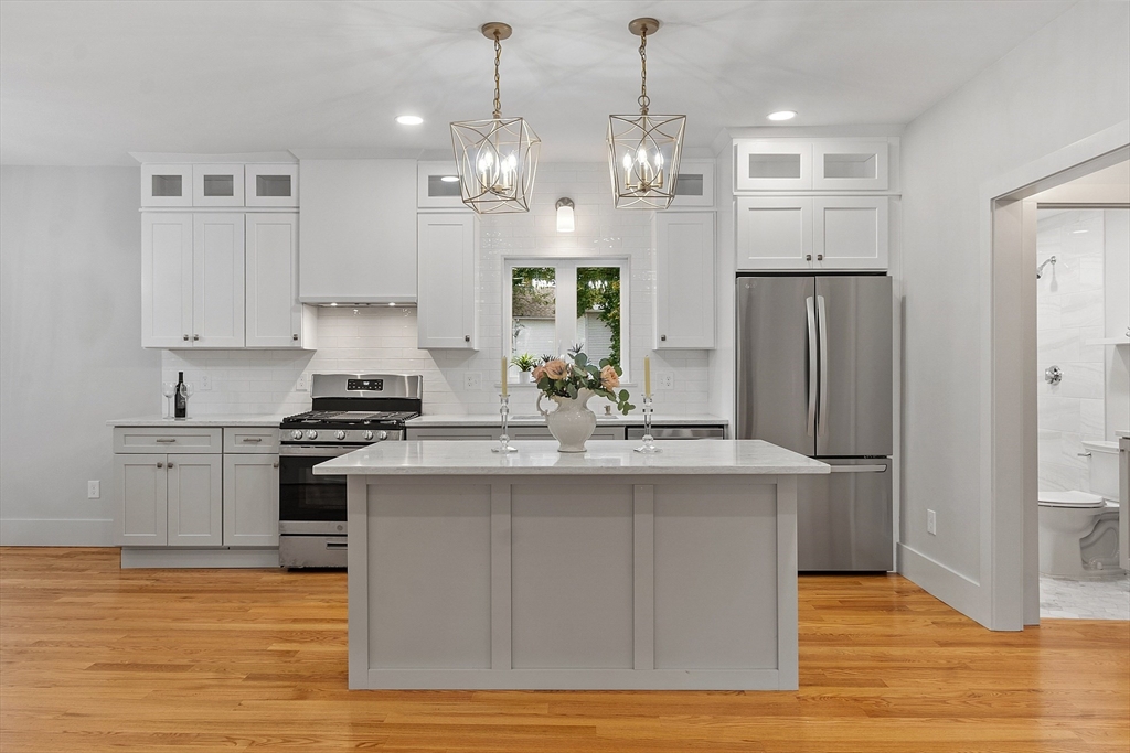 Stunning fully renovated 4 BR/3BA home in Malden's sought-after Maplewood neighborhood! The first floor features a bedroom, full bath with walk-in shower, and a new washer and dryer. Enjoy a gorgeous new kitchen with quartz countertops, ENERGY STAR appliances, modern finishes, a cozy gas fireplace and warm lighting. The finished basement with private entrance and full bath offers a flexible living space or in-law potential. Additional updates include gleaming new oak floors, all new windows/doors and a new HVAC system. Outside, relax in the huge private fenced backyard and take advantage of the newly paved driveway w/ parking for up to 8 cars. Convenient to public transportation, schools, Mystic Valley Charter School, bike paths Trafton Park and shops. MOVE-IN READY - DON'T MISS THIS AMAZING HOME!OPEN HOUSES SAT 10/4 11-1 , SUN 10/5 12-1:30
