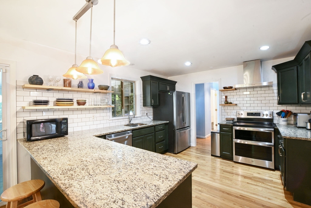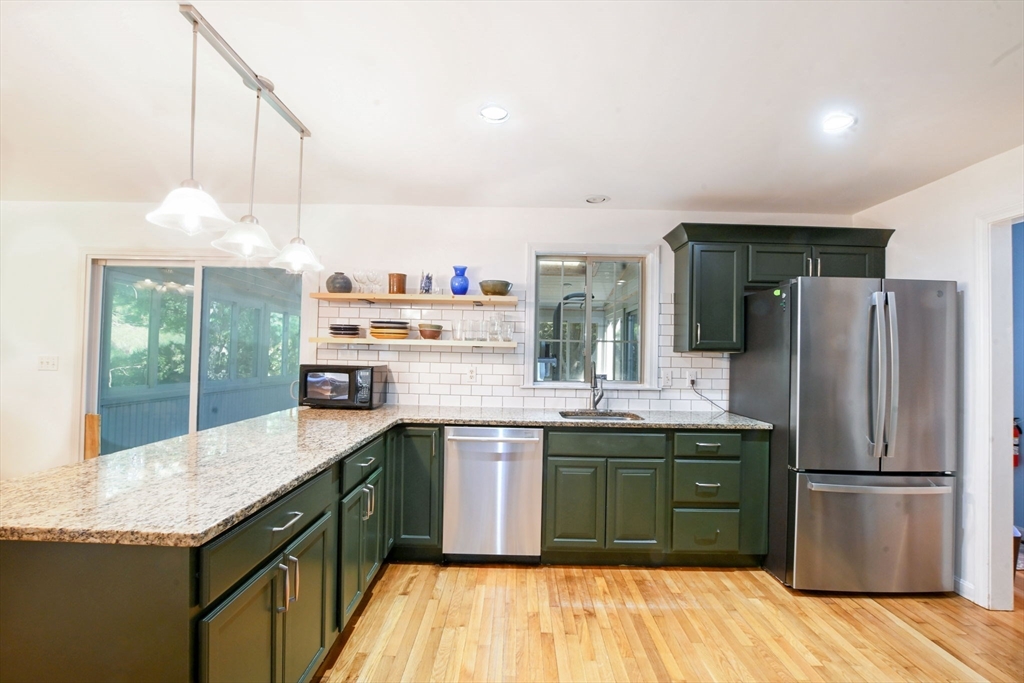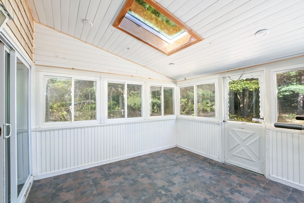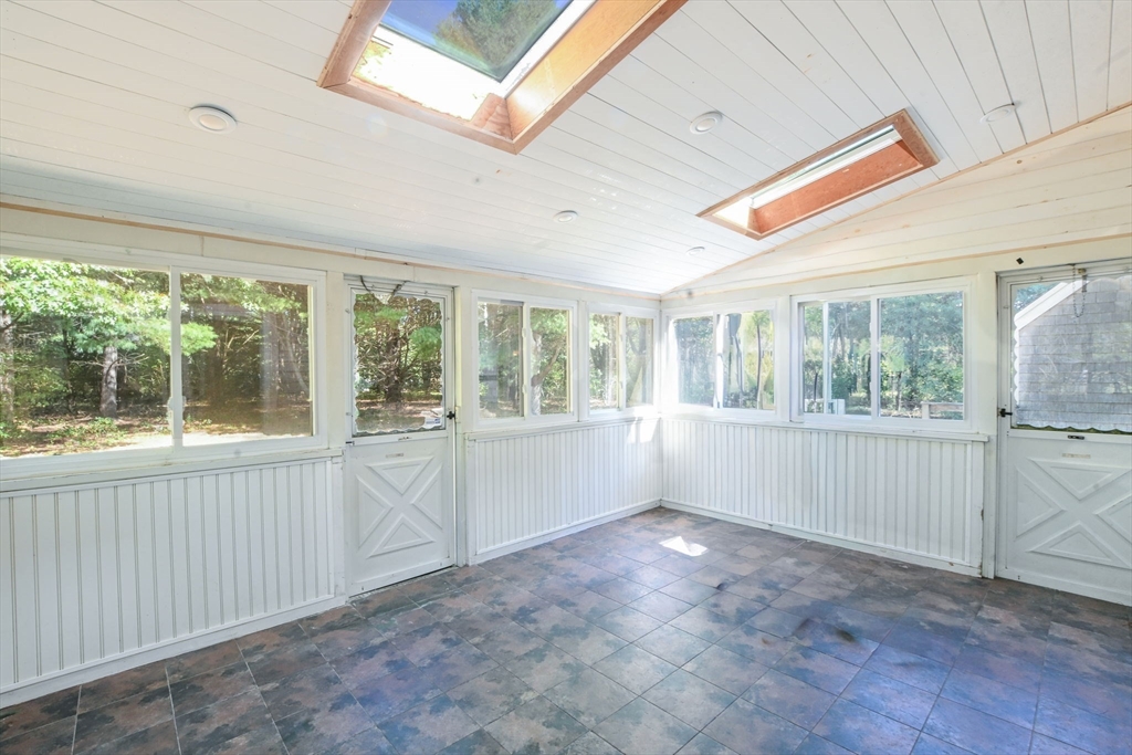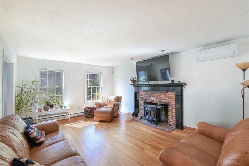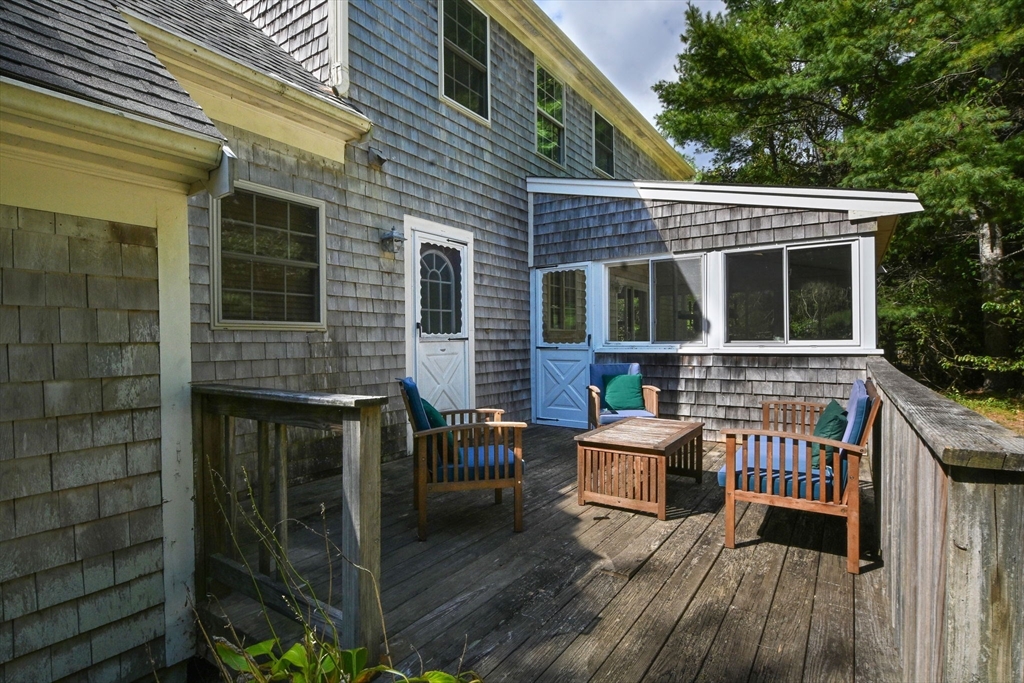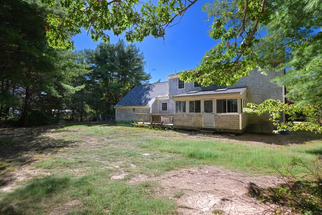 Come discover this sun-filled 4-bedroom, 2.5-bath Classic Cape nestled on a quiet cul-de-sac. This property offers privacy and easy access to everything Falmouth has to offer! As you step through the entry hall, you will see that the focal point in the Living Room is the Vermont Castings Wood Stove-perfect for the upcoming fall evenings! The updated kitchen features granite countertops, open shelving, and new appliances. The sky-lit 3 season sunroom overlooks the backyard that abuts open space. Convenient 1st floor laundry and a half bath. The 1st floor primary suite boasts a remodeled luxury ensuite bath and walk-in closet. Upstairs are 3 spacious bedrooms, 2 with skylights, and an updated bath. There are gleaming hardwood floors throughout! The lower level is framed and wired, ready to be finished for more living space. This home is thoughtfully updated for today’s lifestyle with owned solar panels, high-efficiency heat pumps for heating and AC, and an EV charging station. Go Green!