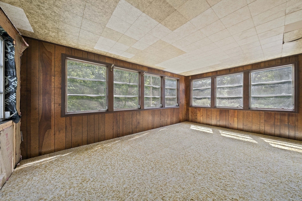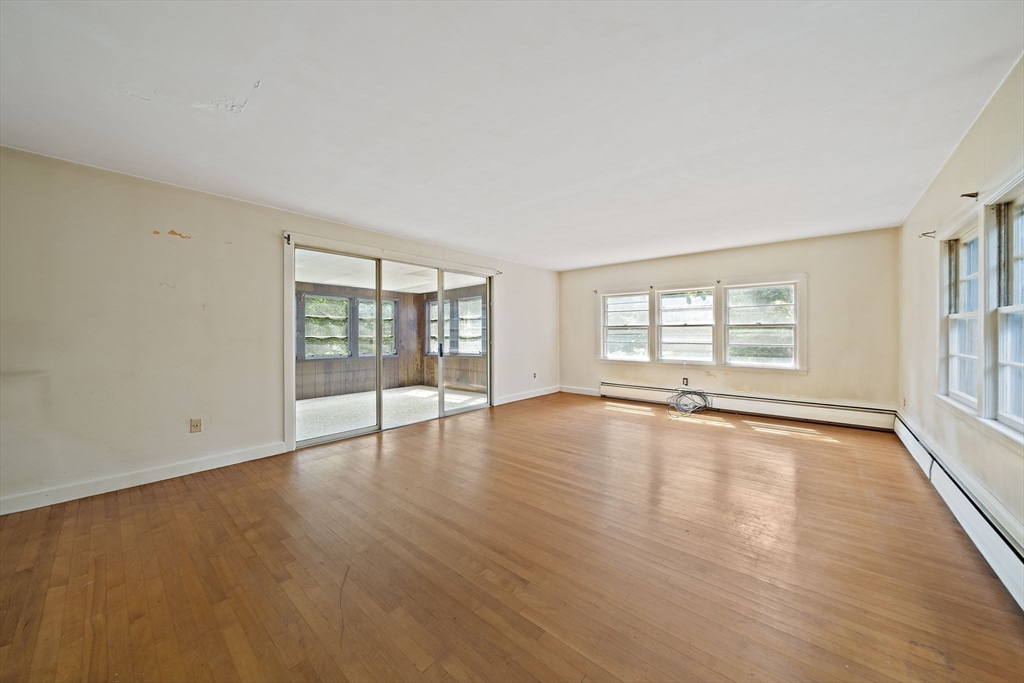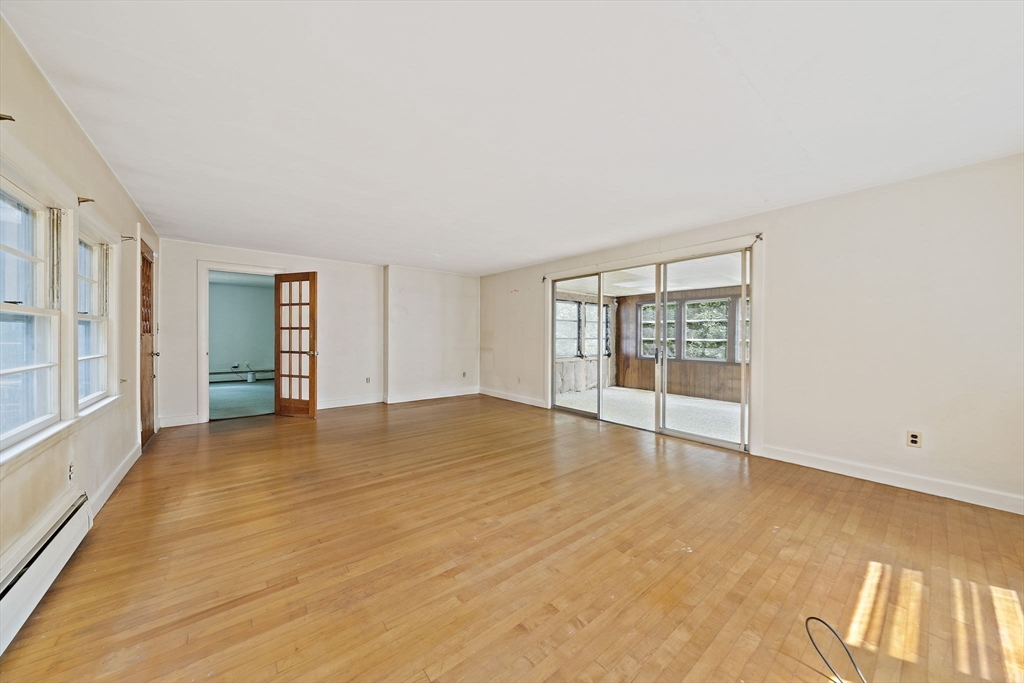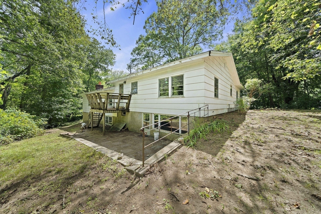 Rare opportunity to own nearly 2 acres just a 1/2 mile from town! This property offers both convenience & a peaceful, wooded retreat. Cherished by the same family for 45 years, it’s ready for its next chapter. The main level features hardwood floors throughout. An inviting eat-in kitchen with access to the back deck, flows into a spacious living room anchored by a wood-burning fireplace. A bright family room with walls of windows opens to a charming sunroom, perfect for enjoying the natural surroundings year-round. 2 generously sized bedrooms share a full bath with a double vanity. The walk-out lower level, once finished, is brimming with potential, offering a recreation area with a pool table, a 1/2 bath, & plenty of flexible space to reimagine. Additional highlights include a 1 car garage & a setting that blends privacy with accessibility. Commuters will love the location, less than a mile from the train station, shops, restaurants, & everything Hamilton has to offer. Brand new roof!