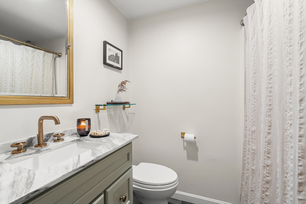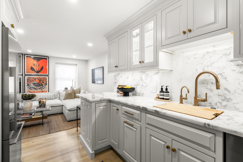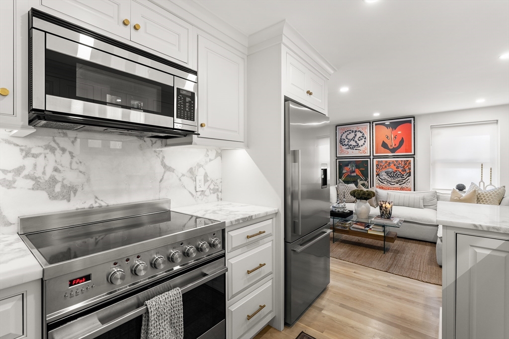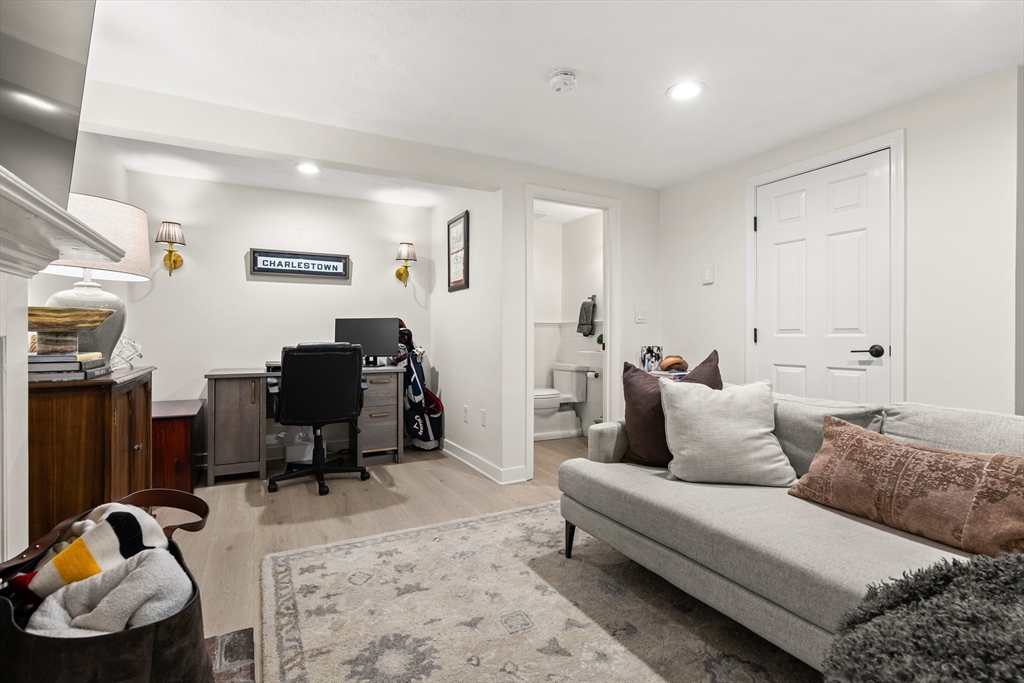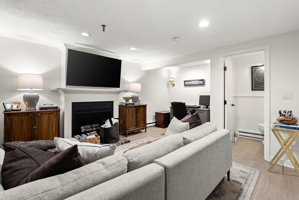 Step into this beautifully updated home through your private entrance and enjoy an open-concept floor plan flooded with natural light from multiple exposures. The show-stopping kitchen features luxurious marble countertops, high-end appliances, and elegant brass finishes. Upstairs, you'll find the 2 bedrooms, a modern full bath, and convenient in-unit laundry. The versatile lower level offers a large bonus space with a half bath, ideal for a second living room, home office, gym, or all three. Additional highlights include: hardwood floors, custom lighting and a 100% owner occupied building. Located in the heart of Charlestown, just minutes from Waverly, Whole Foods, the T and much more.