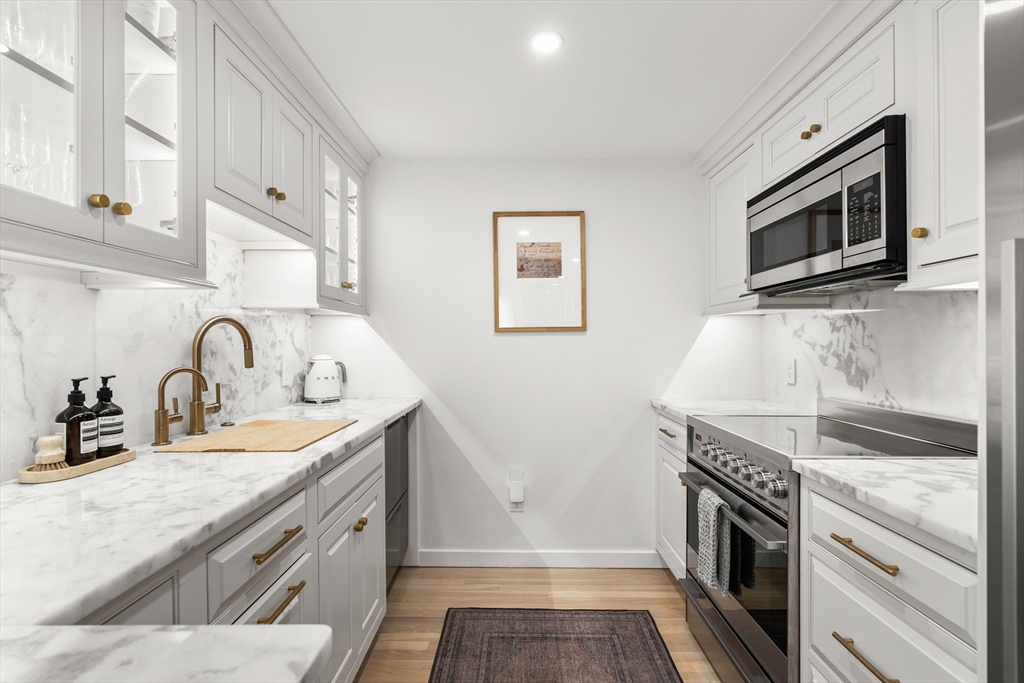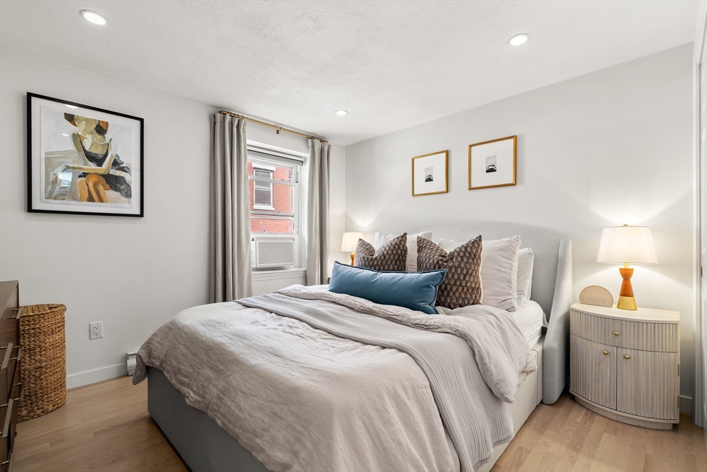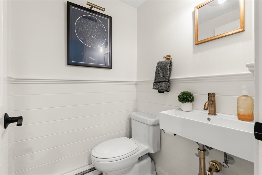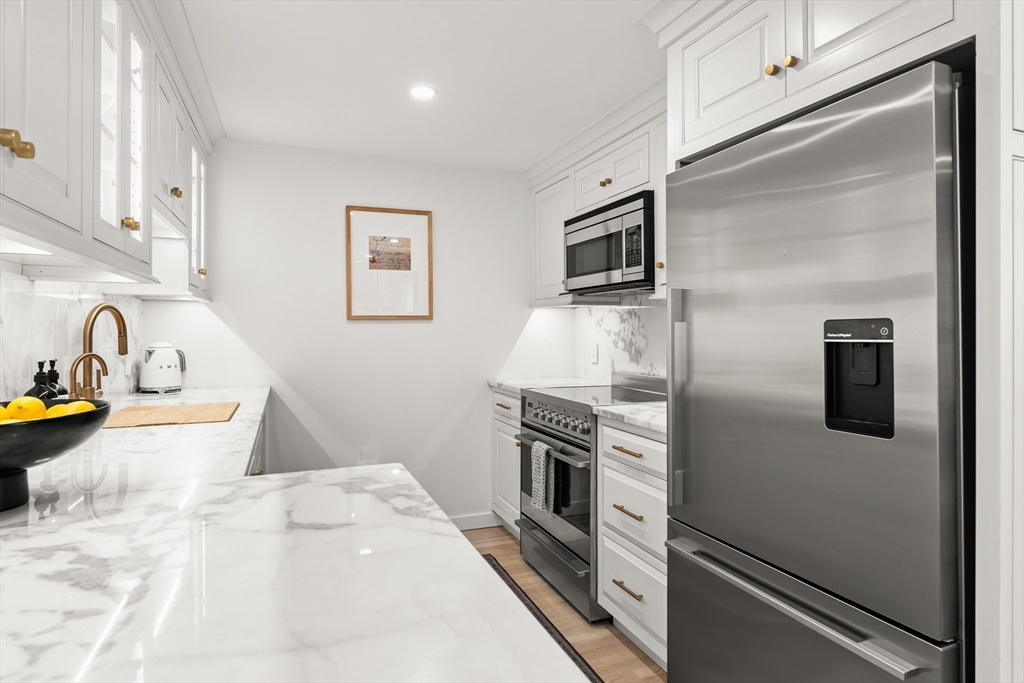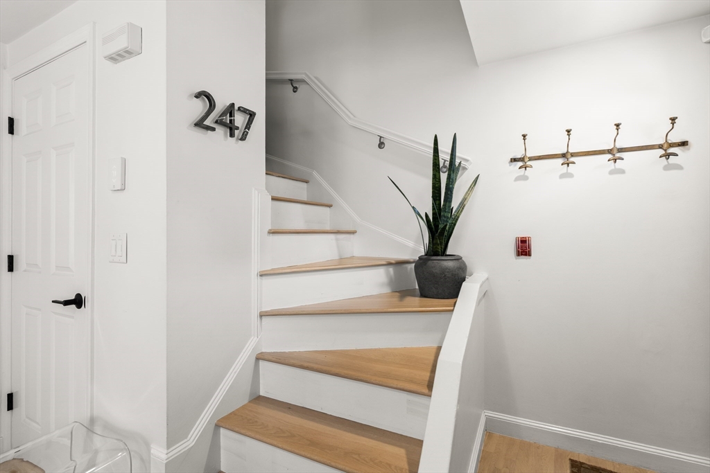 Step into this beautifully updated home through your private entrance and enjoy an open-concept floor plan flooded with natural light from multiple exposures. The show-stopping kitchen features luxurious marble countertops, high-end appliances, and elegant brass finishes. Upstairs, you'll find the 2 bedrooms, a modern full bath, and convenient in-unit laundry. The versatile lower level offers a large bonus space with a half bath, ideal for a second living room, home office, gym, or all three. Additional highlights include: hardwood floors, custom lighting and a 100% owner occupied building. Located in the heart of Charlestown, just minutes from Waverly, Whole Foods, the T and much more.