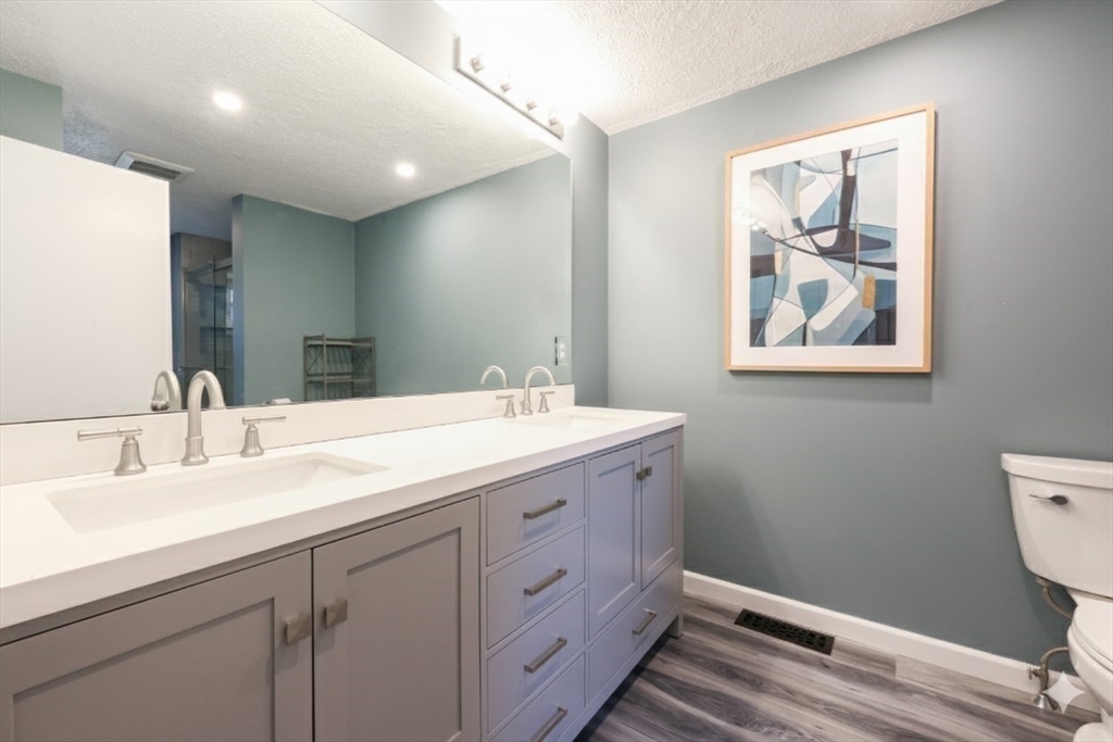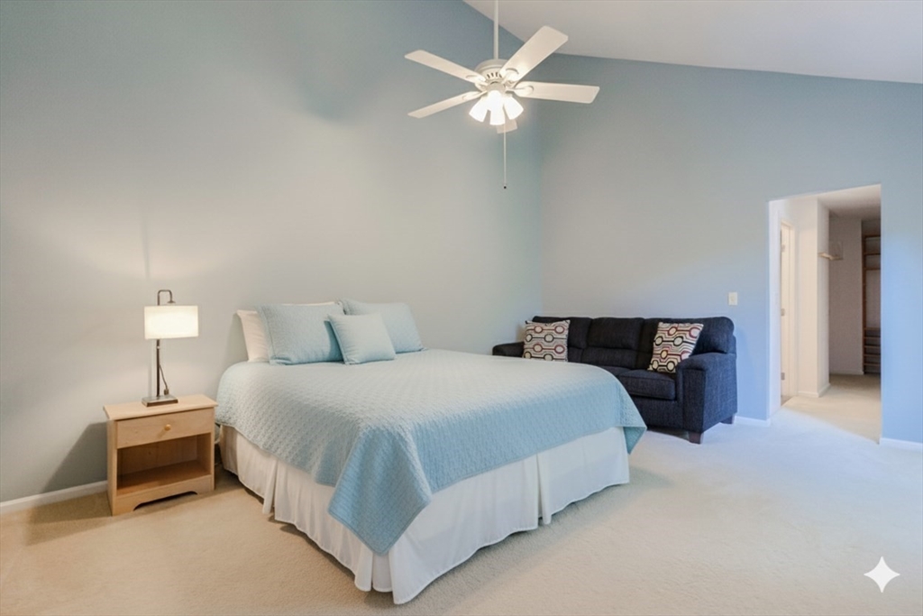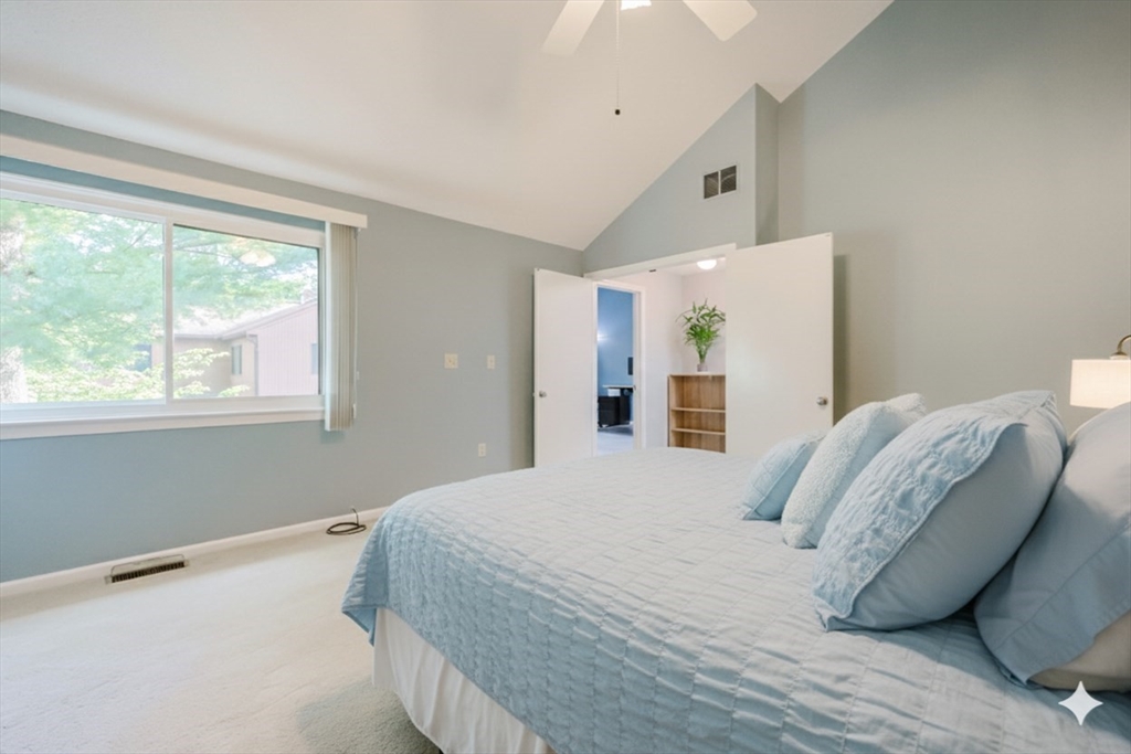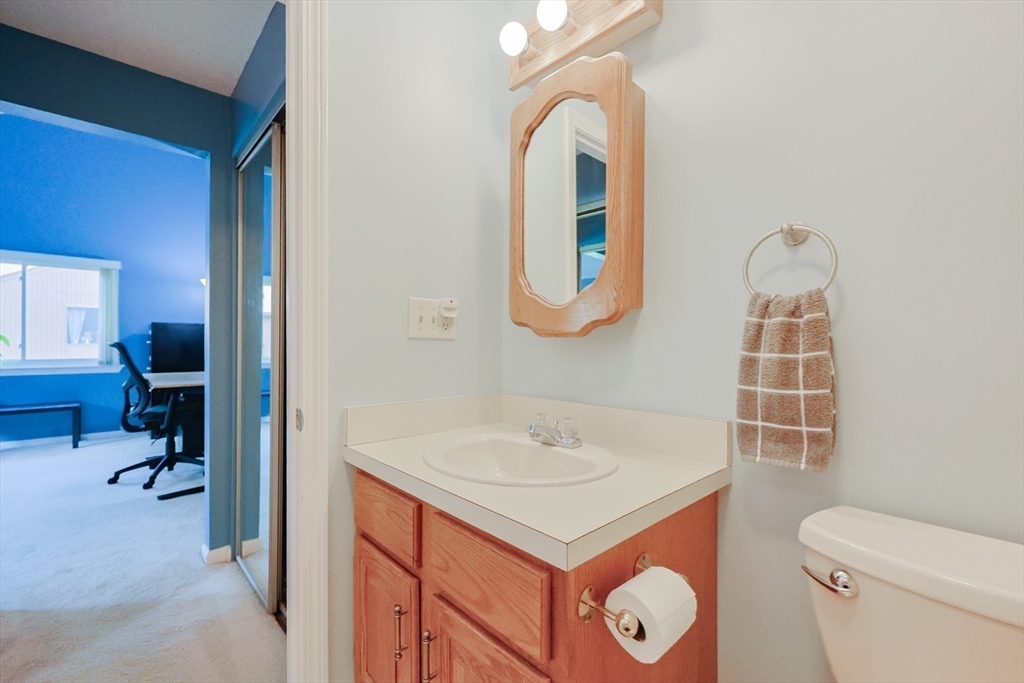 Welcome to the good life at Spyglass Hill! Enjoy the unbeatable location just a short stroll from the commuter rail, making your commute a breeze. You'll be surrounded by amenities, including shopping, beautiful parks and scenic walking trails. The main level features a family room with a cozy fireplace that flows seamlessly into the U-shaped kitchen, complete with a granite breakfast bar and a dining area. However, if you prefer to dine al fresco you have a HUGE deck as a plan B. Tucked around the corner is a powder room and bright living room, offering plenty of space for entertaining. Upstairs are two vaulted ceiling bedrooms, each with its own private bathroom including a renovated main bathroom (‘21/22). You'll love the remarkably affordable condo fee and the peace of mind that comes with a professionally managed association. All the benefits of a prime location with none of the hassle. Don't miss this one!