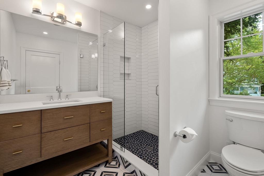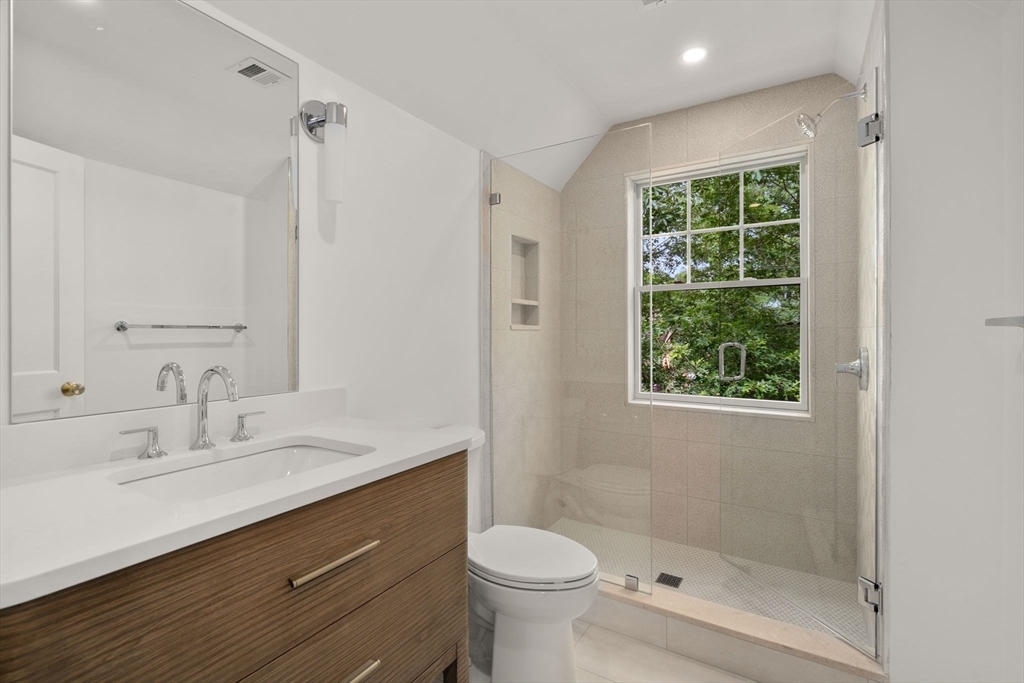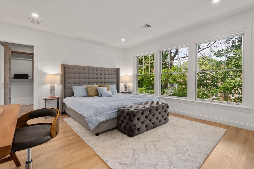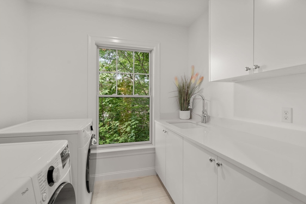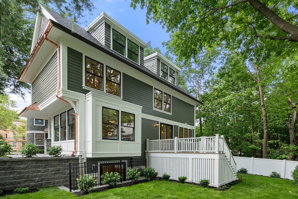 Tucked away on JFK Square’s coveted Naples Road, this new construction 4,300+ sqft Coolidge Corner attached townhome offers four levels of prime living with primary and two junior suites, office/gym spaces, attached heated garage with EV charger, walk-out finished lower level, and garden party-worthy deck and private yard. A grand dual fireplace connects the dining and living rooms, flowing into a custom kitchen with Thermador in-wall ovens and hooded cooktop, brass accents, and a 4” Neolith waterfall island with prep sink and seating. Nestled upstairs find custom tiled ensuite bathrooms and laundry accompany spacious bedrooms, while the primary suite features a walk-in closet, double vanity, heated floors, shower stall, and soaking tub. The finished lower level includes an entertainer’s bar, family room, full bath, and bedroom/office with storage. This North Brookline location offers easy access to the local village's cafes, restaurants, grocers, shops, pubs, and transit.