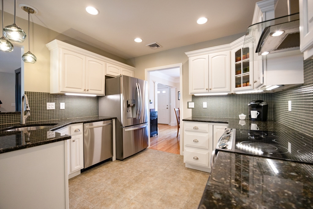 Welcome to this immaculate move-in ready 3-bedroom, 2.5-bath Colonial in highly sought-after Birchwood Estates, a quiet, tree-lined neighborhood with sidewalks & street lighting. This home offers privacy & charm with a welcoming farmers porch. Featuring hardwood floors in the family room with desired gas fireplace, dining room, office, & foyer, plus recessed lighting on the 1st floor. The stunning eat-in white kitchen boasts ceramic tile, granite countertops, newer appliances, a microwave drawer, & LED under-cabinet lighting. Upstairs, find three spacious bedrooms. Primary suite with cathedral ceilings & a spa-like bath including a walk-in shower, soaking tub & bidet. Laundry & guest bathroom on 2nd floor. Basement is ready for finishing. Enjoy outdoor living on the deck with motorized sun setter awning & patio with a pergola. Setting is perfect for relaxing or entertaining. Bonus – central A/C, 7500-watt dual fuel generator, exterior pathway lighting, irrigation & more.