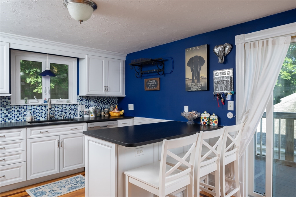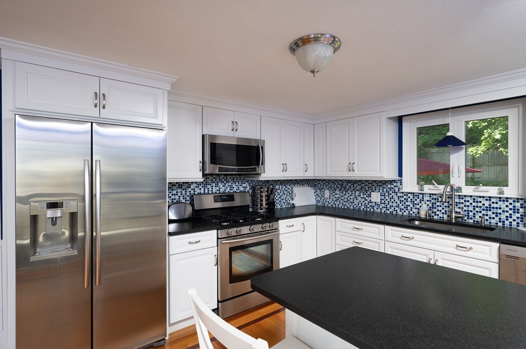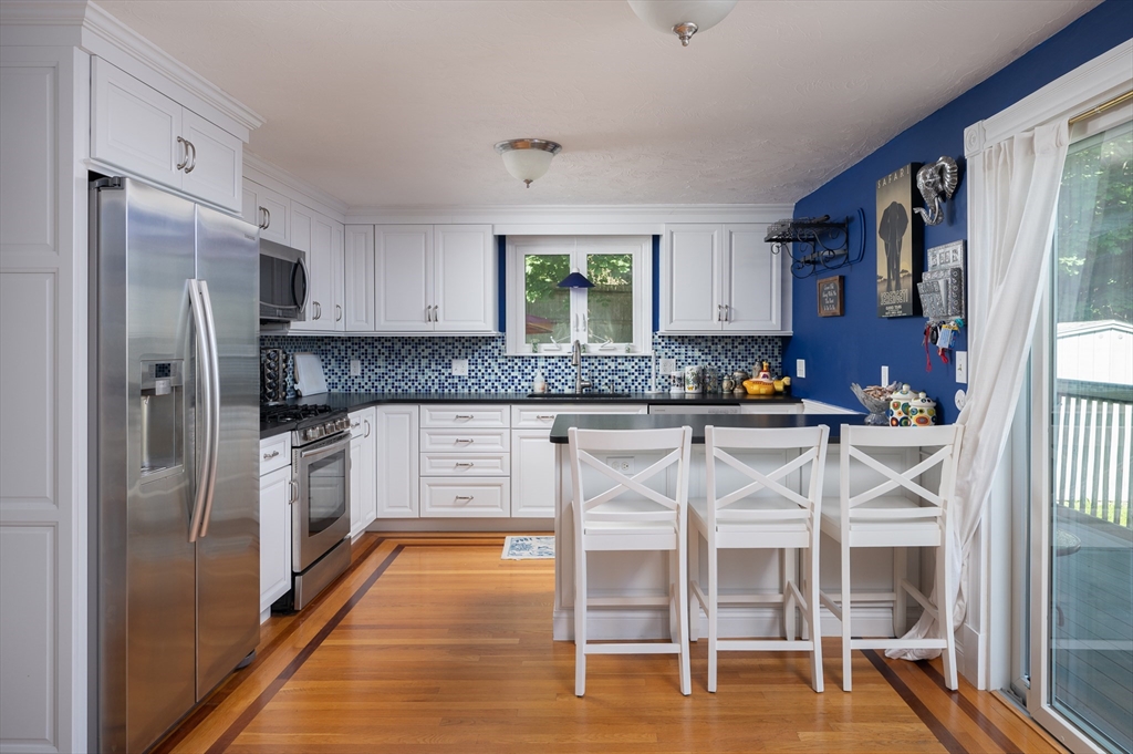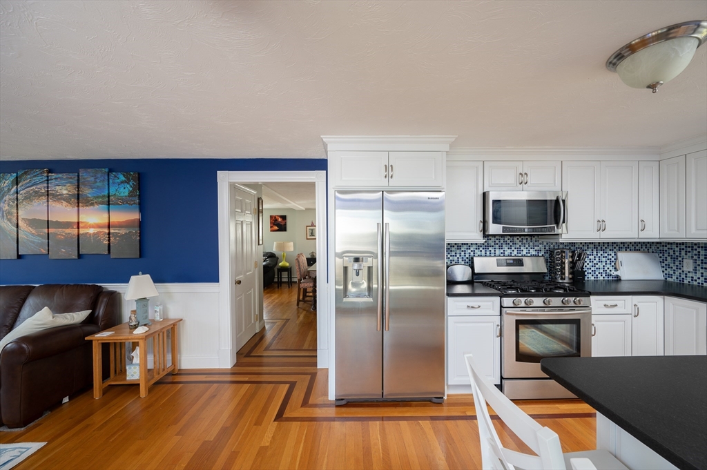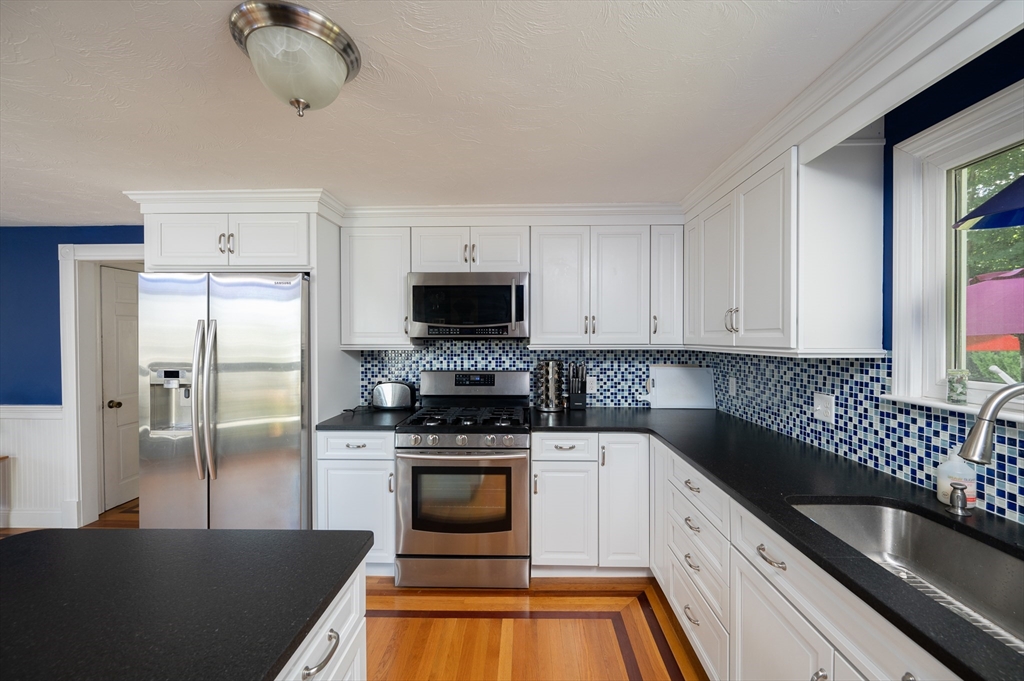 Wonderful North Weymouth 4 bedroom home, an updated Must See. Just steps to ocean/beaches and sunsets over Boston’s skyline. First floor includes: designer kitchen with granite countertops, large island and stainless steel appliances, dining room, living room with fireplace, laundry room, full bathroom. French door leads to side deck and fully fenced private yard with irrigation system and outdoor shower. Second floor boasts 4 spacious bedrooms and 2nd full bath. Fully finished heated basement for recreation or guest room, 3rd full bathroom and access to garage. Close to lovely parks and recreation areas, great restaurants/ shops and yacht clubs. Conveniently located near major highways and transportation options to Boston or Cape Cod via commuter boat, MBTA or bus. Off street parking for 4 cars in driveway leading to a 1 car garage. You will truly feel that you are home when you step in off the front porch.