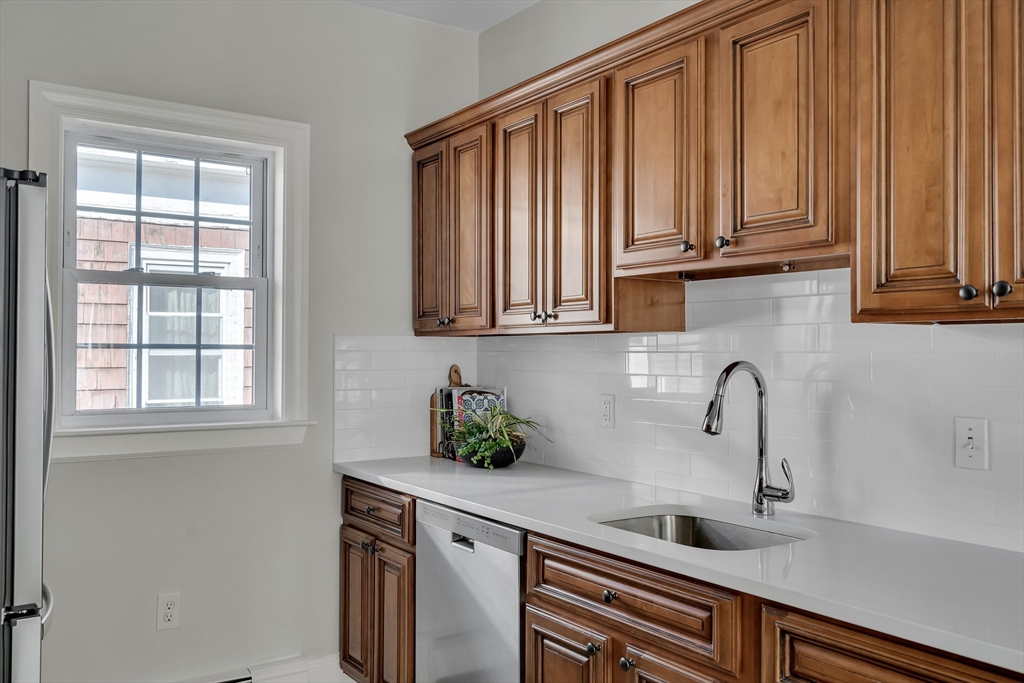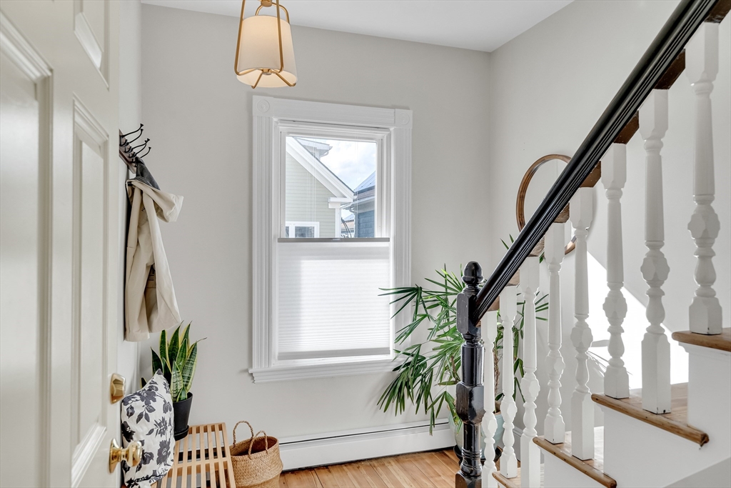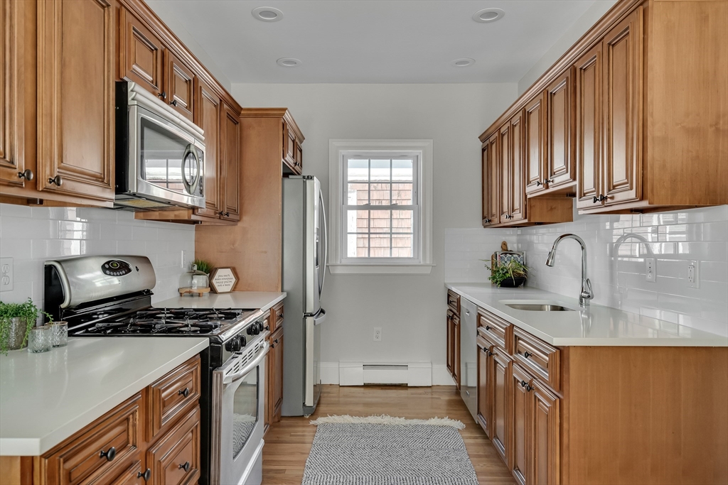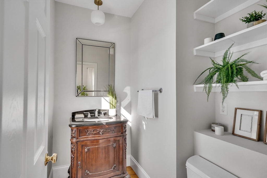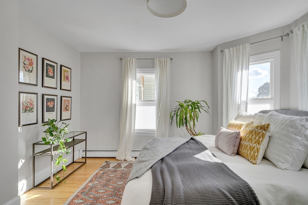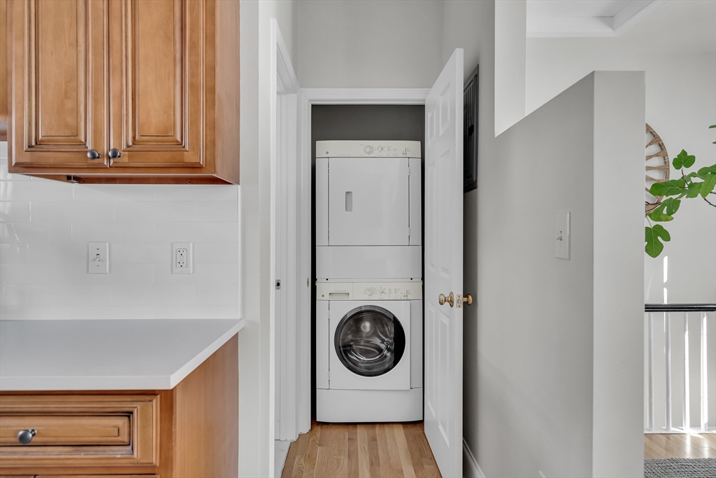 Top-floor unit with off-street parking in the heart of Inman Square. Elegantly and tastefully updated, this well-laid out home offers a true urban oasis. Sunlight via south-facing windows fills the large, open-concept living/dining area. Quartz/stainless kitchen with plentiful storage; renovated full bathroom with tiling. Two bedrooms, including a large bay-windowed suite with a deep closet and half-bathroom. Hardwood floors throughout, including original wide-plank floors in the bedrooms. In-unit laundry. Additional basement storage. Large, shared back patio. Off-street parking. Steps to the heart of Inman Square, with many of Greater Boston's most celebrated eateries. Easy commute via the Green Line at Union Square or Red Line at Central Square.