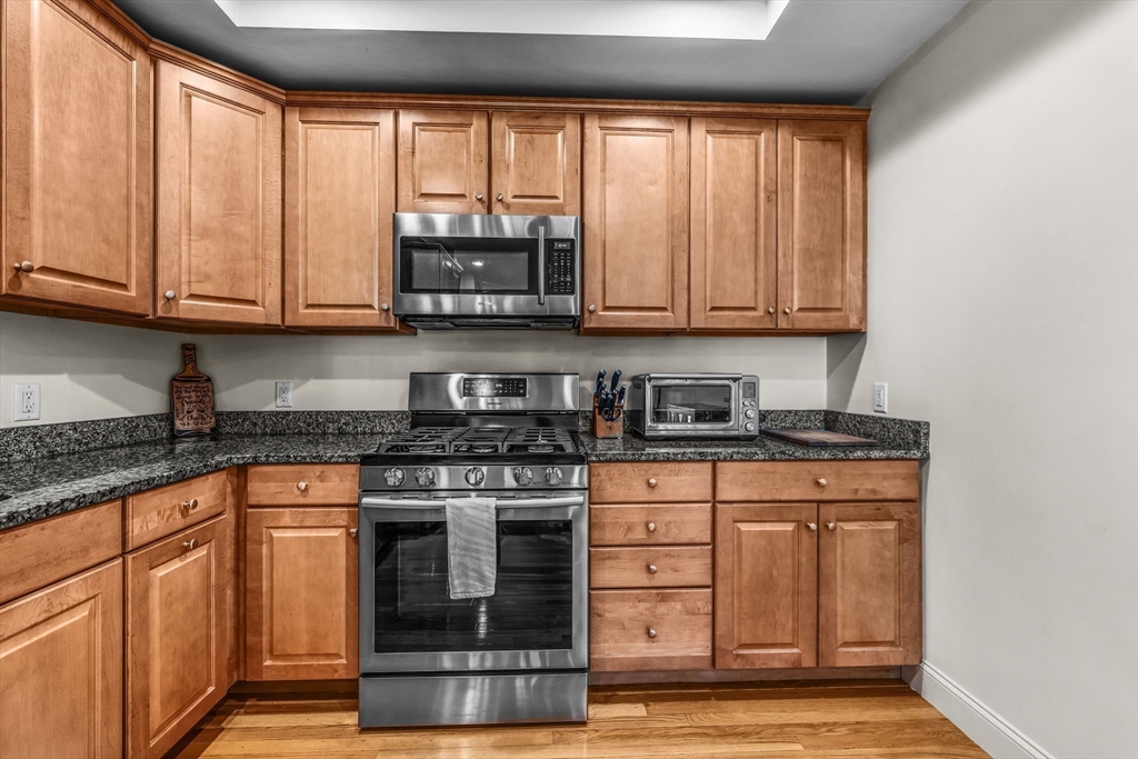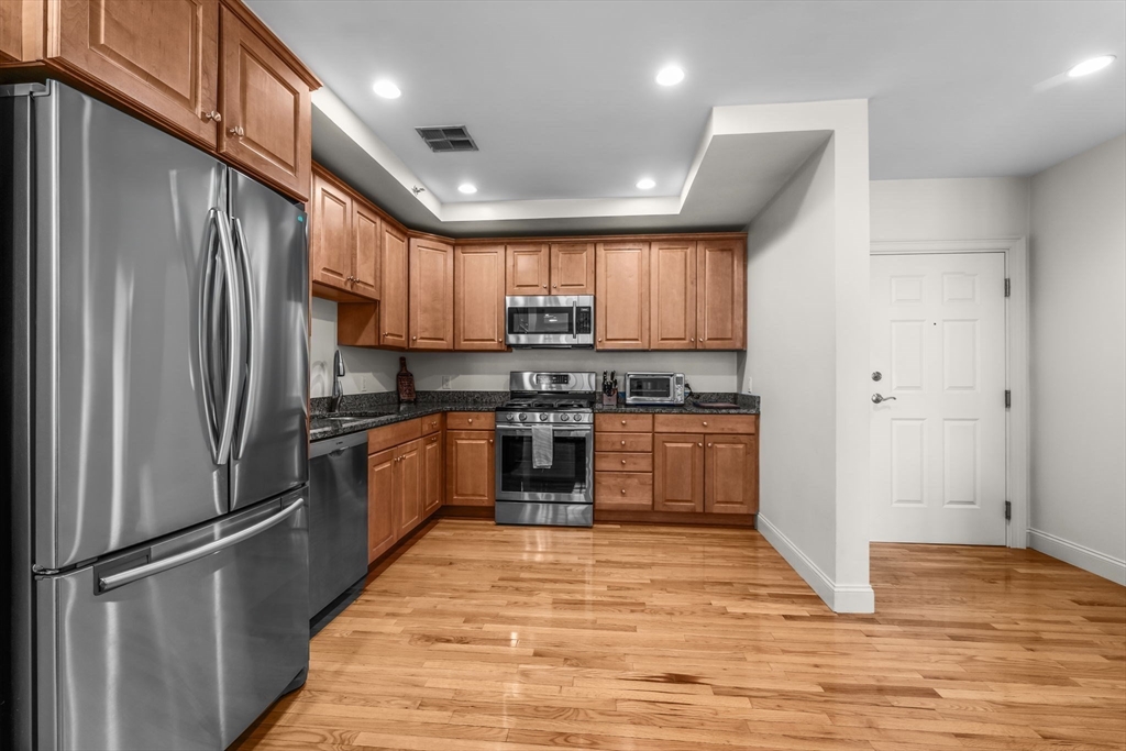 Are you looking for the best value near Boston? If so, look no further than this modern 2 bed, 2 bath condo built in 2006. Located on the Quincy/Milton line, this property is a commuter's dream only minutes from the highway. Located on the top floor, this property checks all the boxes: two parking spaces (1 garage, 1 exterior), private outdoor space, large kitchen with granite counters and newer stainless appliances, gas cooking, and a large primary bedroom with ensuite bathroom. The living room and kitchen feature recessed lights and hardwood floors. The unit also offers central air conditioning, in-unit laundry hookups, an elevator building, and ample storage space. Thoughtful upgrades such as custom glass shower and tub enclosures in both bathrooms set this unit apart from the rest! Reach out today to schedule your showing!