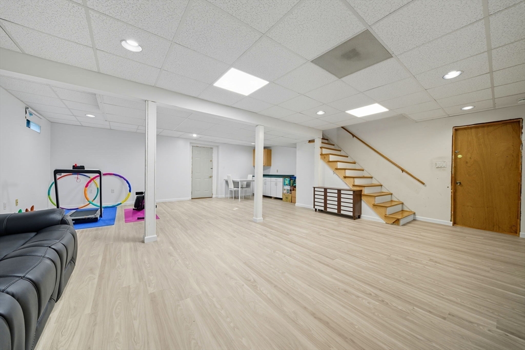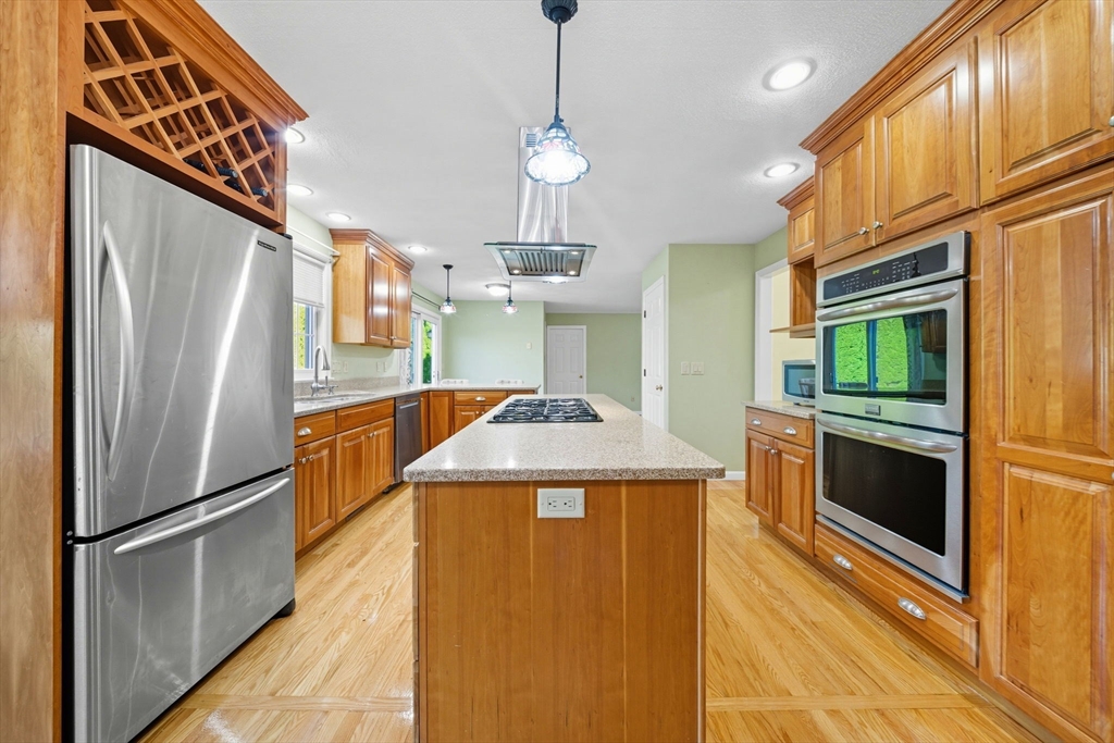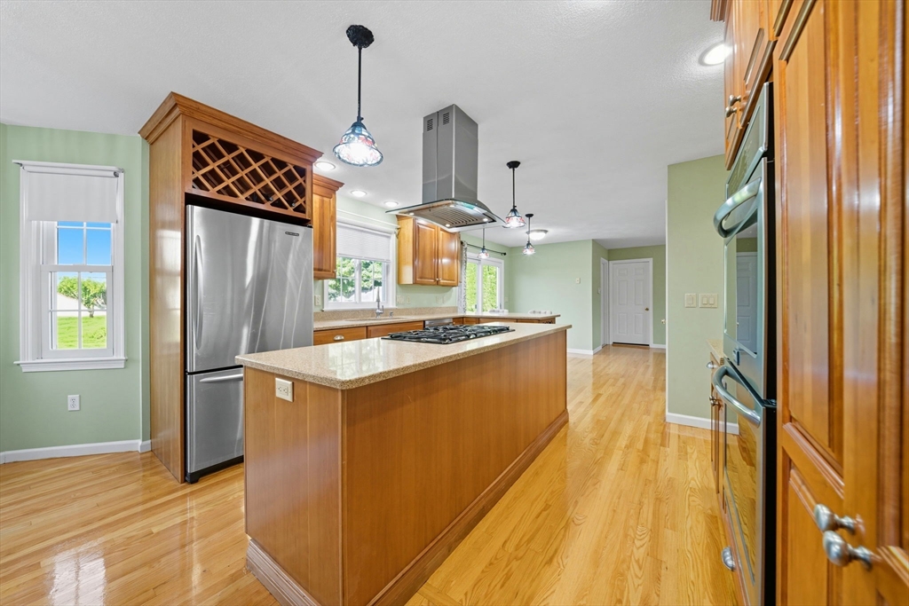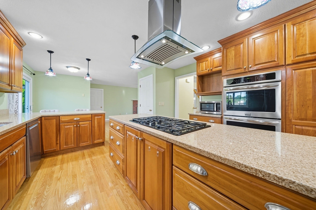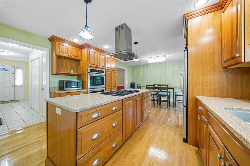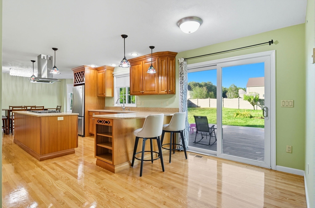 Welcome to one of Stoughton’s most loved neighborhoods! This spacious Colonial offers 3 levels of living space. The updated kitchen includes an oversized island, granite countertops, stainless steel appliances, wall oven, & a sunny breakfast nook—perfect for gatherings. The inviting foyer, dining area, oversized living room along with the family room complete the main level. Hardwood floors add warmth throughout, while the finished basement with luxury vinyl flooring provides flexible space for work, play, or relaxation. Featuring four generously sized bedrooms, including a primary suite with a large walk-in closet & full bath. Enjoy coffee on the porch, cozy evenings by the fireplace, and summer fun in the fenced backyard. An oversized two-car garage adds storage and ease, with recent updates—roof, siding, windows, and utilities—providing peace of mind. With schools, dining, shopping, and commuter routes close by, this move-in ready home is where your next chapter begins.