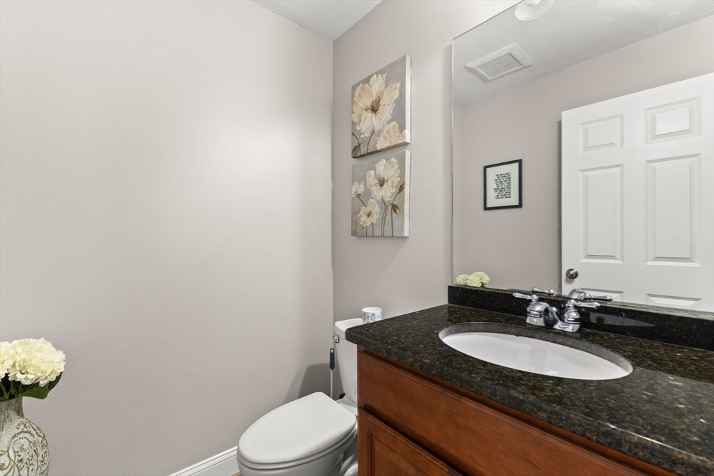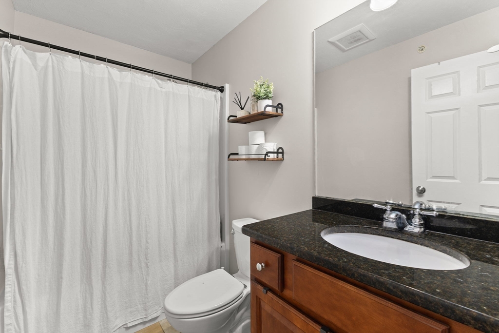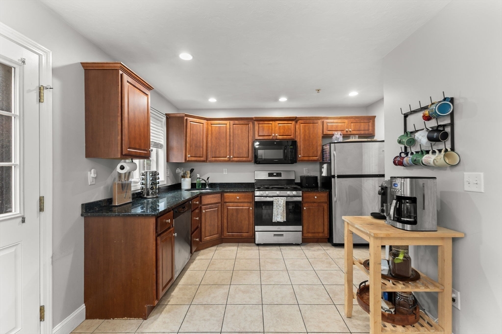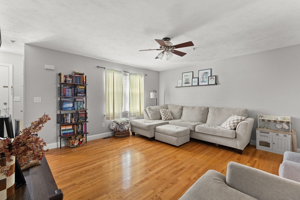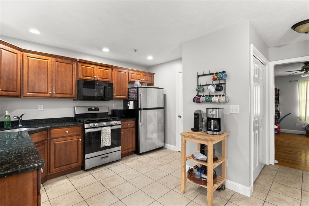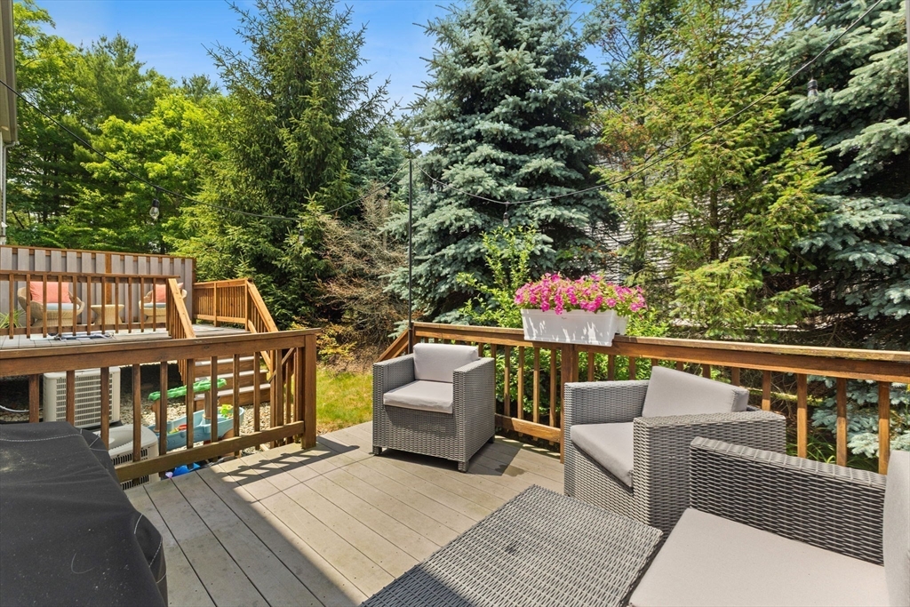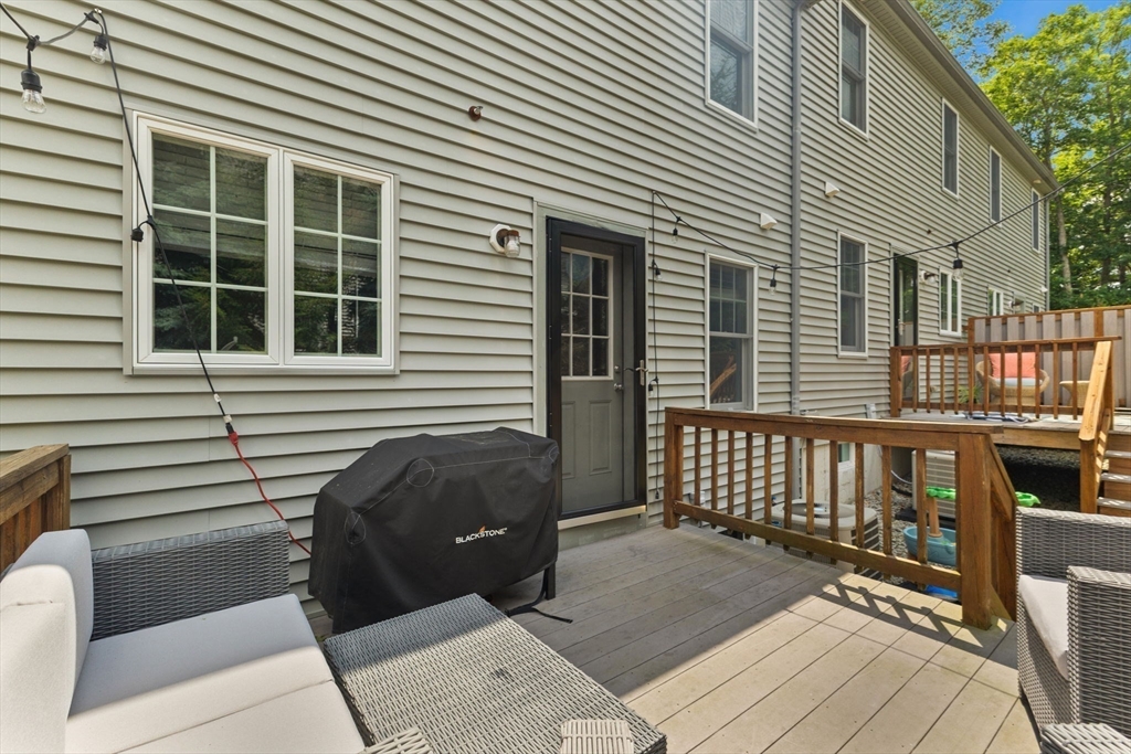 Welcome to the highly desirable Tirrell Woods Condominiums... a beautiful small community close to all the shops and close to Boston! This well-maintained townhouse offers 2 spacious bedrooms, 1.5 baths and Central AC. Enjoy the three three levels of wonderful living in this beautifully maintained home updated eat-in kitchen featuring cherry wood cabinets, granite countertops, stainless steel appliances and a walk-in pantry. The private composite deck provides a quiet space for outdoor relaxation. Gleaming hardwood floors run throughout the main level, and there's an abundant of closet and storage space throughout the home. The full basement offers high ceilings, laundry, finished space and additional storage. Low condo fees add to the appeal. A wonderful opportunity to own in this very desirable community with convenience and comfort at your doorstep.